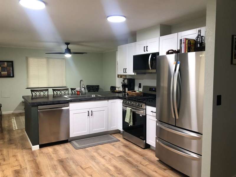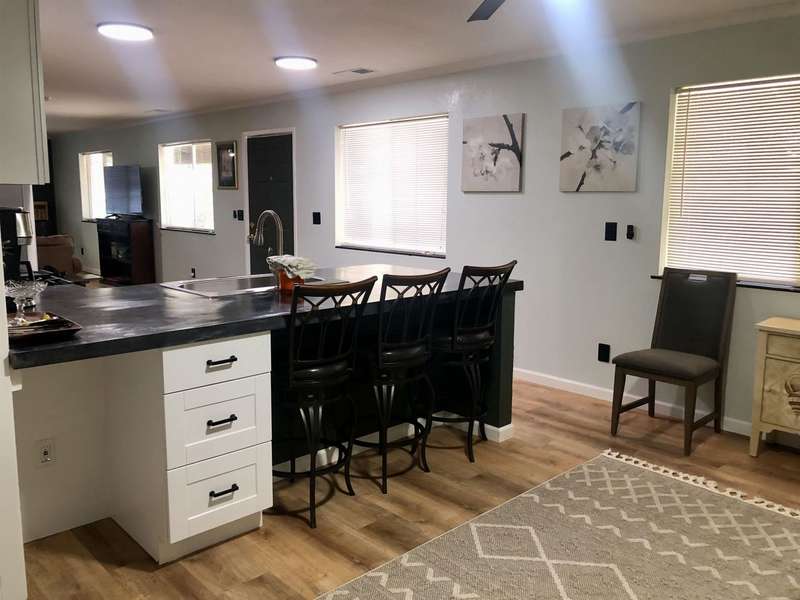 This bright and airy home has been completely refurbished stem to stern. Kitchen sports all new cabinetry, concrete counter tops, and brand new appliances. All three bathrooms with cabinetry and matching concrete counters and even a new tile shower in master. Laminate flooring throughout. Fresh paint inside and out. Large oversized two car attached garage with breezeway between the house for extra storage. New leach field installed 2022. Oversized corner lot allows for plenty of privacy and elbow room. Plenty of off street parking and concrete driveway. Quiet street, yet just a short drive to lake access and all the amenities the Lake almanor Country Club has to offer. Home comes completely furnished and even includes the snow blower and the lawn mower. Just bring the kids and the groceries, this one is ready to go.