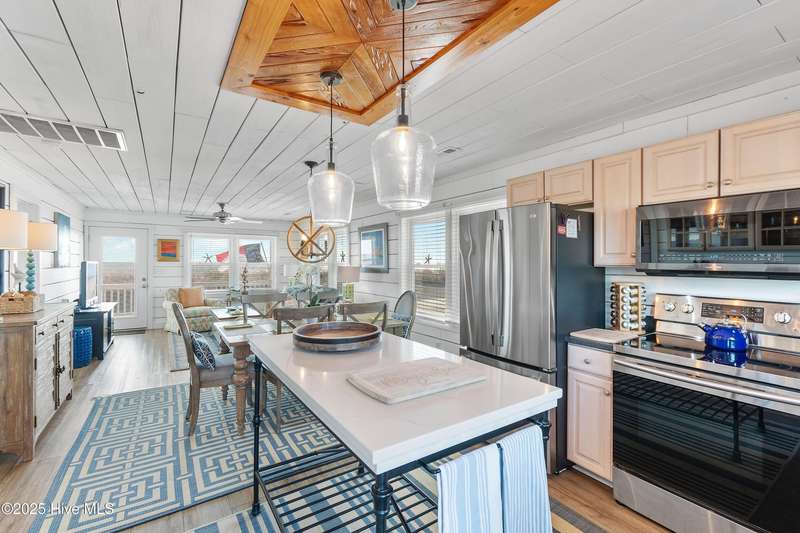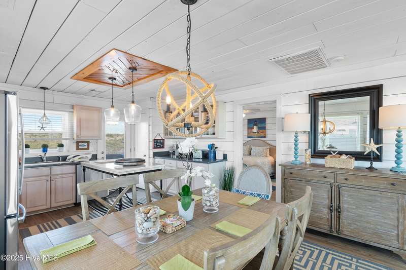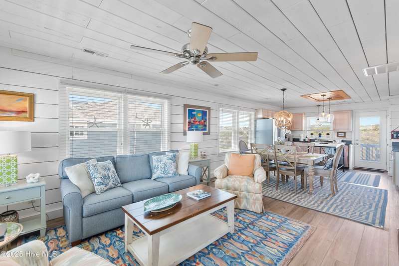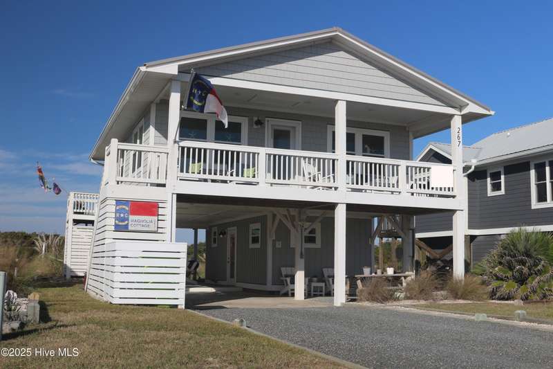 Magnolia Cottage - Holden Beach, NC Experience Magnolia Cottage-a thoughtfully designed coastal home offering stunning ocean views, flexible guest space, and timeless cottage style. Whether as a personal retreat or investment property, this Holden Beach gem captures the essence of seaside living. A beautifully decorated coastal retreat offering unobstructed views of the Atlantic Ocean. Perfectly situated on the east end of Holden Beach, this charming home is just minutes from the bridge, local restaurants, and the island's favorite ice cream shop. Inside, the cottage is filled with coastal flair and inviting details with its custom shiplap interior walls and accents. The upper-level features two bedrooms connected by a Jack-and-Jill bath with a walk-in shower. The open kitchen and dining area provide plenty of space for meals and entertainment around the center island, while the living room-styled in soothing marine tones-offers a comfortable spot for conversation, TV time, or simply gazing out at the ocean. Downstairs, bonus quarters with a private entrance and full bath provide additional space for guests or family. Enjoy ocean breezes from the covered front porch-perfect for your morning coffee or sunset watching-or dine al fresco on the back deck just off the kitchen. In 2020 installed the interior shiplap and enlarged front porch. In 2022: installed LVP flooring, metal roof, and Fiber Board siding with a 25 YR warranty. In 2023 installed hurricane grade windows. In 2024/2025: HVAC replaced, installed a Mini-Split System (downstairs) in 2025 (Not included in heated square footage), all appliances replaced, indoor furniture replaced, new mattresses, and new Outdoor Pollywood Furniture. Furnished with minor exceptions. Magnolia Cottage combines coastal style, comfort, and a prime location-your ideal island getaway awaits!