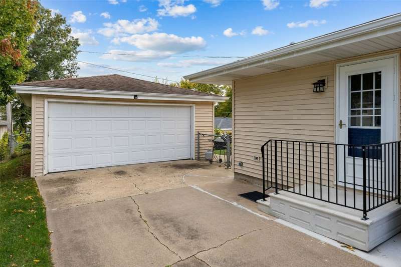 Welcome to this beautifully maintained ranch home located next to Hanna Park in Marion. The main level offers three bedrooms with beautiful wood floors, an updated full bathroom, and a bright eat-in kitchen with sliding doors that open to a brick-paved patio and a fenced backyard—perfect for relaxing or entertaining. The finished lower level expands your living space with a comfortable family room, a non-conforming bedroom featuring natural light from two windows, a bathroom, and a dedicated laundry area. A detached two-car garage, front yard concrete patio addition, and recent updates make this home move-in ready. Notable improvements include roof (2020), siding (2020), gas fireplace (2020), water heater (2021), and newer lower-level windows. Enjoy a convenient location near parks, trails, schools, and Uptown Marion’s shops and restaurants.
