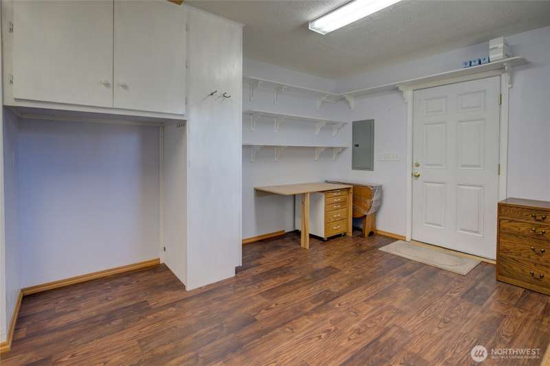 Cozy, cute and functional! Whether you want a full-time residence or a place to escape to, this little beach cottage will meet your needs! Home features open concept living and kitchen area. Slab foundation with level, accessible entry and wide doorways. Primary suite has an en-suite bath, which then continues on into the laundry room located behind the bathroom. The second room is fantastic flex space. With built in cabinets/closet area, it can be used as a second bedroom, craft room, office, or whatever your creative side envisions. An additional half bath finishes out the home. Detached garage also has a workshop area in the rear. Designed for the simple life and artistic soul! Storage shed, lovely yard, and quiet neighborhood.