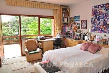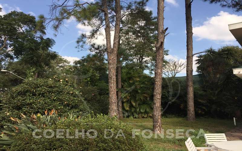 Tranquilidade de condomínio ou de casa no interior, com ampla vista para o verde, testada de 35,16 metros, rua calma e arborizada, segurança 24 horas, sol todo o dia, varanda que parece casarão de fazenda, residência familiar em localização privilegiadíssima. Dormitórios avarandados, living para vários ambientes, área externa com lindo jardim e piscina. Garagem coberta para sete carros e vagas descobertas. Excelente custo benefício. Modernize do teu jeito e aproveite a solidez da construção.