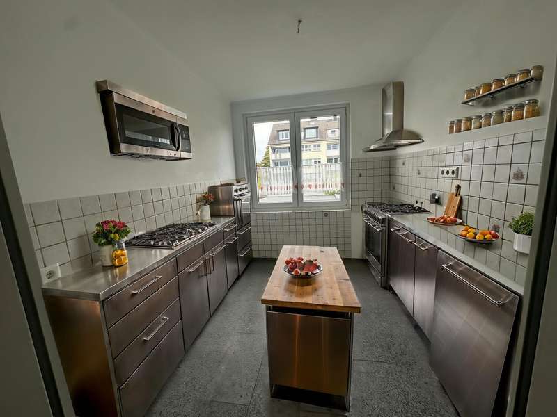 This attractive 3.5 room apartment is located on the 1st floor in a quiet 7-family house. In addition to the living room with balcony access, kitchen, hallway and storage room, the apartment has 2 bedrooms, one also with balcony access and a timeless bathroom with shower and bathtub. The furnishings are of high quality: floors: granite, parquet and wood-look vinyl, white tiles in the bathroom. A cellar room and a washing machine parking space in the communal laundry room belong to the rental property. A garage can also be rented. Pets are not allowed!