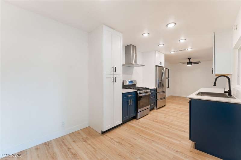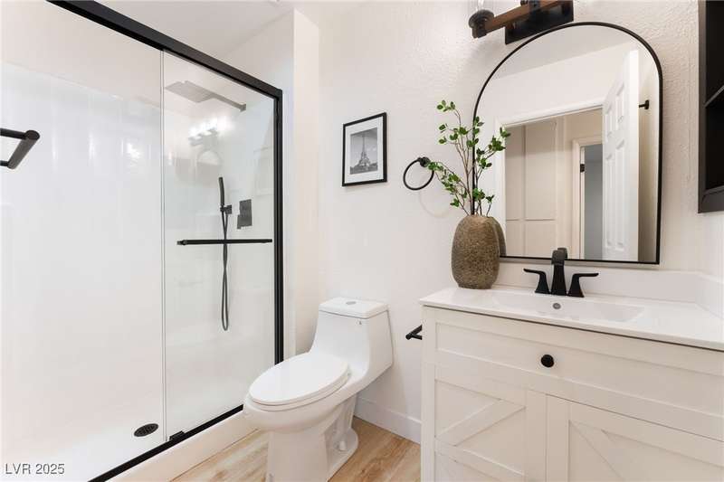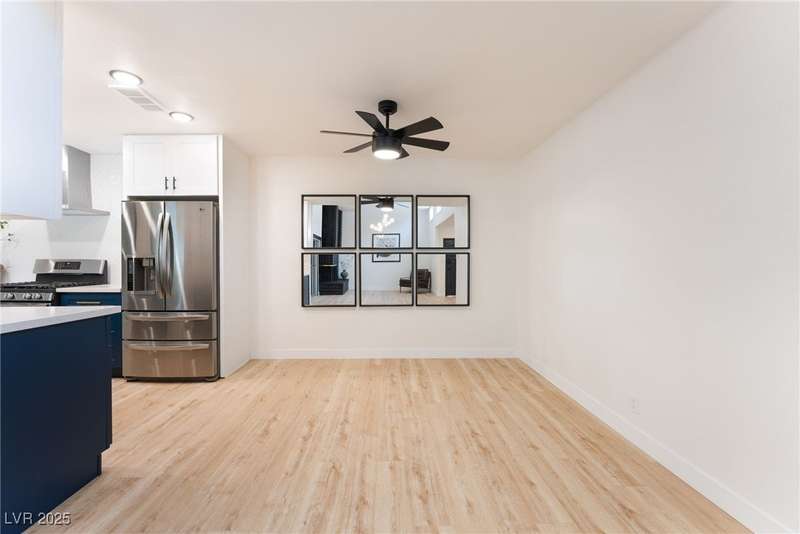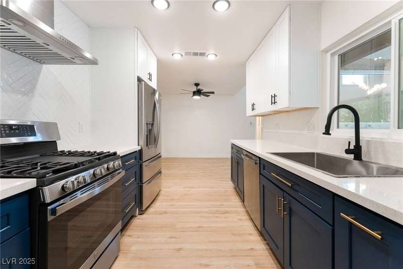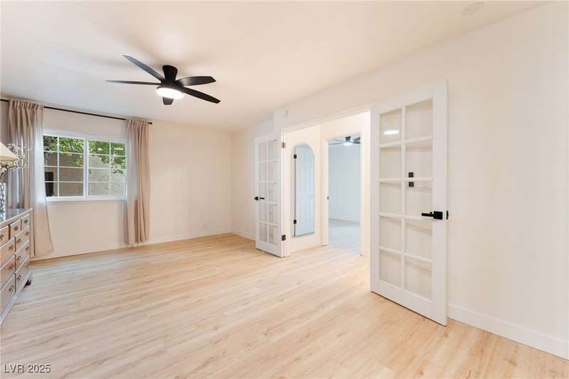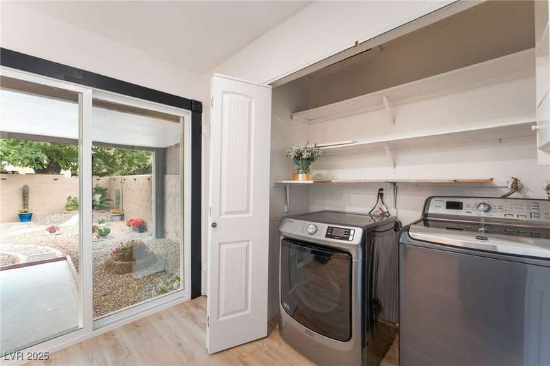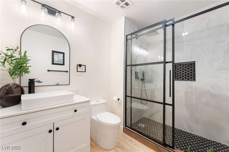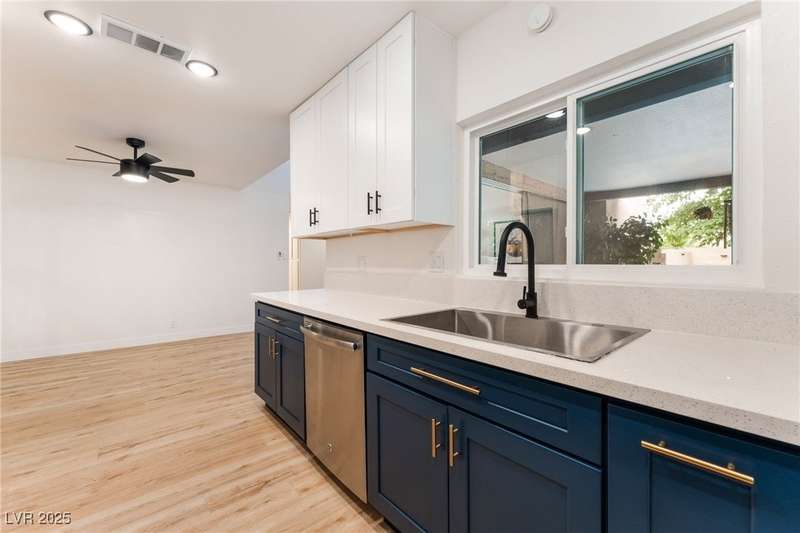 Welcome to your dream oasis in the heart of Las Vegas! This fully renovated, single-story Santa Fe style townhome boasts 3 bedrooms and 2 bathrooms, offering a perfect blend of modern luxury and timeless charm. Step inside to discover an open and airy living room with soaring high ceilings and large sliding doors that seamlessly extend your living space to a beautiful patio. The heart of the home, the kitchen, is a chef's delight with its sleek quartz countertops, state-of-the-art stainless steel appliances, and striking dual color custom shaker cabinets. Retreat to the spacious primary bedroom, featuring dual closets for ample storage. The en-suite bathroom is a sanctuary of style and comfort, with floor-to-ceiling tiles in the shower, a custom vanity, and elegant luxury vinyl flooring. Outside, the covered and fully landscaped patio provides an unmatched place to relax and unwind. Don't miss the opportunity to own this exquisite townhome and schedule your private tour today!