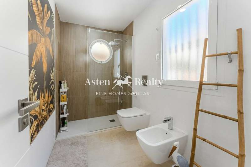 - Upper floor (58 m2): three bedrooms, two full bathrooms (one en suite), hallway and private 11 m2 terrace with sea views from the master bedroom.