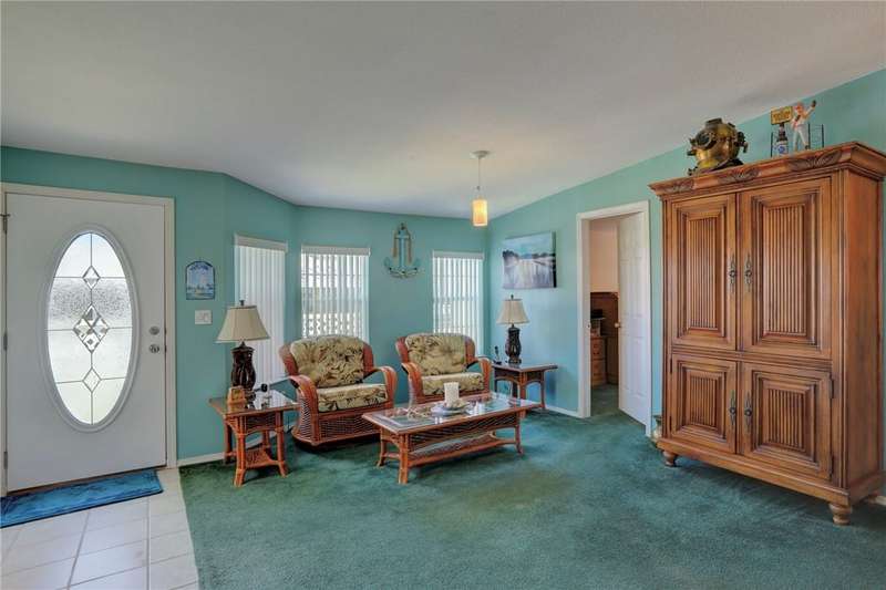 Live the Barefoot Bay lifestyle in this beautifully landscaped 3BR/2BA, 1687 sqft home! Built in 2003, this home offers split bedrooms, an in-unit laundry with cabinets for extra storage, a sunny Florida room, a large eat-in kitchen, outdoor patio, and a 2 car garage. Updates include a 2021 roof, 2023 A/C, 2015 HW heater, and 2014 tie downs & vapor barrier. Enjoy endless fun w/ 3 pools, golf, tennis, pickleball, basketball, clubhouse, beach access, and community dock-perfect for entertaining, staying active, and soaking up Florida's relaxed, resort-style living! Rmsize approx & subj to err.