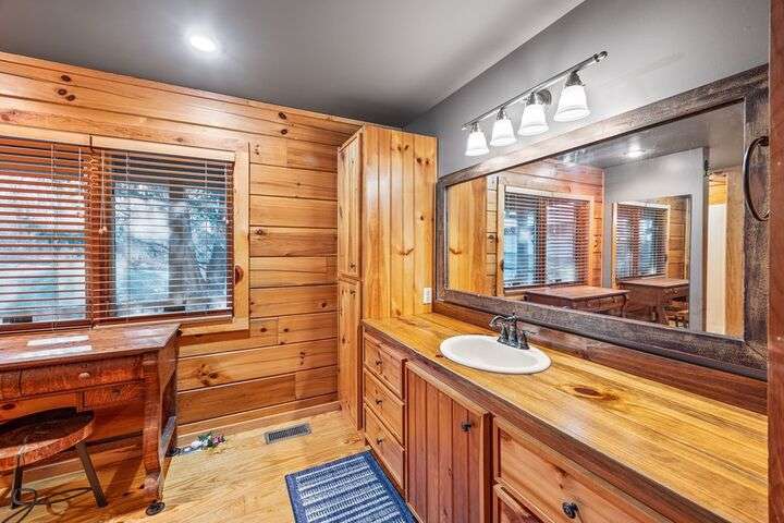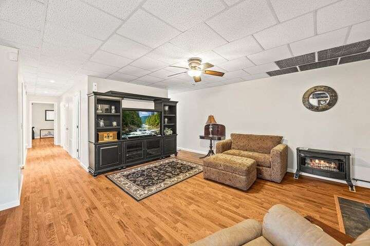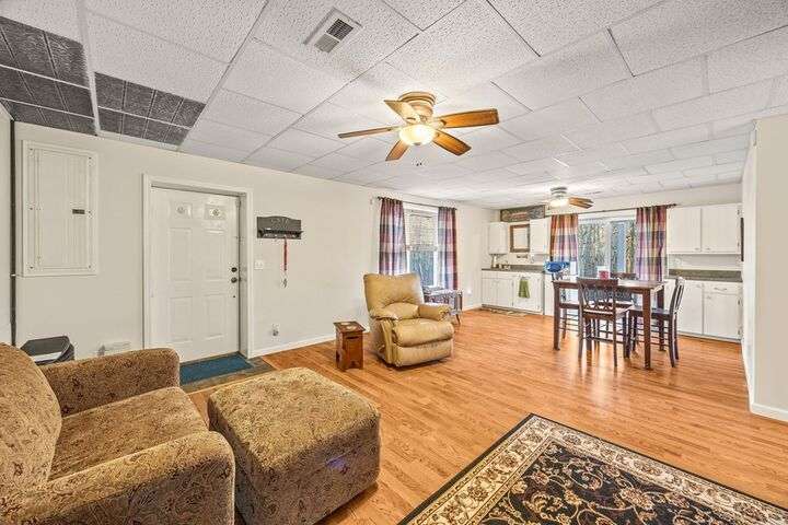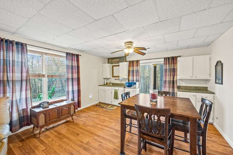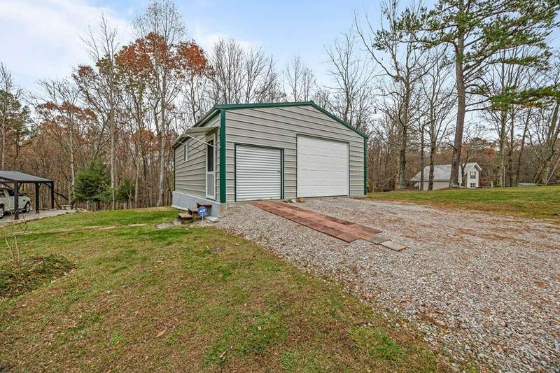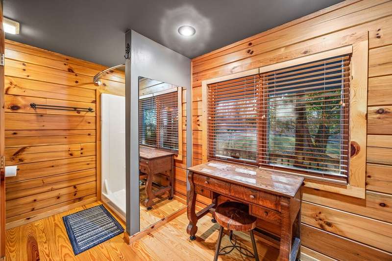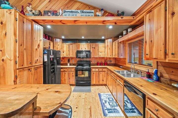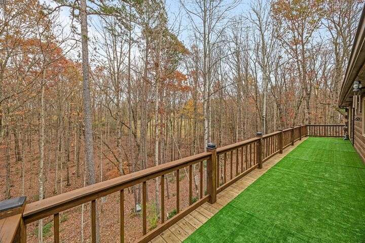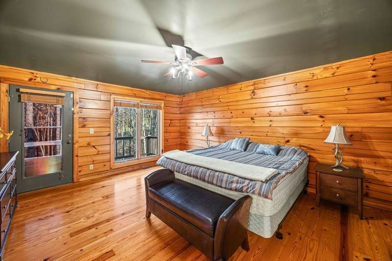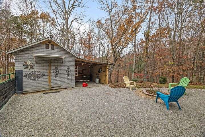 Escape to the tranquility of this beautifully maintained log cabin with a walk-out basement, nestled at the end of a quiet dead-end road. Surrounded by 300 acres of rolling pastureland, this home offers unparalleled privacy, charm, & scenic beauty. With only 5 homes on the street & located on unrestricted land, this property offers a rare combination of seclusion & convenience, just minutes from Jamestown, local schools, & the amenities of the Upper Plateau region. The main level welcomes you with a spacious open floor plan, soaring cathedral ceilings, & a cozy natural gas log fireplace, perfect for gatherings or quiet evenings. The well-appointed kitchen features plenty of cabinetry, making it ideal for everyday living or entertaining. The main level also includes a primary bedroom with ample closet space, an additional room with a closet that could function as an office or second bedroom, and large windows that flood the space with natural light while showcasing stunning views.