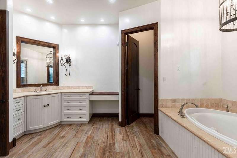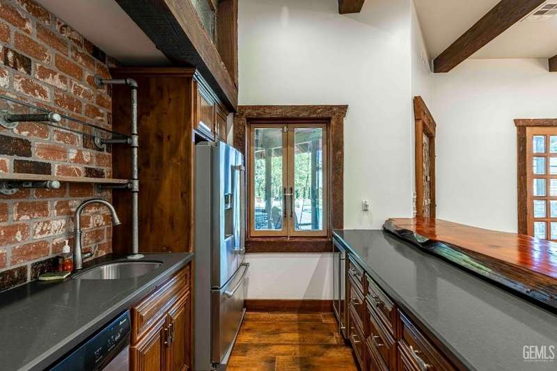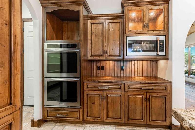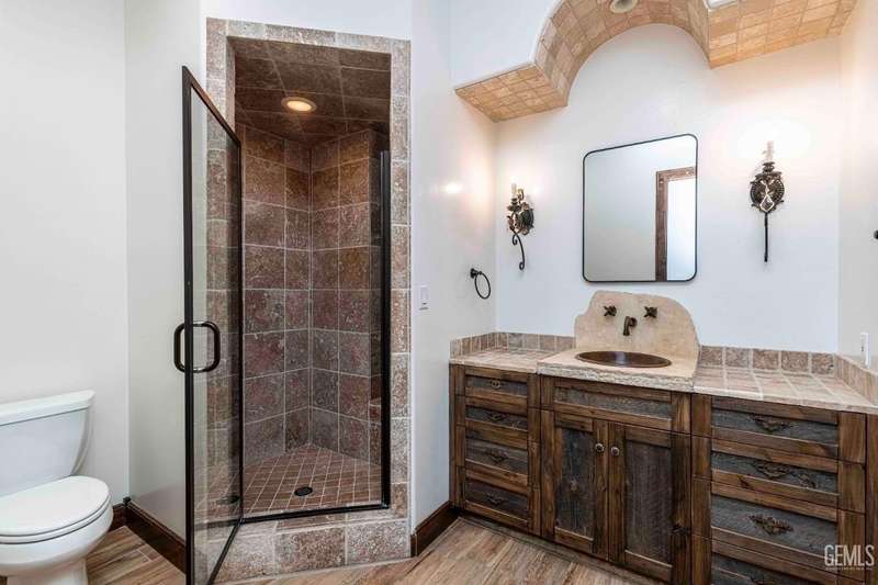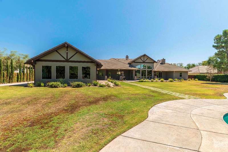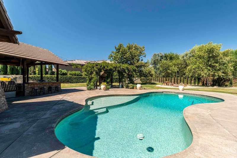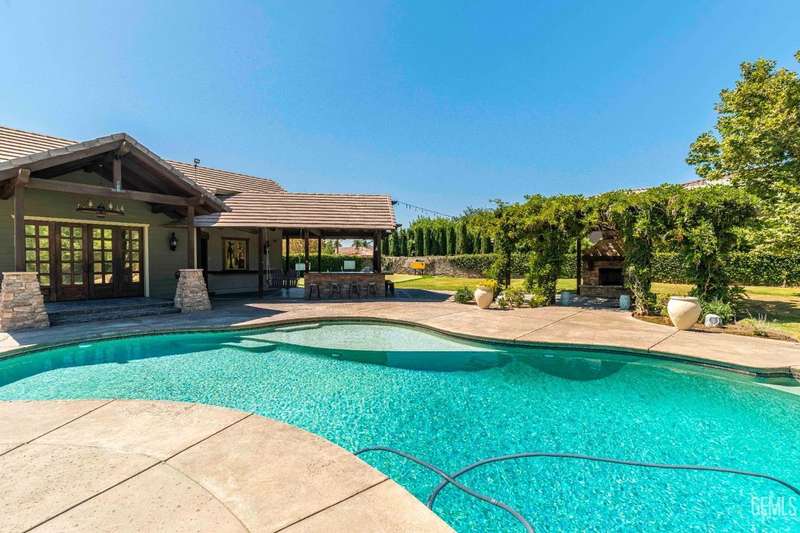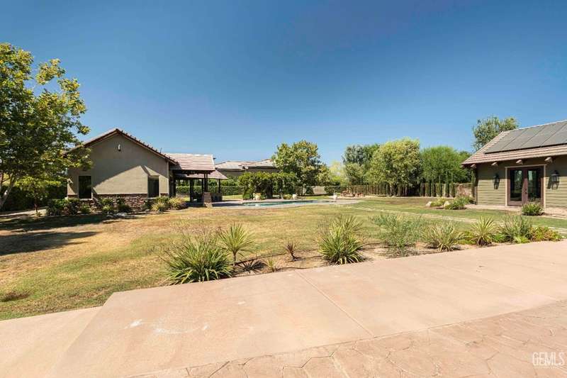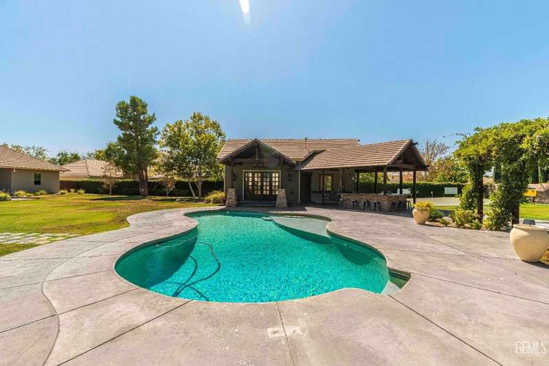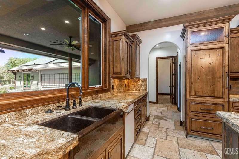 A luxurious blend of rustic elegance and refined living, this private 1-acre estate stuns w/ a Hunting Lodge-style exterior and Tuscan-inspired interior finishes. A dramatic stone faade, exposed beams, and lush landscaping set the tone, while inside, soaring vaulted ceilings, hand-hewn wood details and arched windows create warmth and sophistication. The majestic great room boasts a floor-to-ceiling stone fireplace and expansive views. The chef's kitchen is richly appointed w/ chiseled granite counters, travertine tile flooring, custom cabinets and professional quality appliances. An attached game room w/ bar offers endless versatility. Detached guest house w/ a full bar and outdoor covered BBQ w/ bar seating makes entertaining effortless. Additional amenities such as a sparkling pool, outdoor fireplace, 6-hole putting green, a fire pit and a huge, covered patio help to create a home which provides resort-style living, redefined.