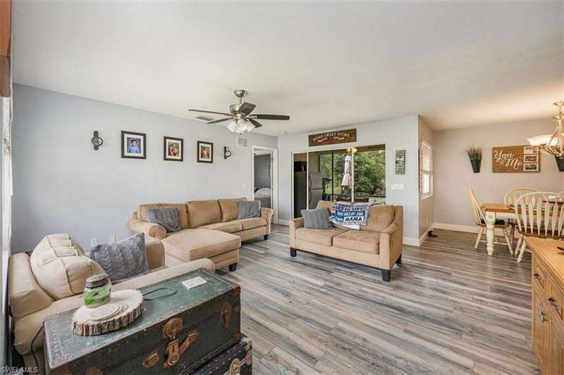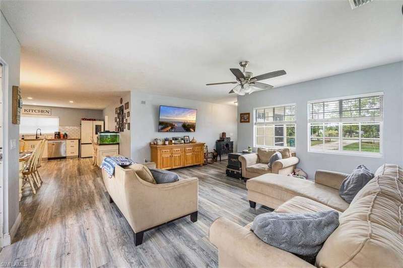 Charming Country Retreat on 1.4 Acres in Golden Gate Estates Welcome to this peaceful and well-maintained three-bedroom, two-bathroom home nestled on 1.4 acres in the desirable Golden Gate Estates. Offering over 1,300 square feet of living space, this residence provides a serene escape with no HOA restrictions. Enjoy tranquil views from both the rear lanai and front porch. The kitchen features warm wood countertops, while the master bedroom is appointed with wood laminate flooring and a spacious walk-in closet. Additional features include manual hurricane protection and a fully fenced yard-ideal for pets, privacy, or gardening. Situated on a quiet road, this property is just a short drive from shopping centers, parks, and public golf courses. This is the perfect opportunity for first-time homebuyers or anyone seeking outdoor space and freedom from HOA fees. Schedule your private showing today-this home won't disappoint!