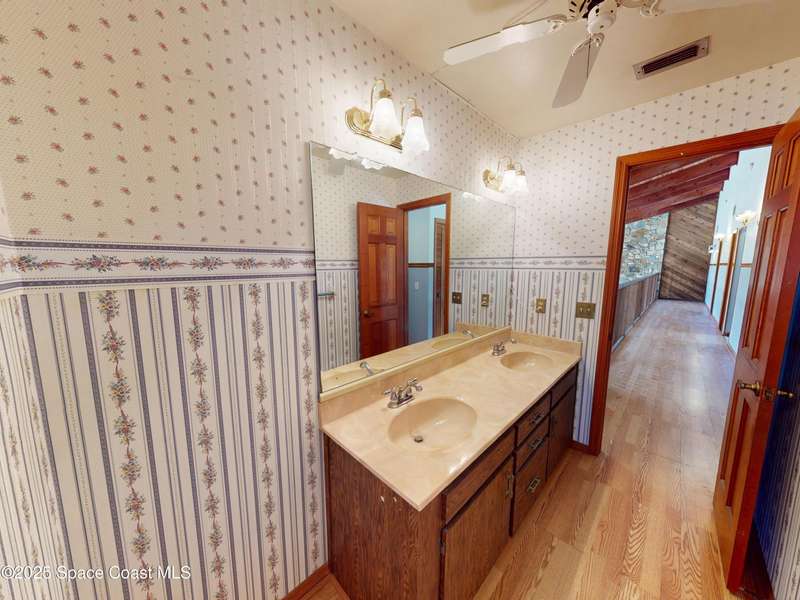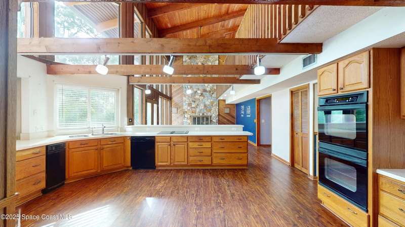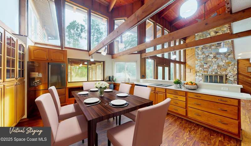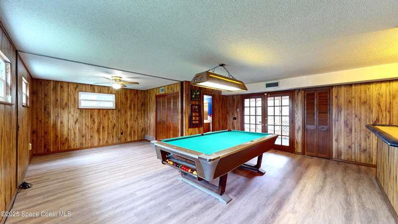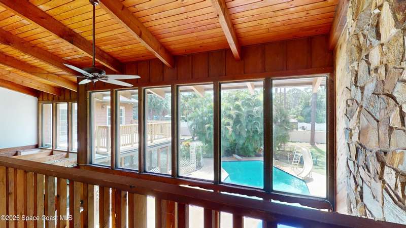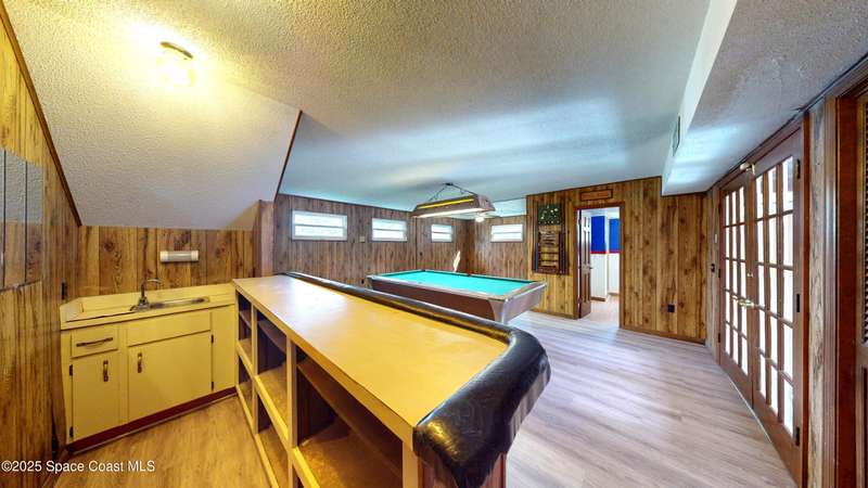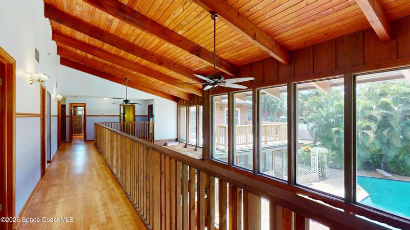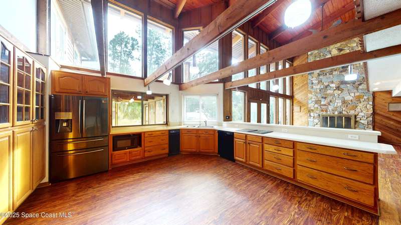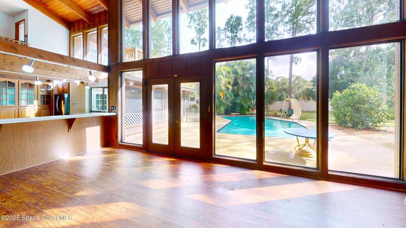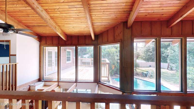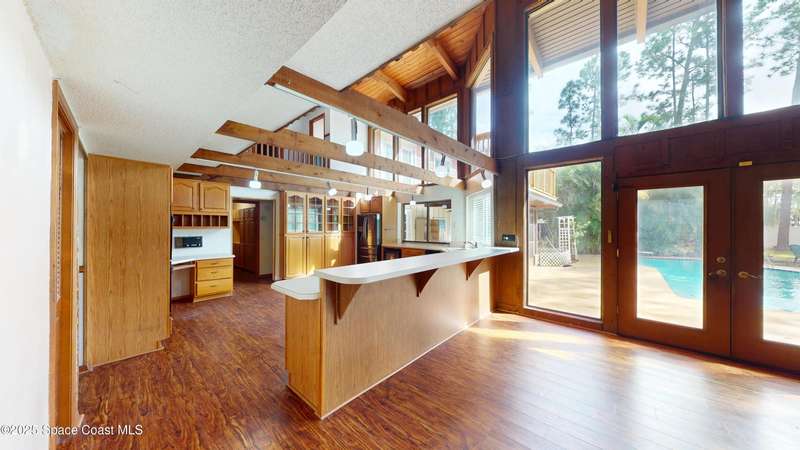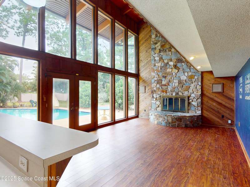 CHARMING 'COUNTRY-IN-THE-CITY' POOL HOME Nestled in a Highly Sought-After West Melbourne Location (NO HOA). This Exceptional Home, Offered for The First Time Is Perfect for the Large or Multi-Generational Family. Set on a Generous 3/4 Acre Corner Lot at the End of a Peaceful Cul-de-Sac, This Property Offers a Serene Atmosphere, Providing the Perfect Balance of Tranquility and Convenience. Spanning 3,984 Square Feet Under Air, This Classically Designed 5-Bedroom, 4.5-Bathroom Features A Large Recreation Room w/Full Bath, Easily Convertible to In-Law Quarters On The Ground Floor. Inside You'll Find an Expansive Layout Featuring a Spacious Family Room, Formal Dining Area, Living/Den/Flex; and a Huge Country-Style Eat-In Kitchen with Newer Appliances & Butler Pantry. The Soaring Wood-Beamed Vaulted Ceiling and Artistic Rock Fireplace Add a Sense of Grandeur and Openness, While the Abundance of Natural Light makes the Space Feel Warm & Inviting. See Supplement For List of Updates/Amenities Recent Updates/Upgrades: New Roof 11/2024, New Deck/Balcony Off Master Suite 9/2025, Numerous Impact Windows Installed 2018, Newer Electrical Panel, Whole House Replumbed 2014, One A/C 2023; Improvements Within Last Two Years: Newer Vinyl Fencing, Resurfaced Pool, Second Master Bedroom Bath Remodeled. Amenities: Security Cameras, Built-In Desk, Built-In Hutch, Down-Draft Cooktop, Wet Bar, Pool Table, Screened Porch With Garden Station/Sink; Circular Drive, Lots of Space for Boat/RV, Deep Sink, Pocket Doors, Built-In Closet Organizers (Dresser, Shoe Racks), Jet Tub, Pool Deck Refinished, Ground Mounted Solar Panels for Pool (pool 9' deep with slide and diving board), Outside Shower, Two Large Sheds, Irrigation Well With 6-Zone Sprinkler System; Transferable Termite Bond, A/C Systems Service Contract: Maintenance Performed 10/2025.