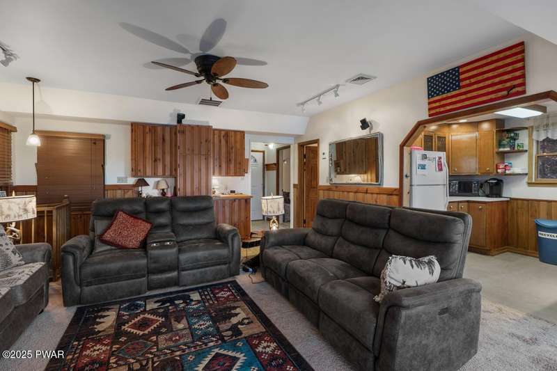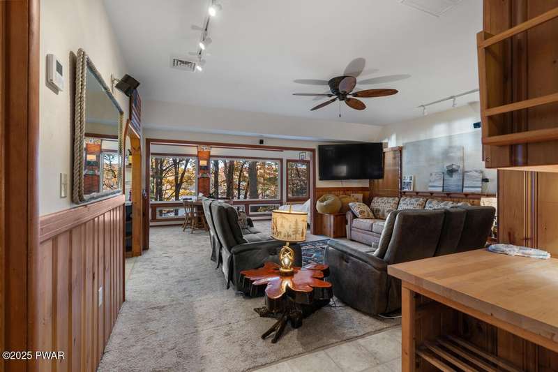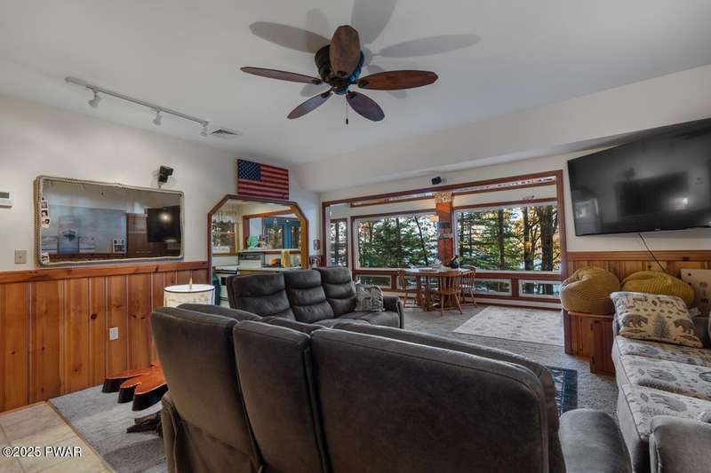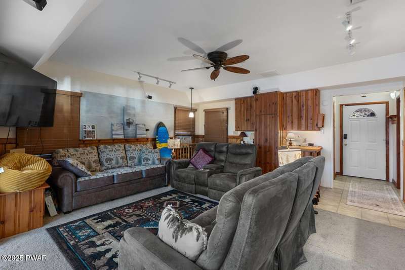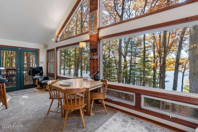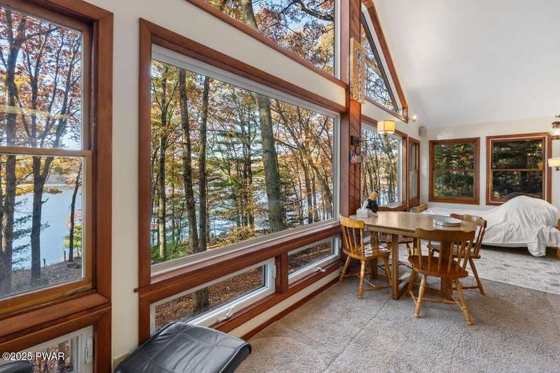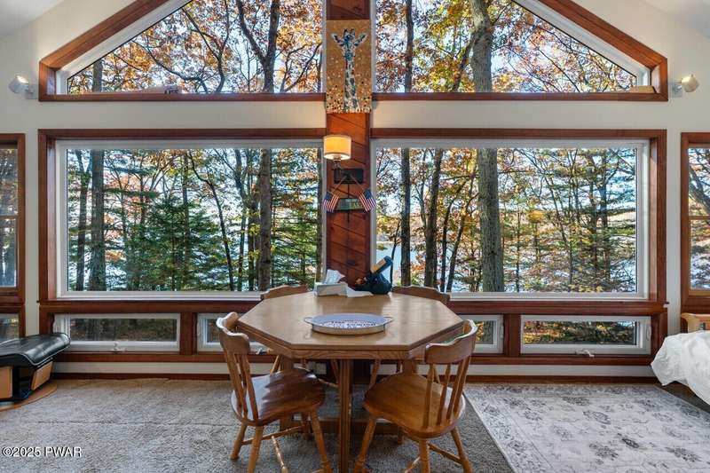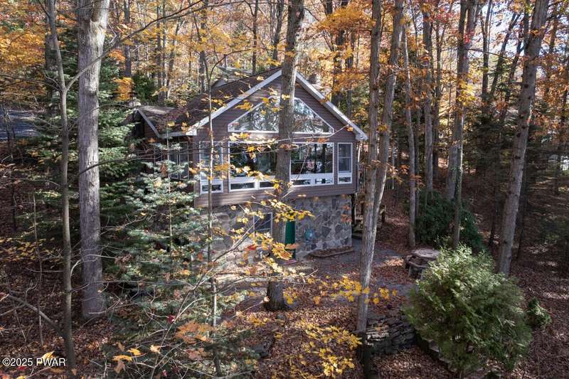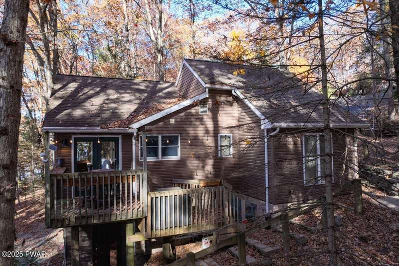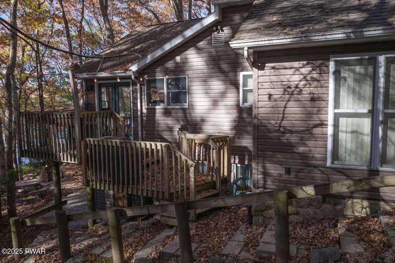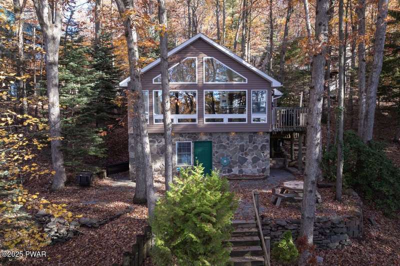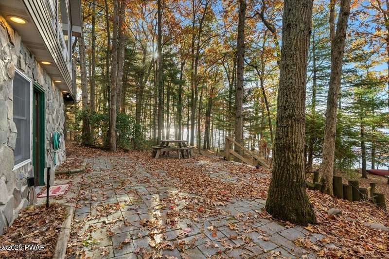 Lake Wallenpaupack Lakefront, 3 Bedrooms, 2 Bathrooms, plus lower level shower/sink, walk out basement. Oversized living room windows provide year round lakeviews, gentle walk down to the lake, boat dock included, firepit, large brick paver patio, no community or HOA to deal with, short term rentals permitted per Township guidelines.
