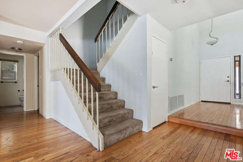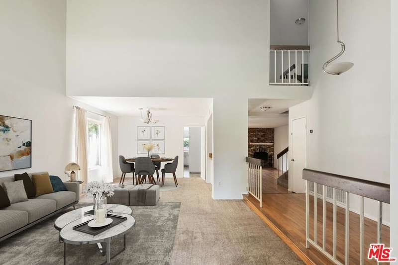 Nestled on a serene tree-lined street in the heart of Tarzana, this beautifully updated California traditional offers 5 bedrooms and 3 bathrooms across two spacious levels. A formal entry opens into a light-filled interior with soaring ceilings, leading to the elegant living and dining rooms, perfect for gatherings and entertaining. The updated kitchen boasts quartz countertops, a custom glass tile backsplash, double pantry, and a charming breakfast nook. Just off the kitchen, the inviting family room features a classic brick fireplace and sliding glass doors that open to a private backyard retreat. Outdoors, enjoy a heated pool and jacuzzi, a pergola-covered patio ideal for al fresco dining, and a cozy lawn perfect for relaxation or recreation. The main level includes a versatile bedroom with a full bath, along with a spacious laundry room. Upstairs, the expansive primary suite offers a large ensuite bath with a soaking tub, separate walk-in shower, and generous closet space. Three additional bedrooms share a full bath with dual sinks. Additional upgrades include new front siding, a new furnace, a new pool & spa heater and a new water heater. This home combines comfort, style, and functionality in one of Tarzana's most desirable neighborhoods, an exceptional opportunity not to be missed.