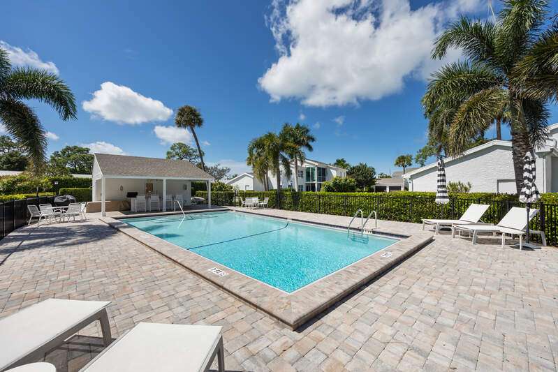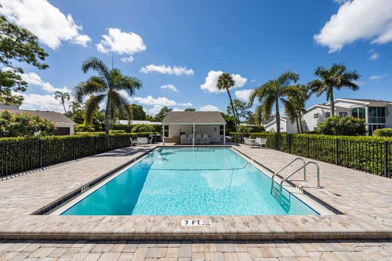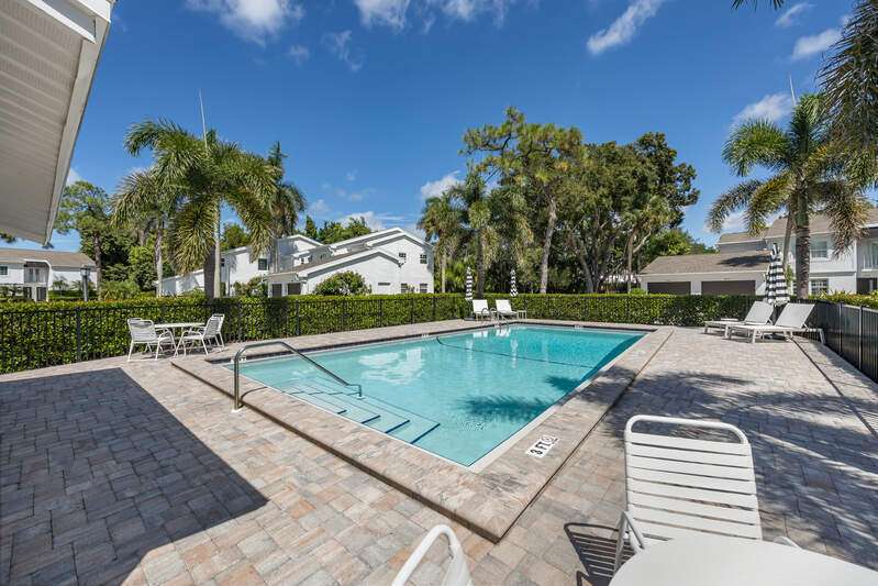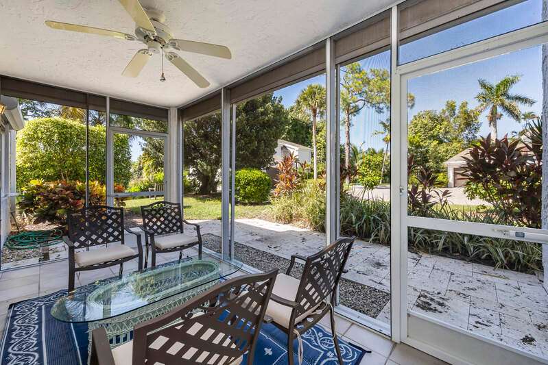 Just in time for the season, WEST OF 41, this move-in-ready, furnished 1st-floor, 2-bedroom, 2-bath end-unit villa with an attached garage delivers fantastic value without compromise. Beautiful landscaped grounds, Lakeview Pines features low-density with lots of space, and only 20 villas will make you feel instantly at home. Interior features include white cabinets, granite countertops, high vanities, ample storage, stainless steel appliances, freshly painted, tile flooring, and new carpet. Both bedrooms offer walk-in closets. Enjoy the covered screened-in outdoor patio space with partial lake view and peaceful surroundings. This impeccably maintained association takes pride in the exterior appearance with the following recent updates: RENOVATED PEACEFUL POOL, brick pavers, NEW ROOFS, gutters, painted exteriors, new garage doors, front doors, entry lights, and all assessments are paid. NO WATER OR FLOODING FROM HURRICANE IAN!! This property is located outside designated flood zones, providing peace of mind during the summer. Within walking distance, approximately one mile to the Gulf of Mexico! West of 41, walk a half mile to Waterside Shops & restaurants, Artis Naples, excellent schools, and more. This neighborhood offers the best of Naples living. Your search is over; this is the one.