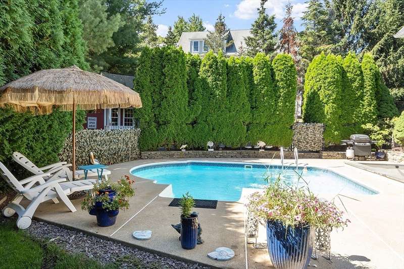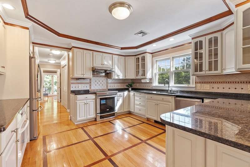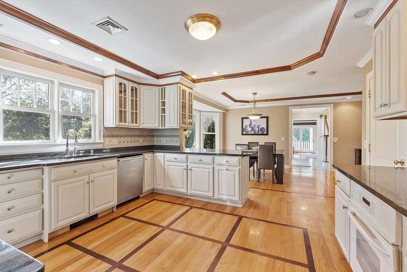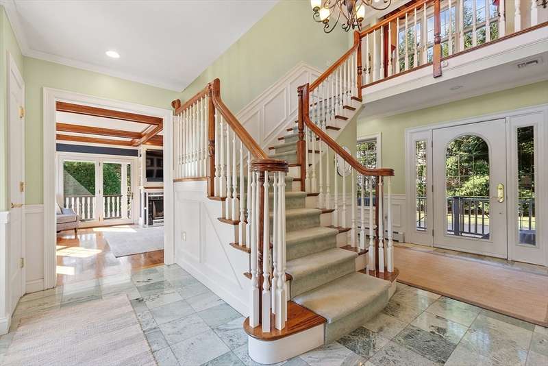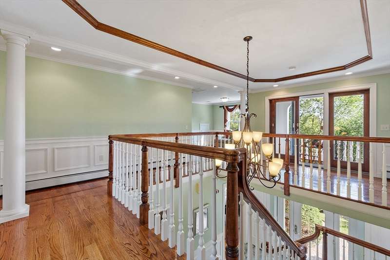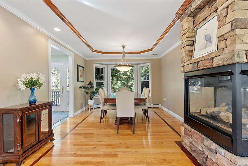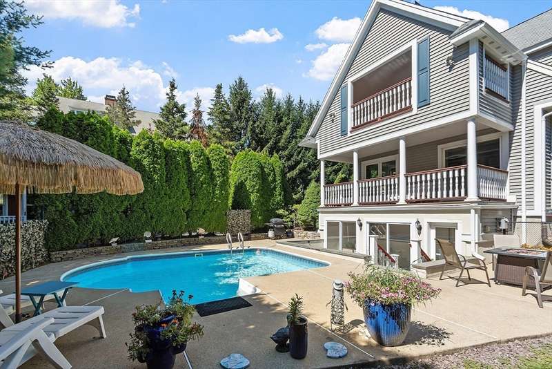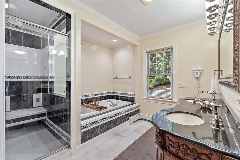 Spectacular describes this super-custom mint-condition builder’s home! Sundrenched with oversized windows, patio doors, and oval-glass entry doors, it boasts luxe features in every room. Elegant details include extensive moldings, coffered and tray ceilings, bay windows, and five fireplaces. The granite kitchen with range, wall oven, peninsula, pantry, and bay window opens to a fireplaced dining area in a seamless front-to-back layout. The living room, with coffered ceiling, bay windows, and fireplace, flows to the covered deck for easy indoor-outdoor living. The first-floor primary suite offers a tray ceiling, crown molding, private patio, and spa-like bath with tiled shower and Jacuzzi. A fireplaced study, dual laundry rooms, and glamorous foyer with glass doors and custom railings add function and flair. Upstairs are three bedrooms, two baths, Juliet balcony, and loft. The lower level features a media room with bar, exercise room, full bath, and sunroom overlooking a private pool.