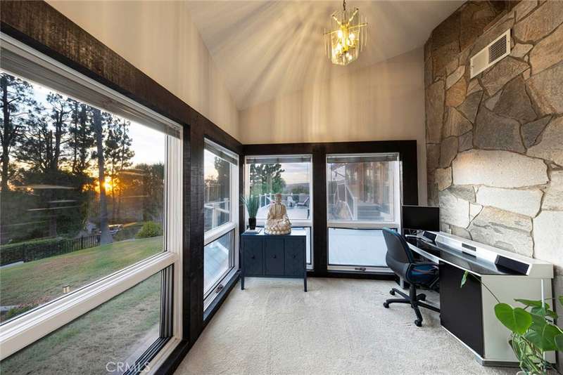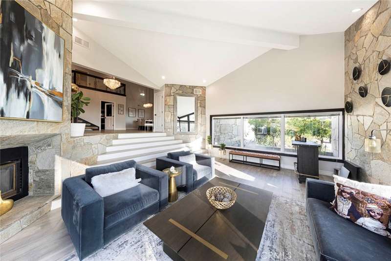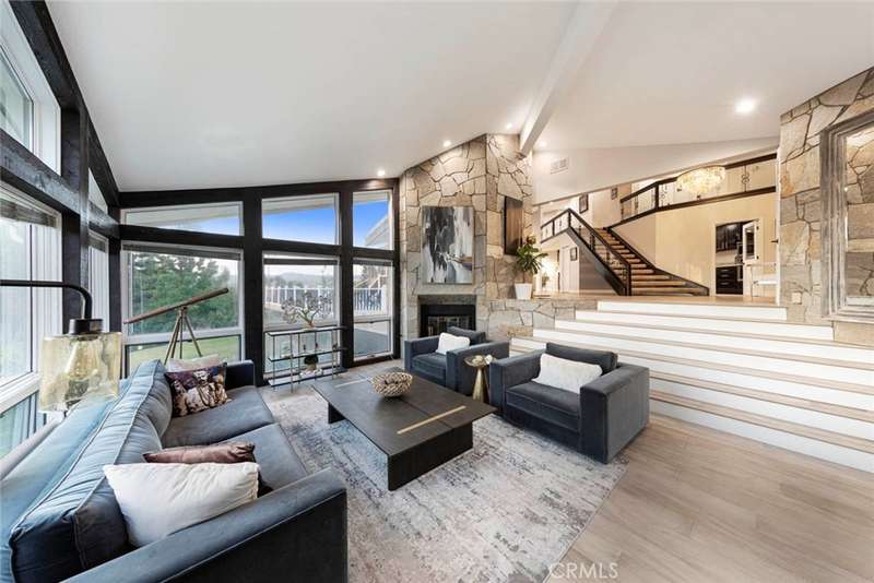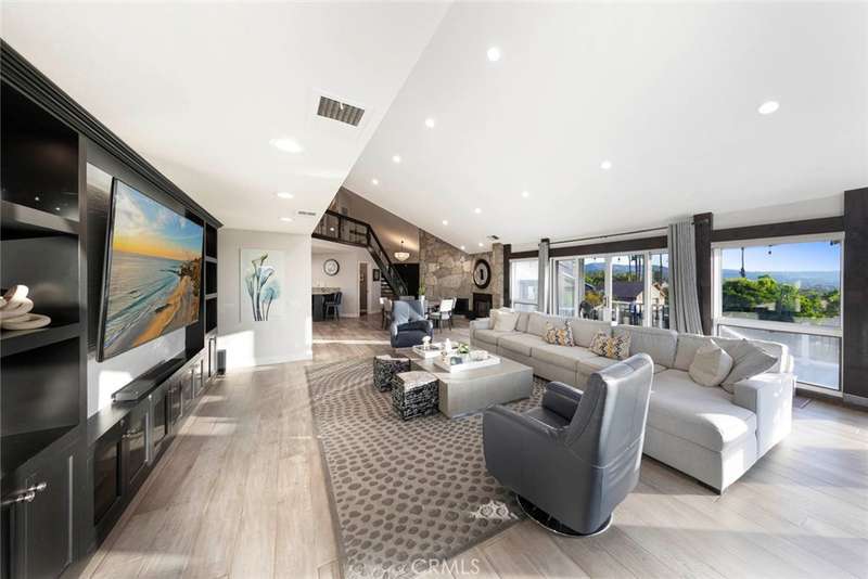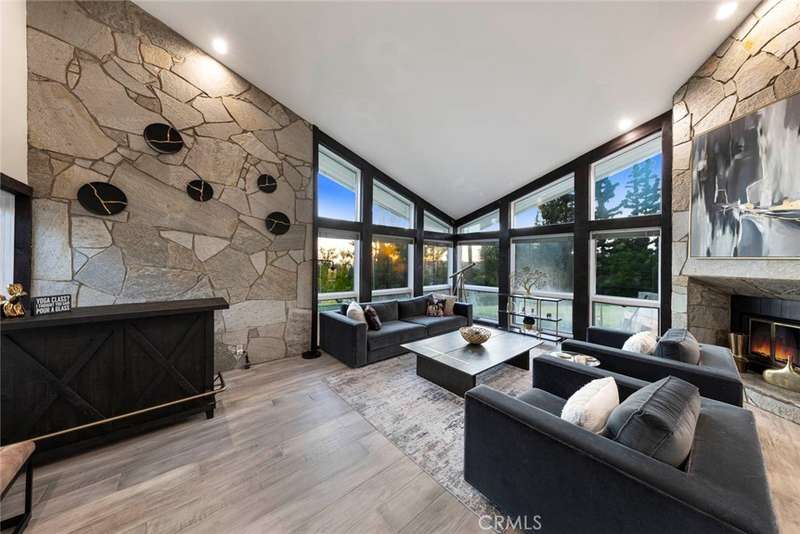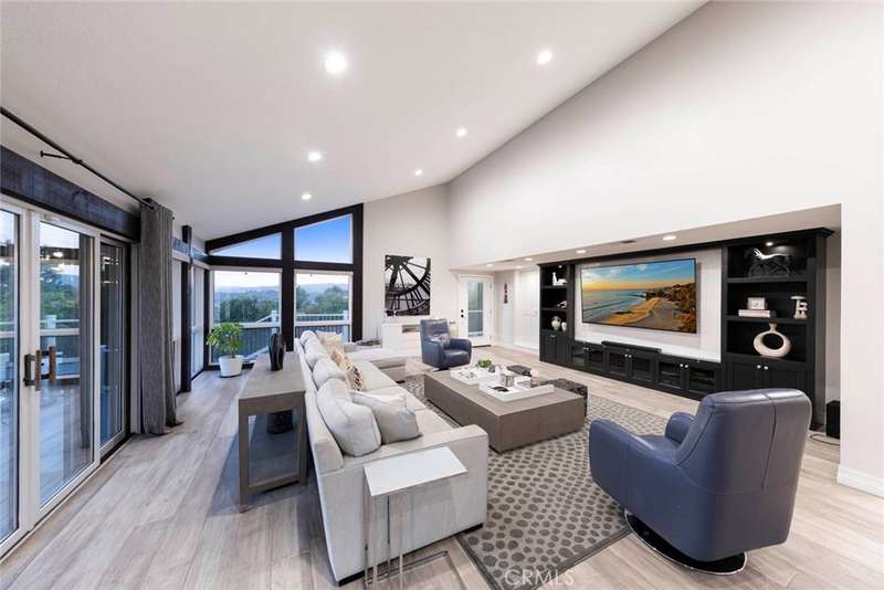 Inside, soaring two-story ceilings, expansive walls of windows, and abundant natural light create a bright, open atmosphere. Designed for seamless indoor-outdoor living, this semi-custom residence features ample parking, a tranquil setting, and breathtaking views that enhance every moment.