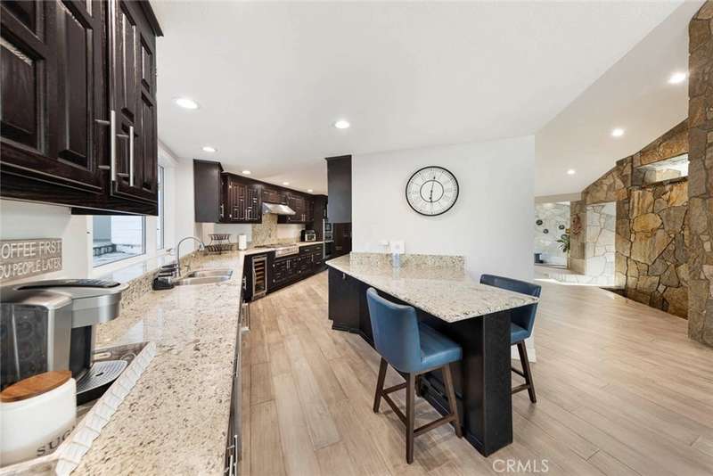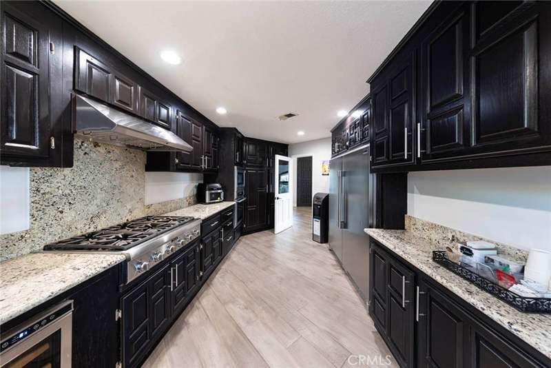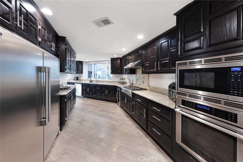 The formal entry opens to a sunken living room and a formal dining room--perfect for intimate gatherings. The spacious family room boasts custom-built TV cabinetry, while a bonus room (currently used as a gym) adds flexibility. A downstairs office & bedroom with its own bathroom offers convenience and privacy. The chef's kitchen has been tastefully updated with solid wood cabinetry, granite countertops, Thermador appliances, an oversized professional fridge/freezer, wine fridge, and a full house Culligan water filtration system.