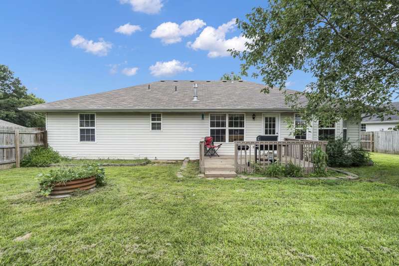 This 3-bedroom, 2-bath home built in 1999 features a 2-car garage and 1,513 square feet of living space. Located in the Shady Acres subdivision just off Highway 160, it offers convenient access to Nixa, with both Highlandville and Springfield only 10-15 minutes away in either direction. Grocery stores, restaurants, schools, playgrounds, and entertainment are all nearby.Inside, you'll find carpet, hardwood, and tile flooring throughout. The kitchen boasts dark cabinets, laminate countertops, and comes complete with appliances. The primary bedroom features a tiered ceiling, adding a touch of elegance to the space.Outside, enjoy a wooden privacy-fenced backyard with a spacious deck and patio area, perfect for entertaining or relaxing. The home sits on a flat lot and offers a brick front with vinyl siding for lasting curb appeal.This home is a great option for a first-time buyer or someone looking to downsize. With its convenient location, functional layout, and outdoor living space, it's a must-see!