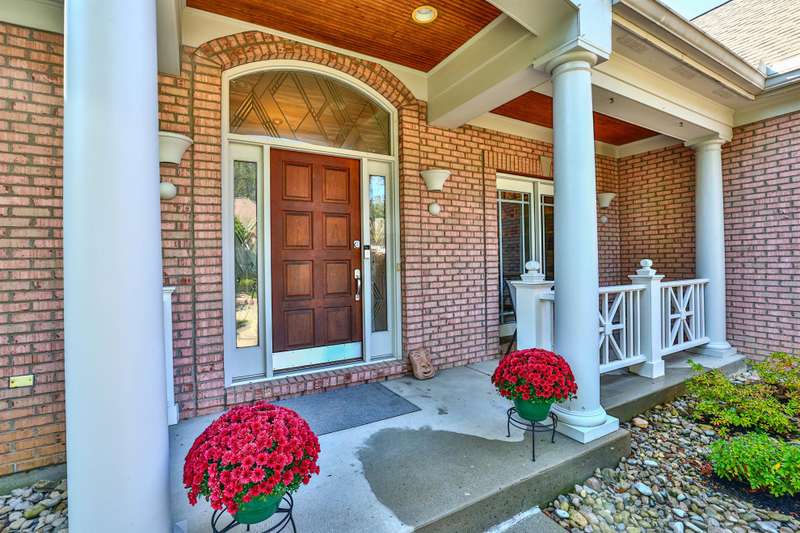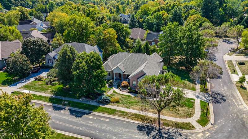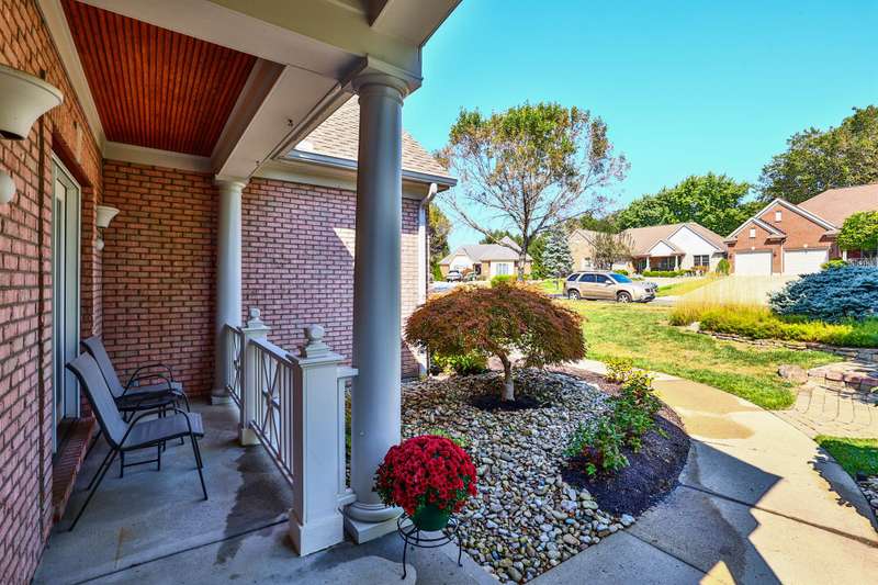 Large transitional ranch on 4124 sq ft. Owner put all the extras in this home when building it. Gourmet kitchen with granite CC, island counter bar opens up to Hearth Room 24x15! 1st floor study with bookcases, French doors. Large entrance with leaded glass transom, accent lights in the ceiling. Great Room with gas fireplace, built-in entertainment center, ceiling fans, 10 ft ceiling! Deck with gas line for grill. 1st floor laundry with sink & cabinets. 1st floor primary with deluxe bath, walk-in shower, whirlpool tub, 2 Corian sinks. Bay windows. Home offers double crown molding with craftsman beauty! LL with 20x17 family room with walkout to patio. 3 more bedrooms, one could be an exercise room. Lots of large storage closets. Huge storage room. Surround sound, updated alarm system. HVAC 2023, roof 2025. Backyard is very private with extra lot manicured by the HOA. Perfect for easy living!