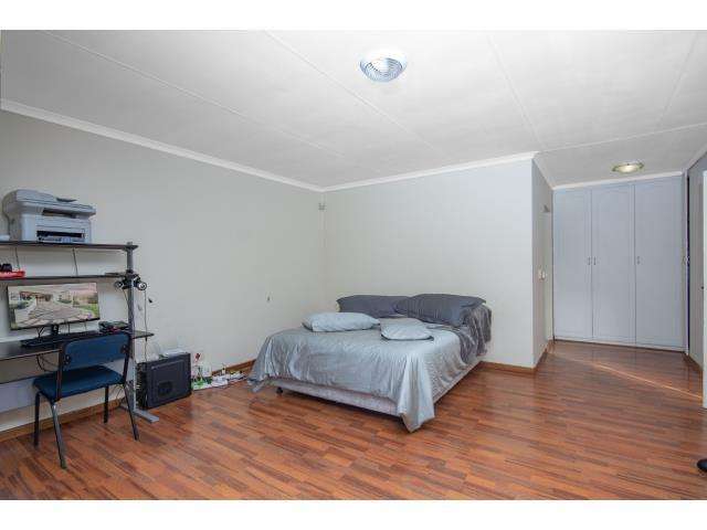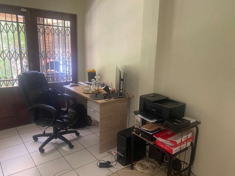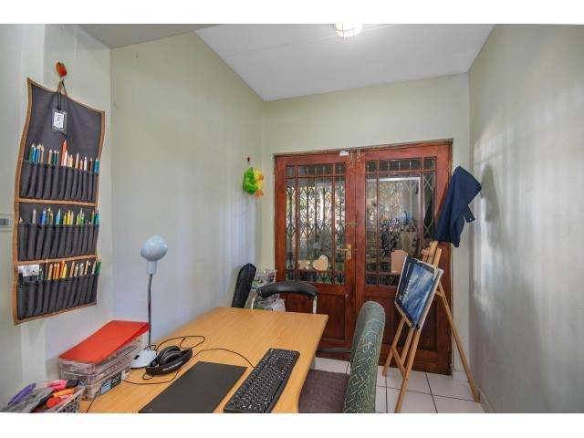 On entry into this house is the entrance hall that has been used as an office. Around the corner it leads into an open plan lounge, dining area and kitchen. The granite kitchen has a counter convenient for meal prep and feeding the kids. There is a gas hob and electric oven with an extractor hood and space for a double fridge Attached to the kitchen is the scullery with space for 2 appliances and the back door that leads to a large yard to hang the washing and for the kids to play.
