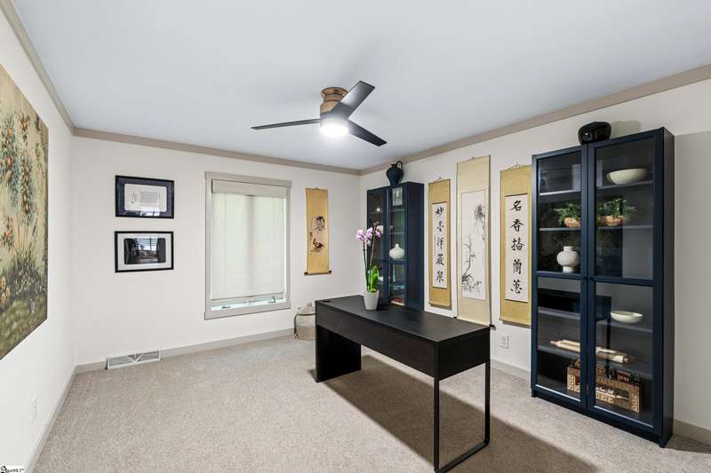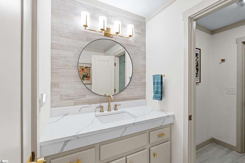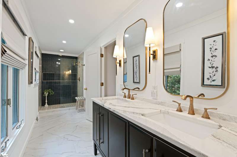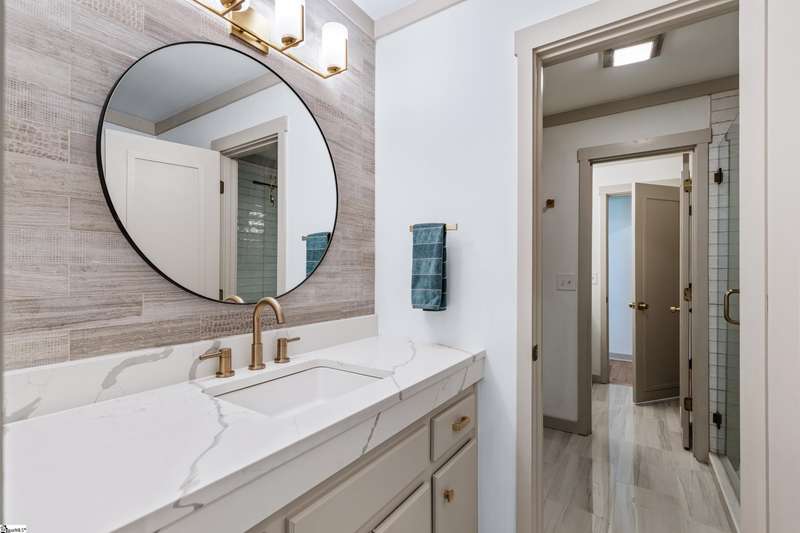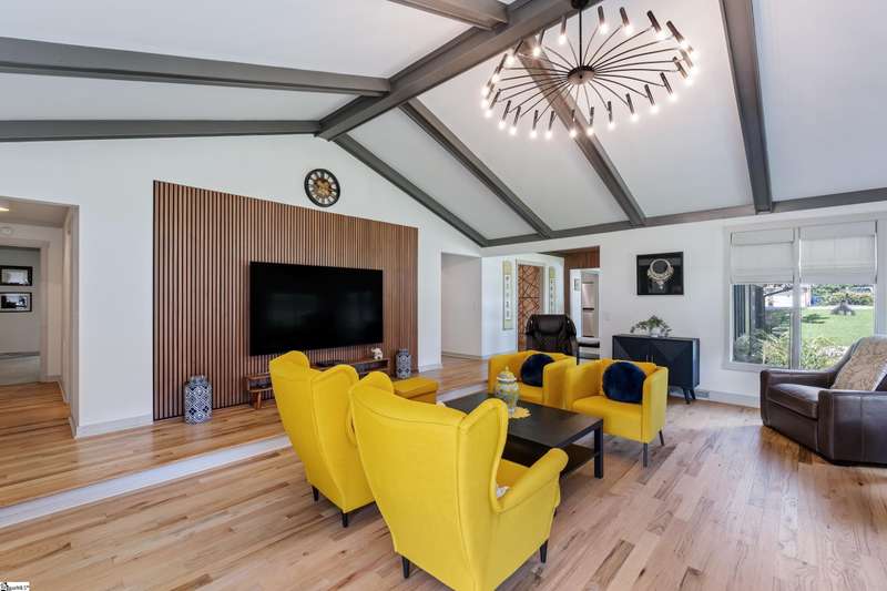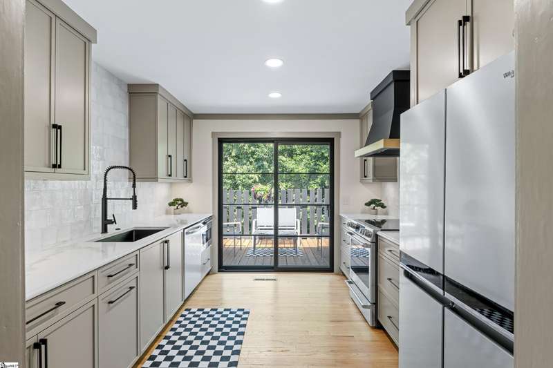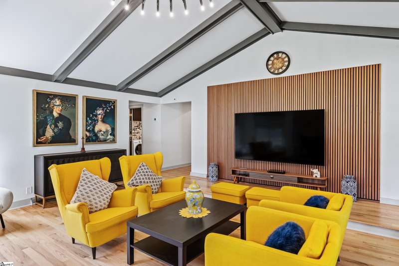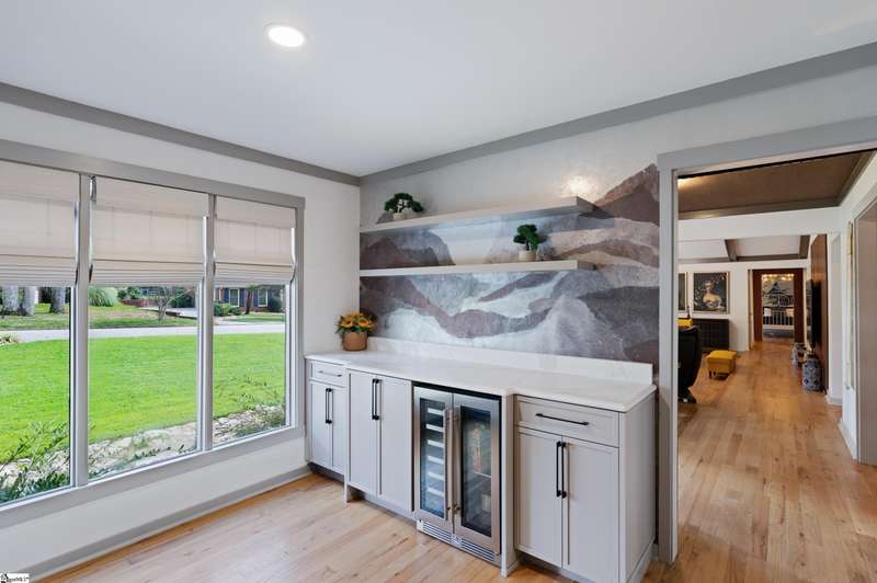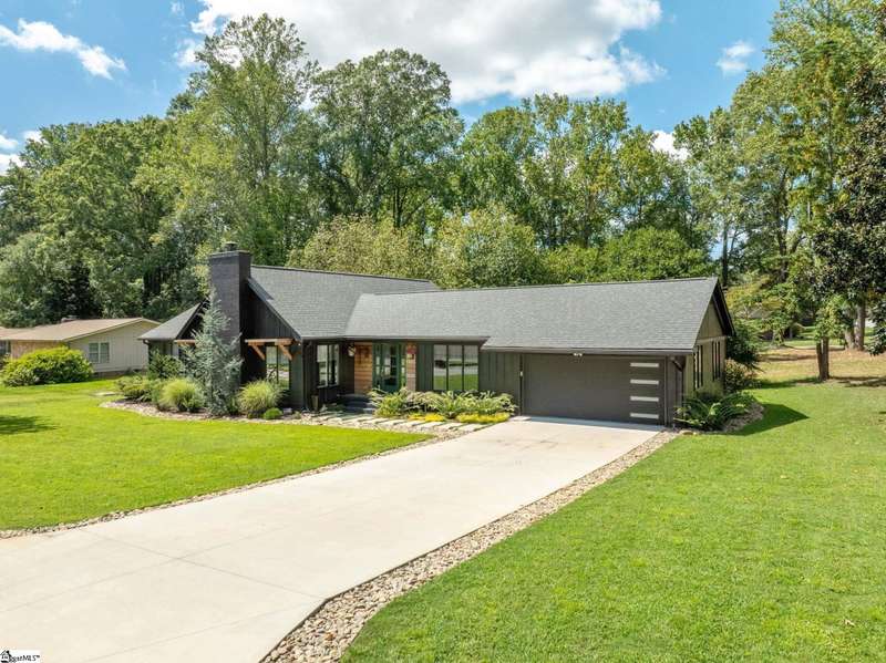 This home is offered by Blair Miller with Wilson Associates. Please contact Blair at 864.430.7708 or blair@wilsonassociates.net. Welcome to 225 Parliament Road, a beautifully renovated home on a prominent corner lot, just minutes from Pelham Road and downtown Greenville. The exterior makes a striking statement with fresh landscaping, bold black paint, and a sleek newer garage door. Concrete pavers guide you to the inviting porch and front entry. Inside, the foyer opens to a formal dining room highlighted by gorgeous finishes and a stylish light fixture. The kitchen has been completely renovated with all-new cabinetry, premium appliances, quartz countertops, and a bar with wine fridge and plenty of storage. A glass door leads out to the back deck and yard, making entertaining seamless. The sunken living room is the heart of the home, featuring a tiled fireplace and an abundance of natural light. The primary suite offers a walk-in closet, elegant lighting, and a spa-like bath with double sink vanity and a luxurious, tiled shower. Guest bedrooms are equally comfortable and share a modern jack-and-jill bath. With every space thoughtfully updated, this move-in ready home blends modern touches with timeless charm. Don’t miss your chance to see this one-of-a-kind Greenville property! Convenient to I-385, I-85, downtown Greenville and all that the Pelham Road area offers for shopping and dining. Schedule your chance to view this amazing, move-in ready home today!