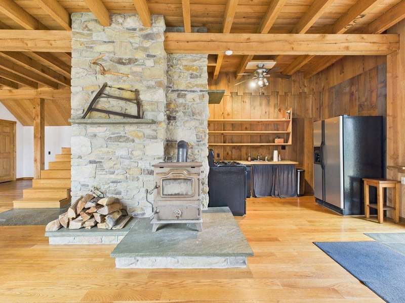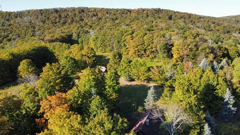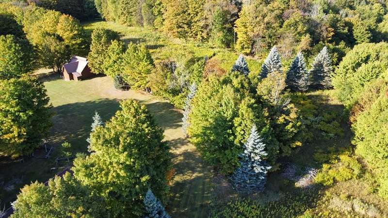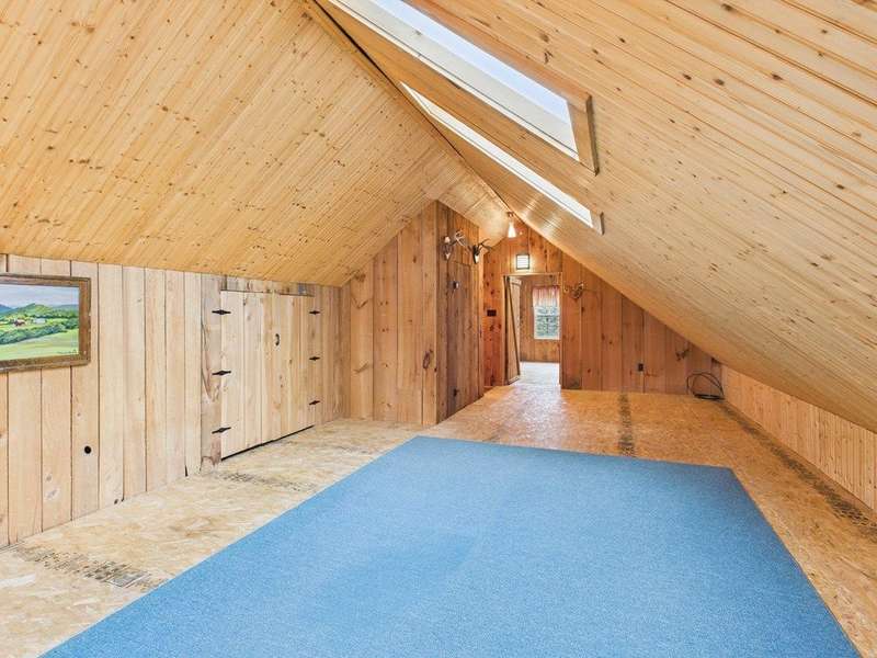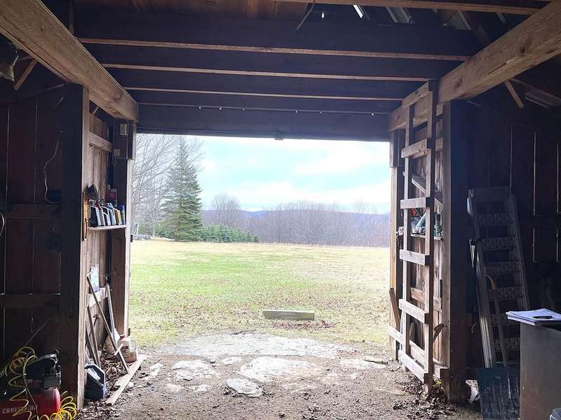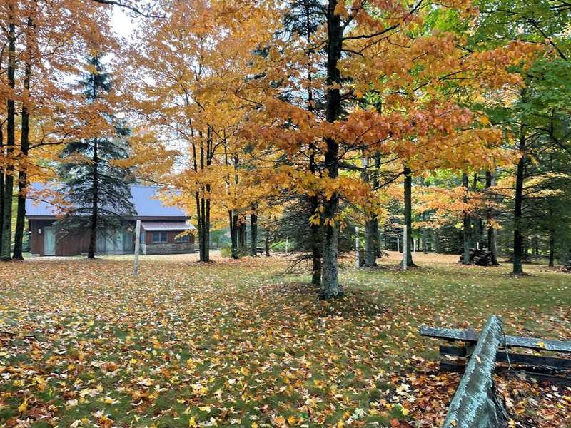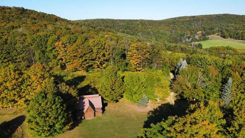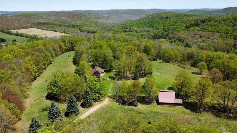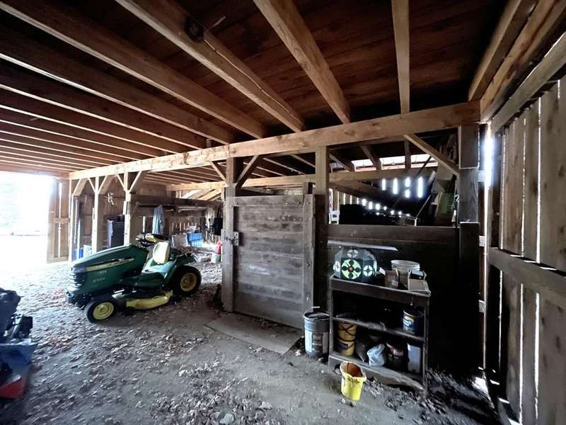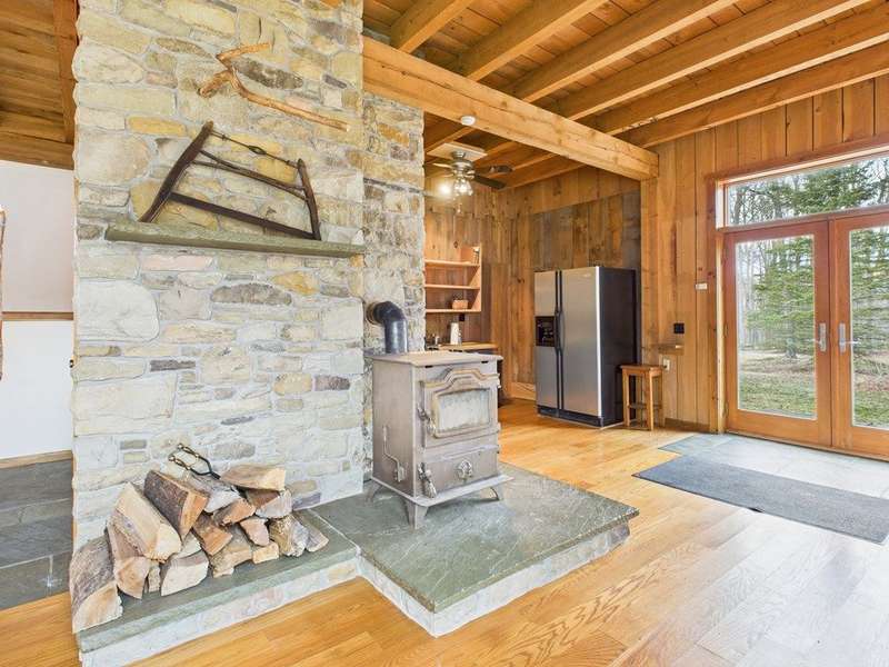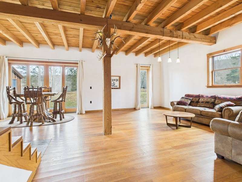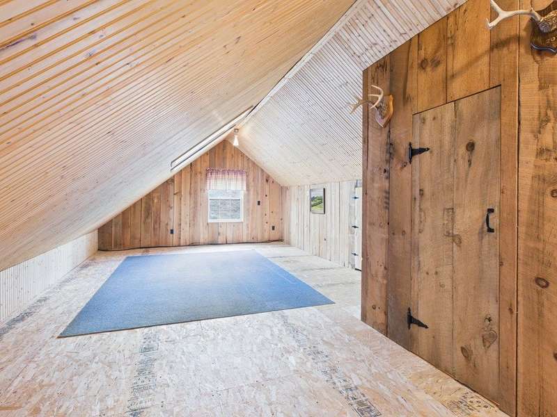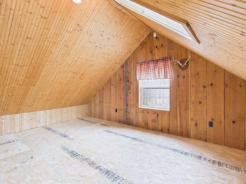 Back on the market and hunting season ready to start! Escape the busyness of life with this secluded & serene 76.16 acre property. As you drive the long private driveway with no neighbor in sight, enjoy the wooded land with thousands of pines planted, offering a tranquil & secluded setting. Rustic fencing meanders around the home adding character as you walk to go fishing in a pond nestled in the woods. Hiking & ATV trails wind throughout the land with abundant wildlife for excellent hunting. The barn with horse stalls & hay loft is ideal for equestrians or anyone in need of storage. The meticulous and inviting 1,700 sq. foot cape cod style home features an open floor plan on the lower level with a welcoming living area with a stone hearth and chimney with wood stove and an open shelving style kitchen. Skylights let in natural light and shine on the oak hardwood floors with radiant heat for added comfort. A bath on the ground floor, 2 bedroom upstairs.
