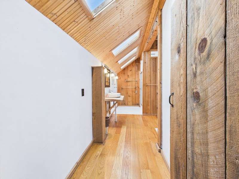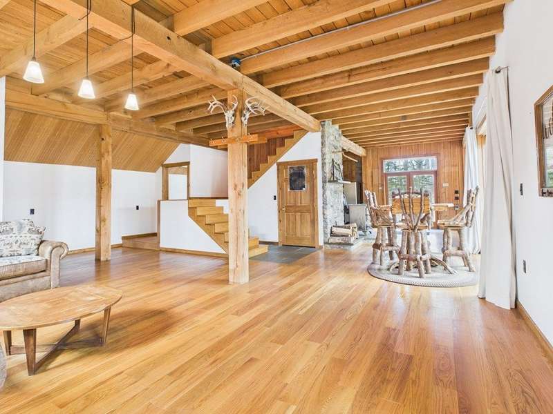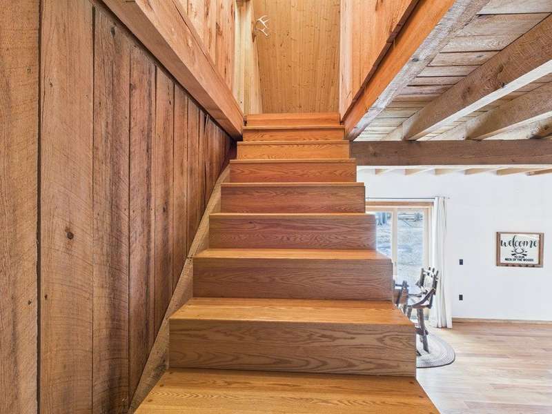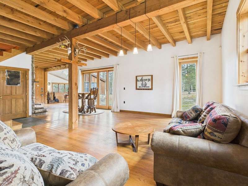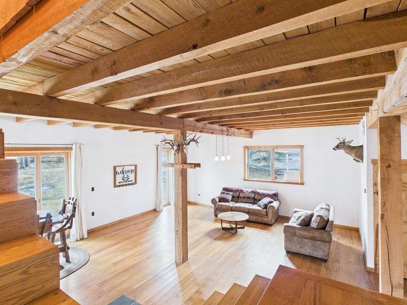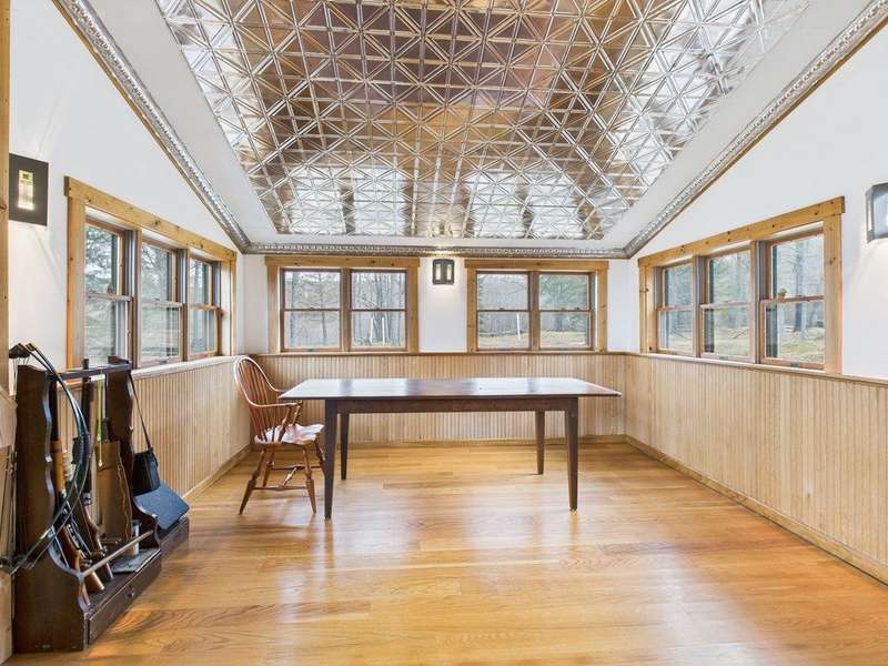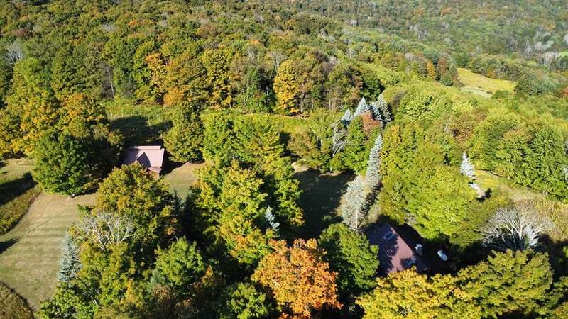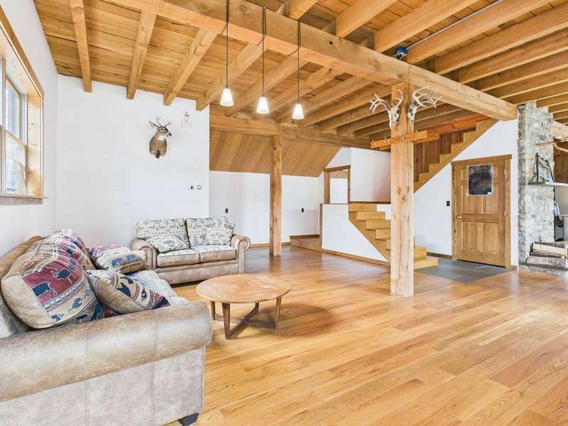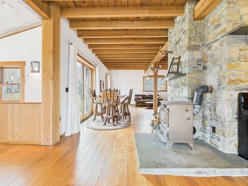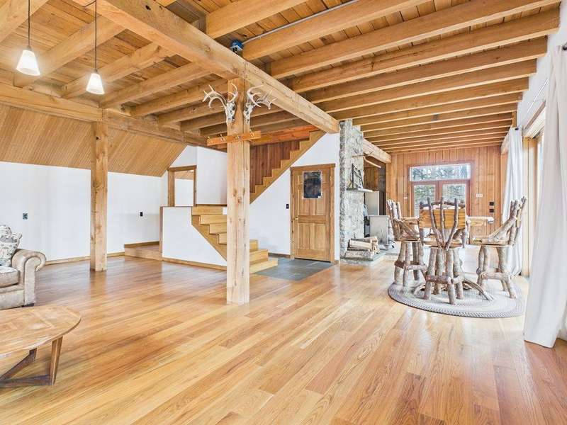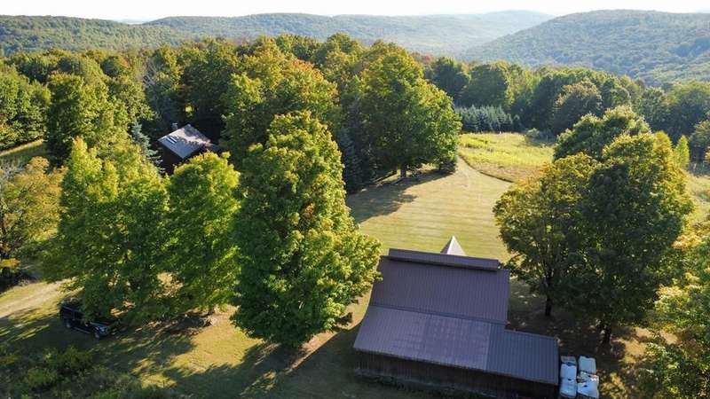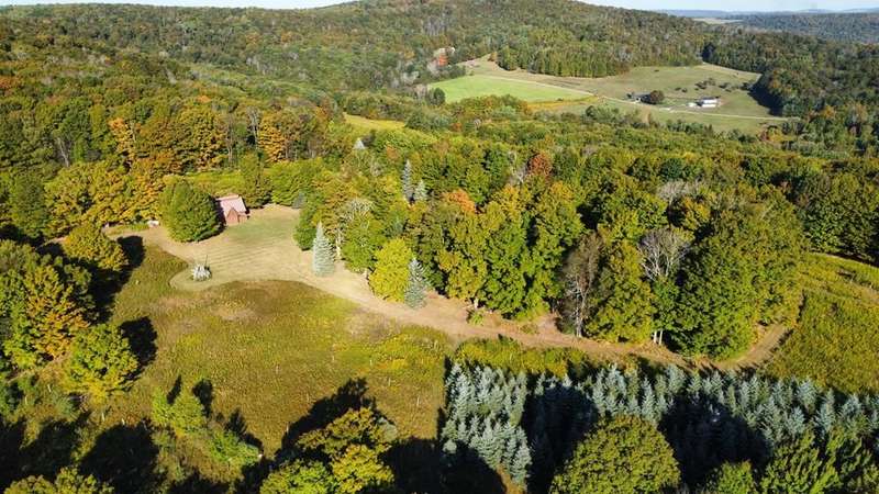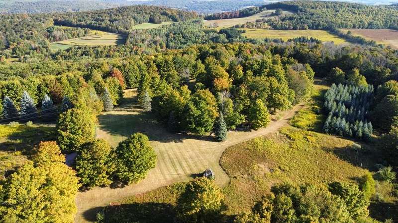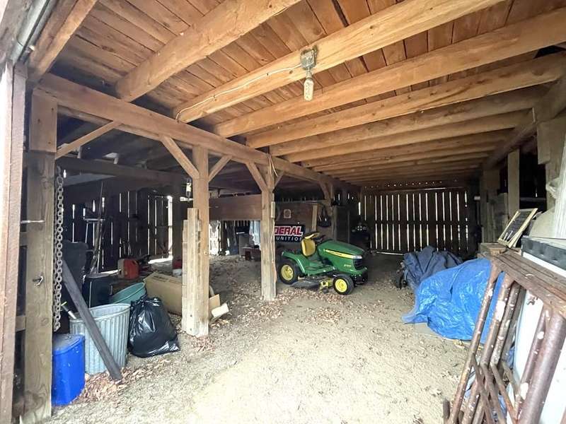 Back on the market and hunting season ready to start! Escape the busyness of life with this secluded & serene 76.16 acre property. As you drive the long private driveway with no neighbor in sight, enjoy the wooded land with thousands of pines planted, offering a tranquil & secluded setting. Rustic fencing meanders around the home adding character as you walk to go fishing in a pond nestled in the woods. Hiking & ATV trails wind throughout the land with abundant wildlife for excellent hunting. The barn with horse stalls & hay loft is ideal for equestrians or anyone in need of storage. The meticulous and inviting 1,700 sq. foot cape cod style home features an open floor plan on the lower level with a welcoming living area with a stone hearth and chimney with wood stove and an open shelving style kitchen. Skylights let in natural light and shine on the oak hardwood floors with radiant heat for added comfort. A bath on the ground floor, 2 bedroom upstairs.