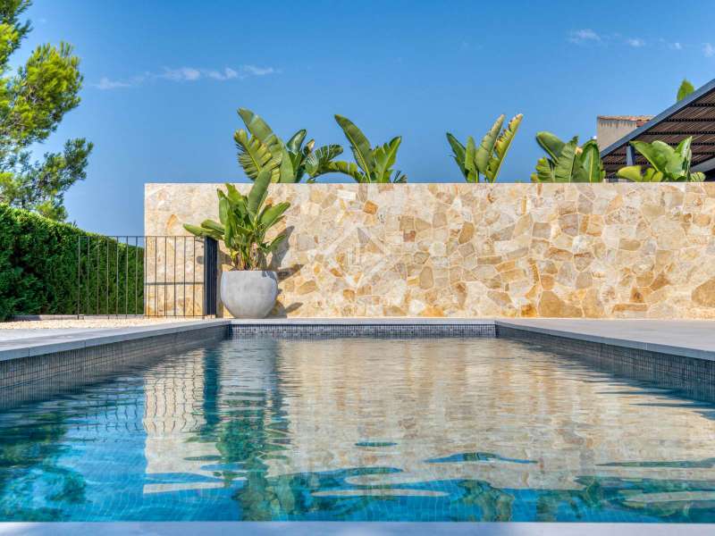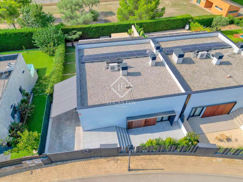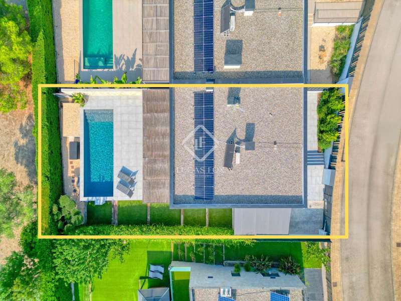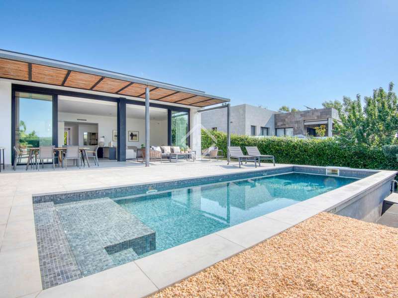 In the quiet, residential neighbourhood of Mas Pla, in Santa Cristina d'Aro, we find this modern 145 m² detached house on a 378 m² plot . Its southerly aspect and privileged location offer all-day light and open views of the mountains surrounding the Baix Empordà. Just ten minutes from the beaches of the Costa Brava and half an hour from Girona, this property combines comfort, style, and proximity to all amenities. Built in 2019, it features a modern and functional design, conceived for the convenience of single- floor living, as it has no stairs and maximizes the use of natural light. The clean-lined facade and aluminum frames with double glazing give it an elegant and efficient style. Inside, the layout is practical and welcoming. It features a spacious dining room living room with an open-plan kitchen and direct access to the garden and pool, two double bedrooms (one en suite ), an office-style room, and a guest toilet. The finishes are high-quality: porcelain stoneware floors, underfloor heating , and air conditioning. The exterior invites relaxation, with a private garden and pool at living room level, ideal for enjoying the fresh air and mountain views. It also features an open garage with capacity for two cars. This property is ideal for those looking for a modern, newly built home with views, privacy, and a natural setting in one of the most charming villages in the Baix Empordà.