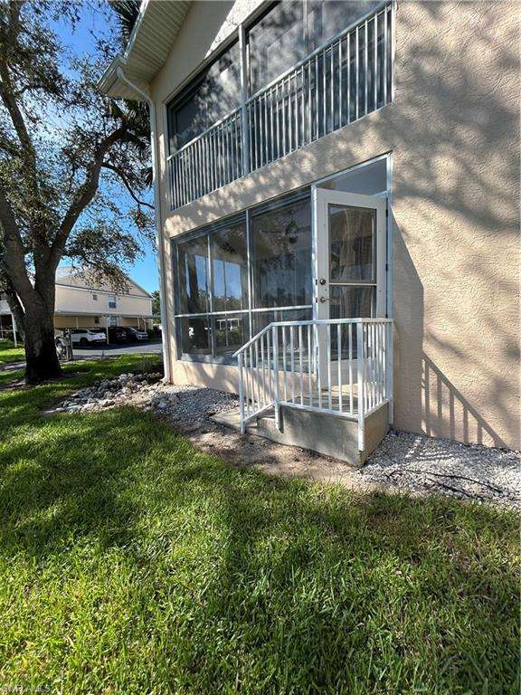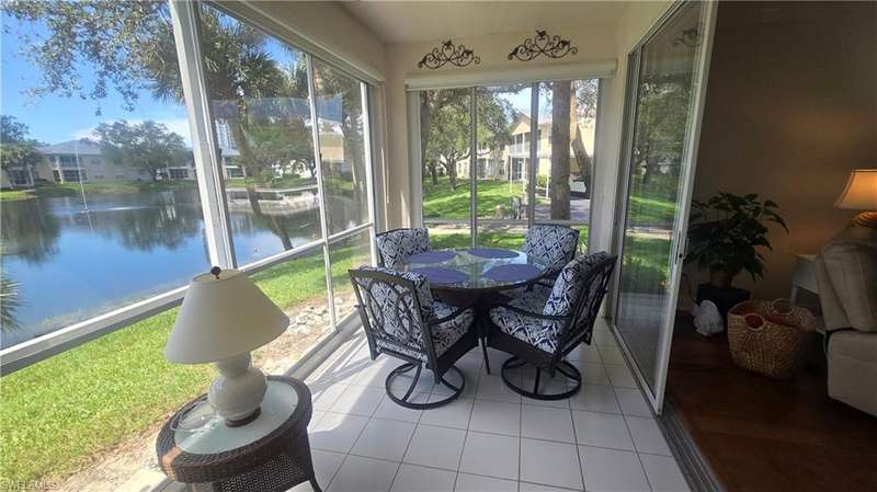 Seller Financing offered. No water intrusion into condo living space from Hurricane Ian. Welcome to your dream home in the vibrant Wiggins Lakes & Preserves community of North Naples! Perfectly located just west of US 41, this stunning coach home puts you only minutes away from exquisite beaches, lush parks, and a diverse array of dining and shopping options, ensuring the best of coastal living at your fingertips. Step inside this meticulously renovated ground-floor unit, and you ll be immediately captivated by the serene lakefront views, where gentle fountain sounds create a peaceful ambiance. The screened and glassed rear lanai, complete with electric blinds, offers an idyllic space to relax and enjoy the beautiful surroundings year-round. The bright and airy interior showcases high-quality finishes and exceptional attention to detail throughout. Culinary enthusiasts will love the updated kitchen, which features luxurious quartzite countertops, sleek new wood cabinetry, an efficie