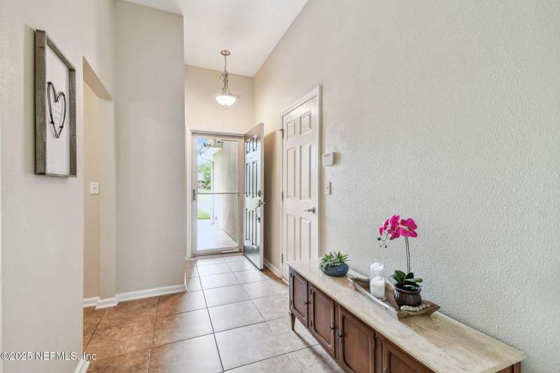 Welcome to this beautifully maintained 3-bedroom, 2-bath Pool home located in a desirable community just off county road 207. Formerly a model home by Wolf Builders, this residence offers a thoughtful layout and numerous upgrades throughout, such as new HVAC, water heater, heat pump and appliances.Enjoy the spacious screened in pool enclosure with tranquil pond views-perfect for relaxing or entertaining.Interior features include durable vinyl plank flooring and ceramic tile throughout the main living areas, with carpet in the primary suite and one guest bedroom.The open concept design is complemented by smart home technology, including bluetooth-enabled controls for the HVAC, garage and irrigation, conveniently accessible from your smart phone wherever you are.Located just minutes from I-95, downtown St Augustine, beaches, shopping and restaurants, this home offers the ideal combination of comfort and convenience. Seller is offering $5,000 towards rate buy down for the Buyer with an accepted offer. Schedule your private showing fast before this beauty is gone!