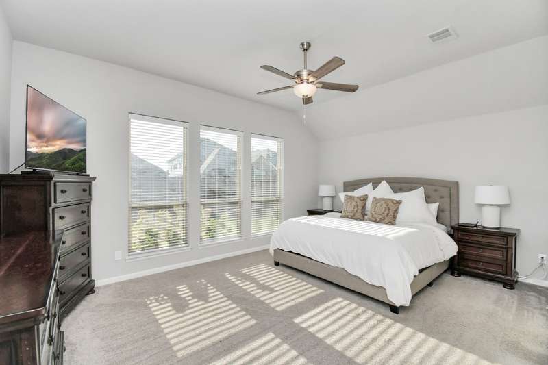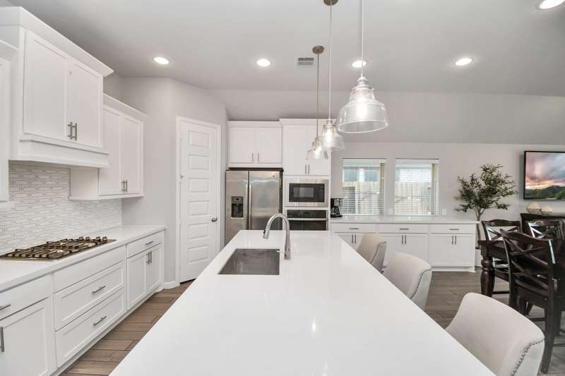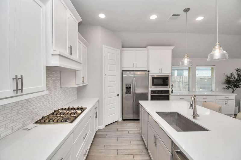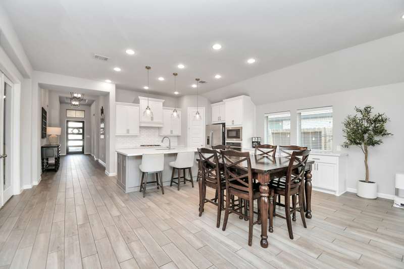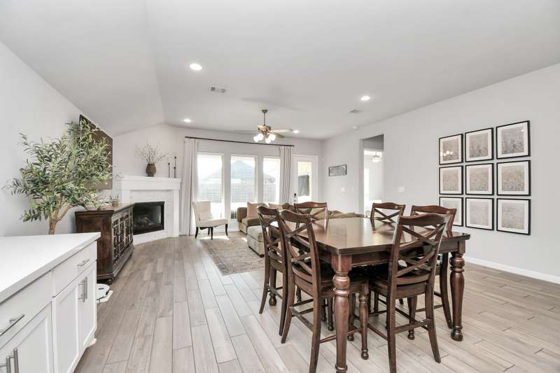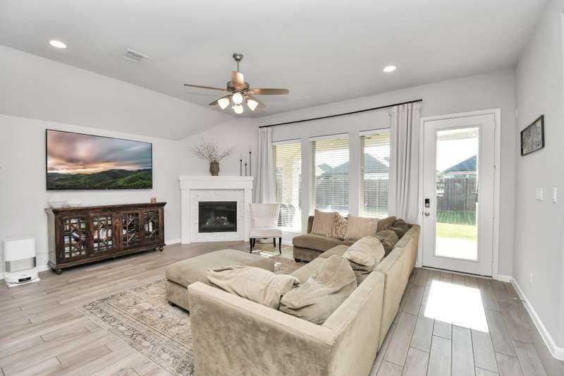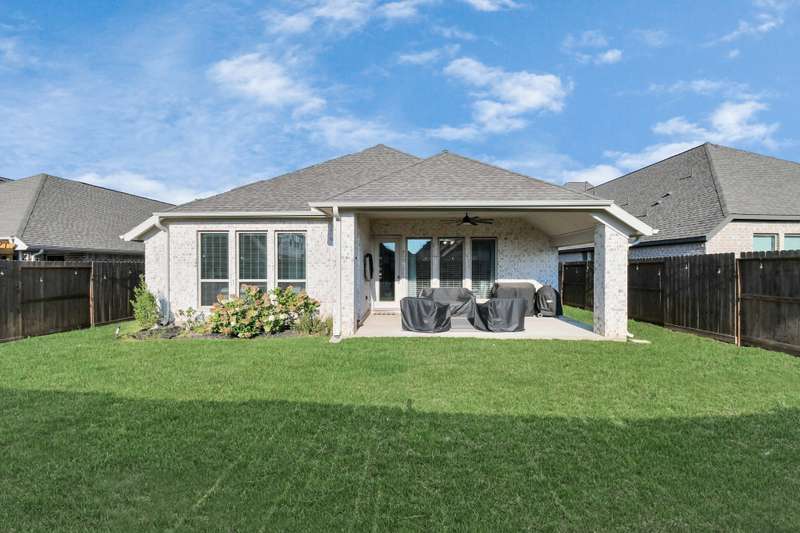 Beautiful one-story home in Candela featuring 4 bedrooms and 3 full baths with an open and spacious layout. Built in 2022, this home offers 2,602 sq. ft. of modern living with a bright kitchen, gas cooktop. The primary suite boasts a large bedroom and spa-like bathroom. Enjoy a cozy gas fireplace, covered patio, and private backyard. Community amenities include a pool, parks, and walking trails. Conveniently located near schools, shopping, dining, and a grocery store just 1.9 miles away in Fort Bend County.