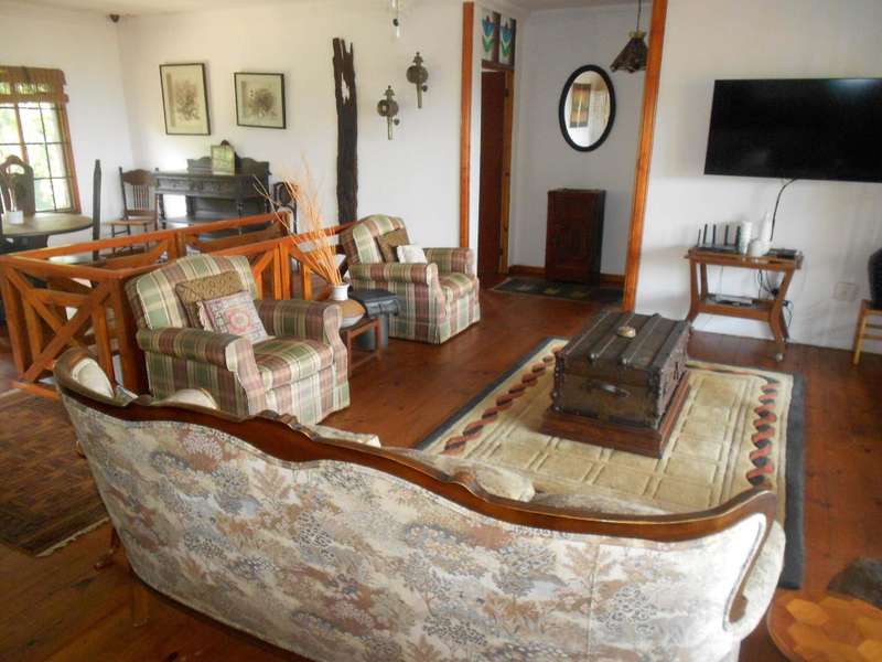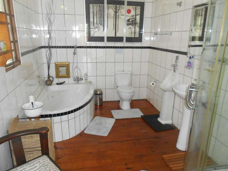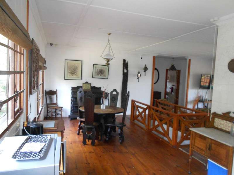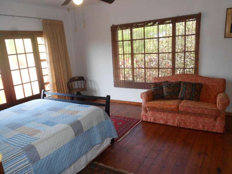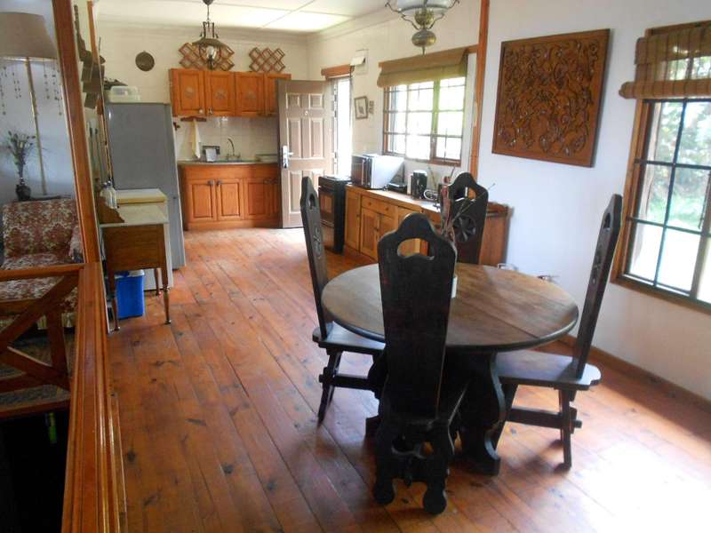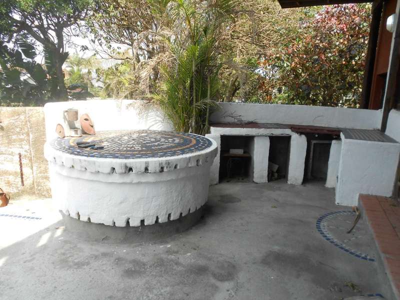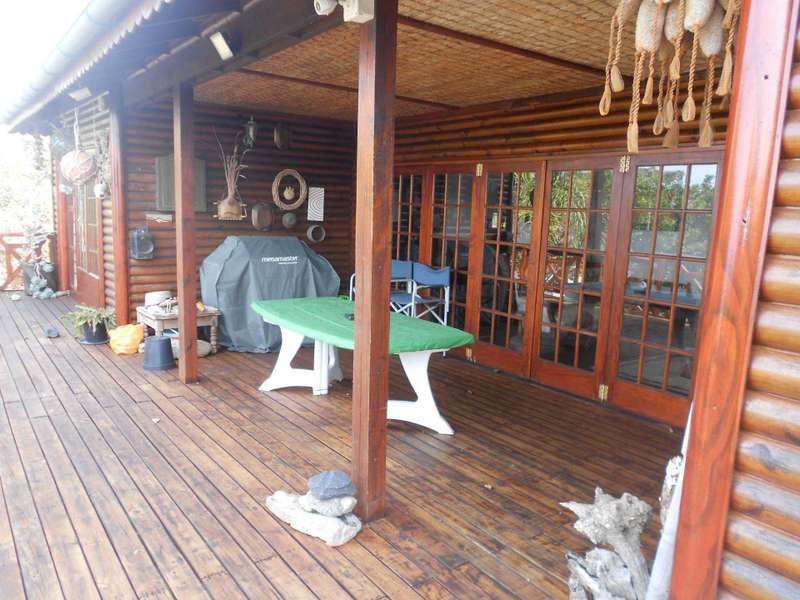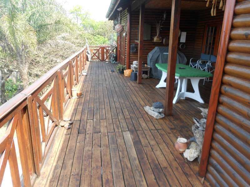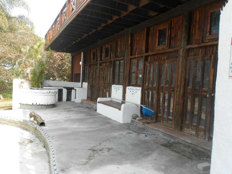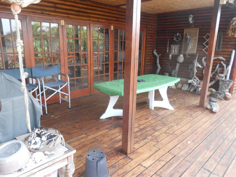 A beautiful rustic farm style house, situated in the heart of Ramsgate South in a sought after area and street, close to the beach. The bottom floor of this double story house is constructed of brick and mortar whereas the top portion is constructed from timber. Downstairs are two large flats, with on-suite bathrooms, a tandem garage, a large workshop and store-room, an entertainment area adjacent to the rock-style pool. Upstairs is the main three bedroom house, with beautiful wooden floors, three bedrooms, a lounge, dining room and kitchen. The main bedroom has a large bathroom and dressing room. The second and thirds bedrooms share a bathroom. The lounge, main bedroom and second bedroom lead onto a beautiful balcony with stunning views of the ocean. There are beautiful stained glass windows located at the entrance and in the main bedroom. The woodwork throughout house is warm and carries the scent of nature. The garden is huge, over 4300m2 with beautiful indigenous trees and shrubs. Two shaded carports and a drive through tandem automated garage. Two 5000L jojo tanks for backup water and an alarm system. This property is located over two adjacent erfs and has entrances from two different streets. This is a unique farm style-antique home with many beautiful attributes and a huge piece of land with many possibilities for additional dwellings. Call me now for an appointment to view,