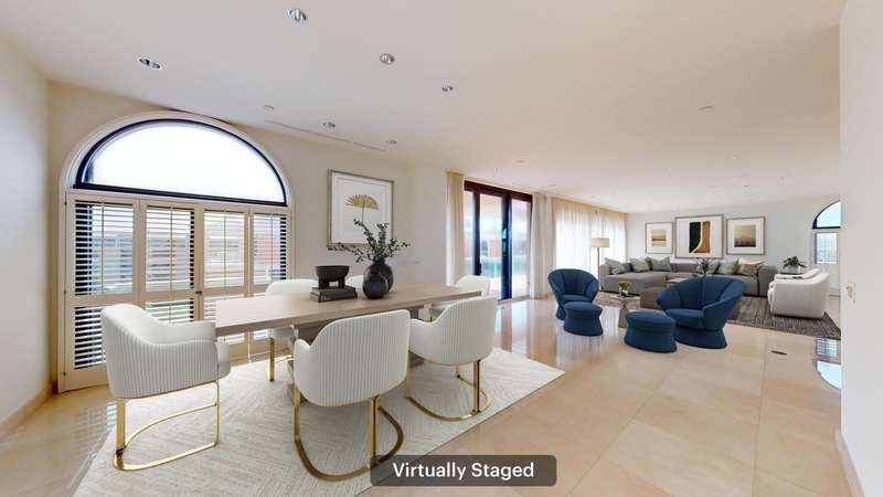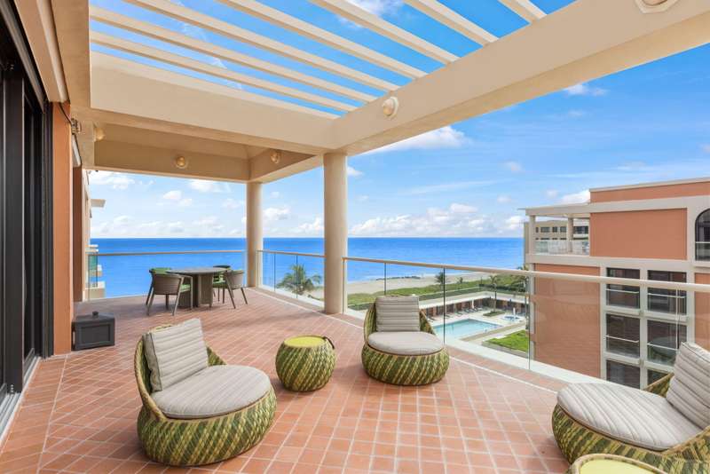 This elegant Palm Beach penthouse overlooks the city skyline, ocean, and The Breakers Hotel. Once owned by many notable socialites, this 3-bedroom, 3-bath residence offers scenic views and unmatched privacy. High ceilings and floor-to-ceiling windows fill the home with natural light, opening onto a covered patio perfect for taking panoramic views of the golf course, city & ocean. The spacious livingroom is lined with multiple windows and adjoins a separate kitchen with an island and a cozy bedroom/office down the hall.The primary suite, located just off the entry, offers expansive, boutique-style closets and a luxurious bath with soaking tub, walk-in shower, and dual vanities. A guest suite next door features its own en suite bath and Juliet balcony overlooking downtown West Palm Beach