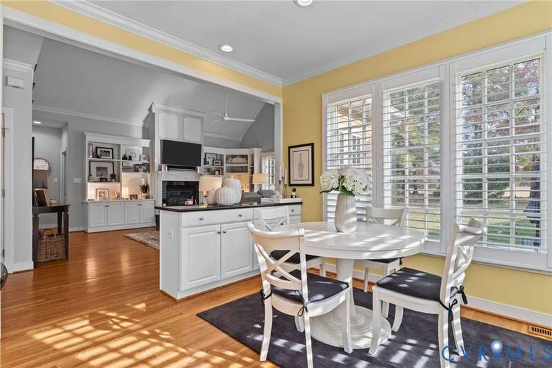 Welcome to this spectacular condominium home in CLUB COMMONS AT WYNDHAM offering fantastic GOLF VIEWS and an elegant blend of comfort and style! Step inside to a grand two-story foyer leading to a formal dining room with bay window, tray ceiling, hardwood floors, and beautiful moldings. The gourmet eat-in kitchen is a chef's delight, featuring granite countertops, stainless steel appliances, center island, pantry, and tile backsplash-all opening seamlessly to the family room with soaring vaulted ceiling, custom built-ins, gas fireplace, and gleaming hardwoods. The first-floor primary suite is your private retreat with a vaulted ceiling, custom walk-in closet, linen closet, and a luxurious en-suite bath with granite dual vanity, jetted tub, and separate shower. A convenient laundry room and half bath complete the main level. Upstairs, you'll find three spacious bedrooms, a hall bath, and a bonus room-perfect for a home office, reading nook, or gym-plus walk-in storage. Enjoy outdoor living on the private back patio, and take advantage of the 2-car finished garage, aggregate drive and walkway. Recent upgrades include: Security Door in Kitchen (2024), Hot Water Heater & Garage Door Motor (2023), Windows (Living Room 2023, Kitchen 2021), Microwave & gas stove (2022), 2nd Level HVAC (2020), Roof & 1st Level HVAC (2018), Interior painting (2017), Storm Door, Refrigerator & Dishwasher (2017), Plantation shutters and more. Community amenities include exterior and yard maintenance, trash and snow removal, reserves, clubhouse, pool, tennis & pickleball courts, fitness center, parks, and more! Plus, the Dominion Club, a premier private country club in the heart of Wyndham, offers golf and social memberships. Experience move-in ready, low-maintenance luxury living in one of Wyndham's most desirable neighborhoods!