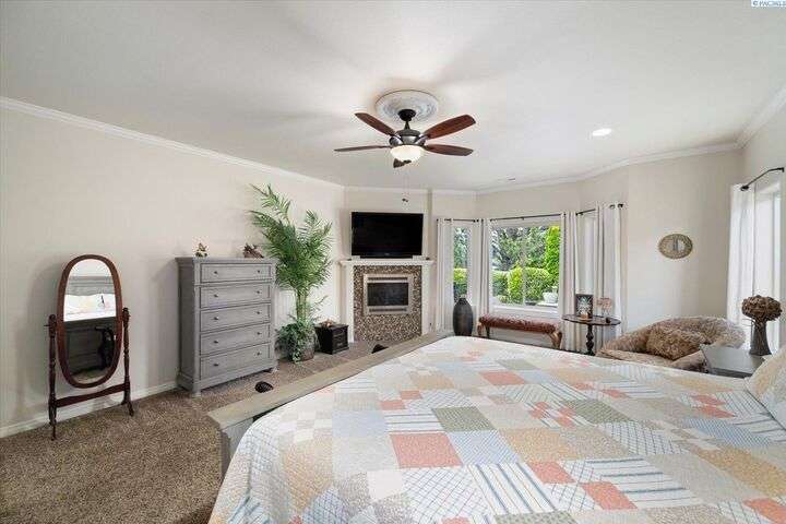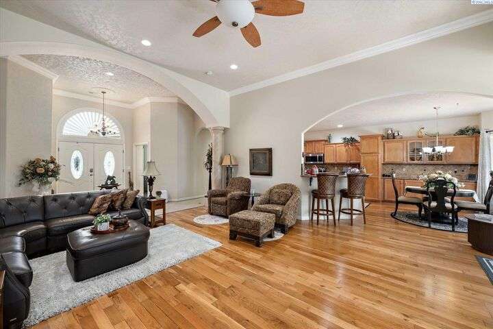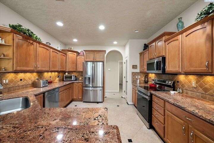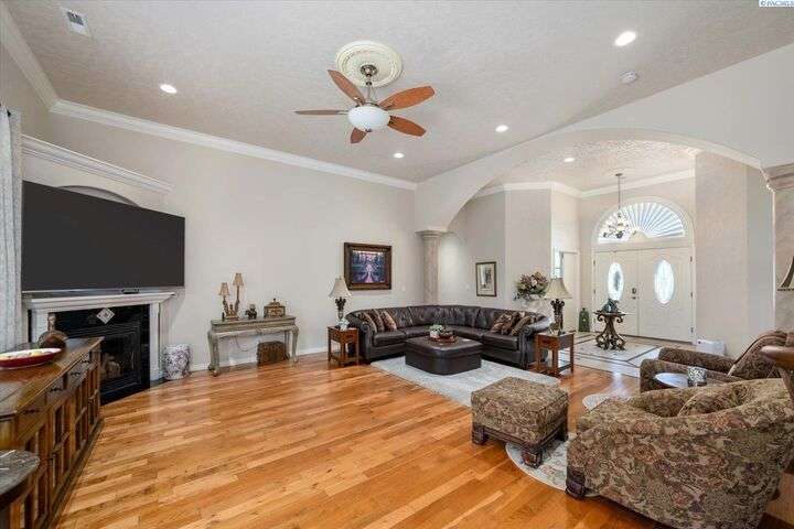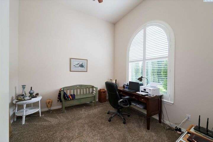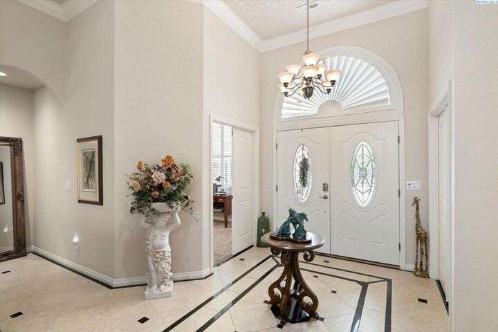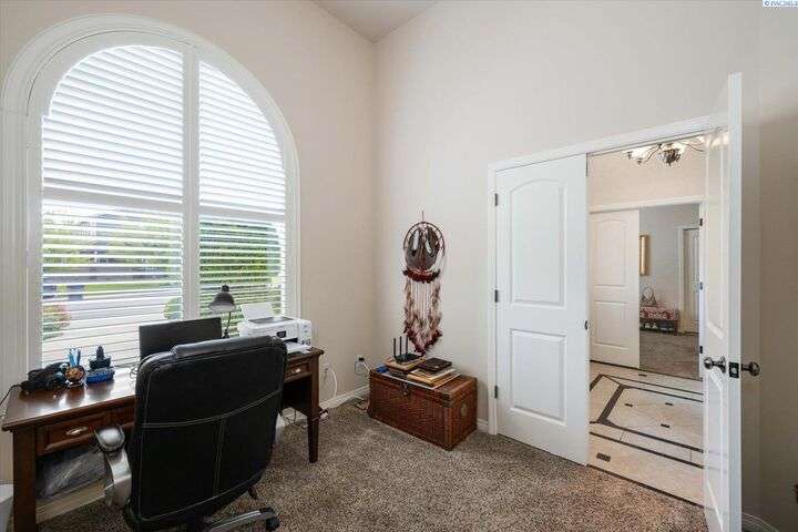 MLS# 284759 Welcome to 4222 W 32nd Ave, an elegant Tuscan-style home located in the highly desirable Canyon Lakes golf course community. This beautifully maintained property offers the perfect blend of upscale design and everyday comfort. With 4 bedrooms, a dedicated office, and 2 full bathrooms, the home features soaring 12-foot ceilings, stunning architectural pillars, and arched entries that create a grand and inviting atmosphere from the moment you walk in.Fresh paint throughout, new blinds , and a combination of rich hardwood, tile, and plush carpet give the home a polished, move-in-ready feel. The spacious living areas include two cozy fireplaces, one in the main living room and another in the luxurious primary suite. The primary bathroom is a true retreat with a large soaker jetted tub, dual vanities, and two generously sized walk-in closets.Outside, enjoy a private backyard oasis with a soothing waterfall feature, fire pit, and a large covered patio ideal for entertaining or relaxing in any season. The fully landscaped yard is both beautiful and low-maintenance. A 3-car garage provides ample space for storage and parking, while the home’s location offers quick access to shopping, dining, and major freeways.Schedule your private tour today!