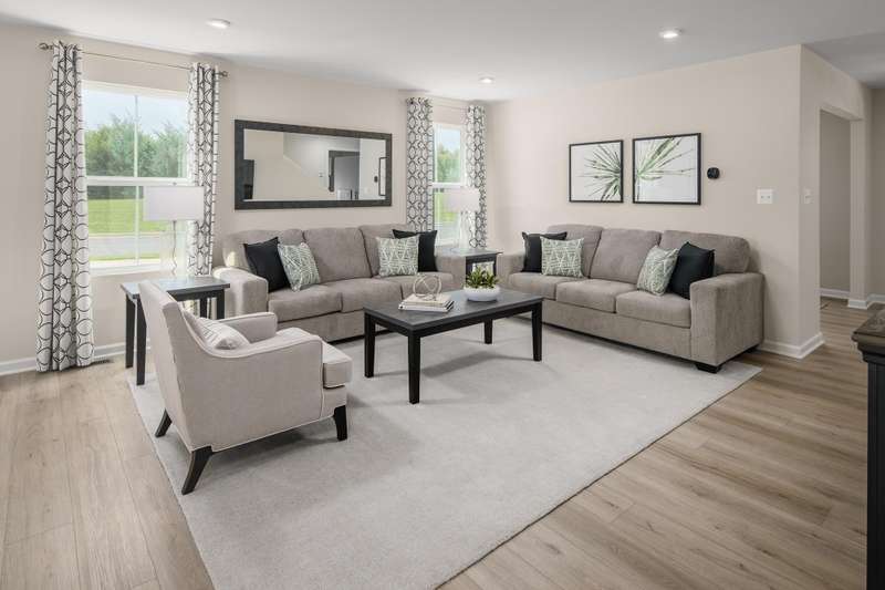 Welcome to Myers Corner Single-Family in Fishersville! Offering single-family homes with included walkout basements on picturesque, 1/3-acre homesites. Quick access to I-64 & I-81. Welcome home to The Hazel. This 2-car garage single-family home is highlighted by a large great room adjoining a gourmet kitchen with an island overlooking the dining area. Just off the garage, a first-floor guest suite means you don't have to sacrifice your flex room at the front of the home, which makes an ideal office or play space. Upstairs, three bedrooms feature a walk-in closet, share a hall bath, and lead to a 2nd floor loft. Your luxury owner's suite includes a dual-vanity bath and two walk-in closets. Finish the walkout basement for even more space. You are going to love everything about The Hazel. Hurry in and make sure to claim your $25,000 in savings until the end of September! Schedule your visit today.
