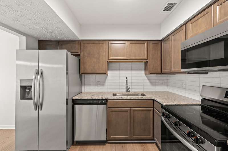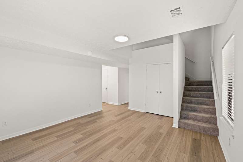 Move-in ready and recently renovated in Century Hills! This home offers fresh flooring throughout, including durable luxury vinyl plank and plush carpet. The main level features a spacious living room with backyard access, an updated kitchen with new cabinets, tile backsplash, stainless steel appliances, and a dining area. A convenient laundry space and refreshed half bath complete the first floor. Upstairs, two large bedrooms with vaulted ceilings share an updated full bath. Outside, you'll find a one-car carport and extra storage. Conveniently located near shopping, dining, and everyday amenities.