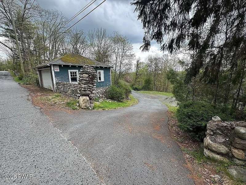 A Rare Storybook Escape with Endless Potential Calling all visionaries, investors, and dreamers--welcome to the Treehouse Estate, a one-of-a-kind property carved into the side of a mountain and tucked away on nearly 3 acres of serene woodland. This enchanting estate invites you to restore its timeless charm and unlock its true potential as a full-time residence, vacation home, or lucrative rental retreat. From the moment you arrive, the property feels like something out of a fairytale. A long stone wall frames the driveway, guiding you past a two-car detached garage and into the heart of the estate. Stone walkways and weathered benches dot the grounds, offering peaceful resting spots and a whimsical, almost Alice in Wonderland feel. Inside, you're greeted by the impressive stone backside of a grand fireplace--a true centerpiece that anchors the home's warm, rustic character. Step further and find yourself in a sunroom-like living area flooded with natural light, complete with its own fireplace, perfect for cozy gatherings. The eat-in kitchen, featuring updated appliances, opens through French doors onto a porch overlooking the woods--a tranquil space for morning coffee or evening relaxation. What sets this home apart are its flexible living spaces: A one-bedroom apartment with a private wraparound porch and separate entrance. A studio apartment with its own entrance--ideal for guests, extended family, or rental income. The ''Boat House,'' a spacious bonus room accessed via a breezeway, complete with its own bathroom. Imagine transforming this space into a stunning spa-like retreat with a hot tub or sauna. Outside, a charming (though overgrown) staircase seems to disappear into the woods, offering even more potential for landscaping or secret garden pathways. While the home does need updates and restoration to bring it back to its full glory, its unique features, privacy, and versatile layout make it an extraordinary canvas for anyone with creative vision.