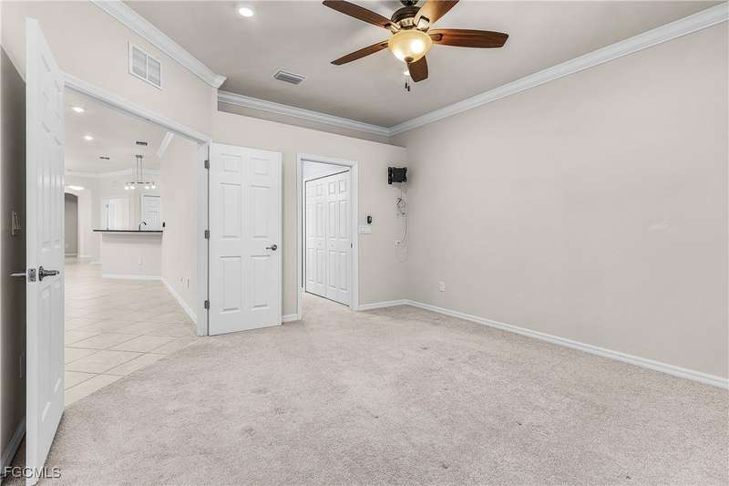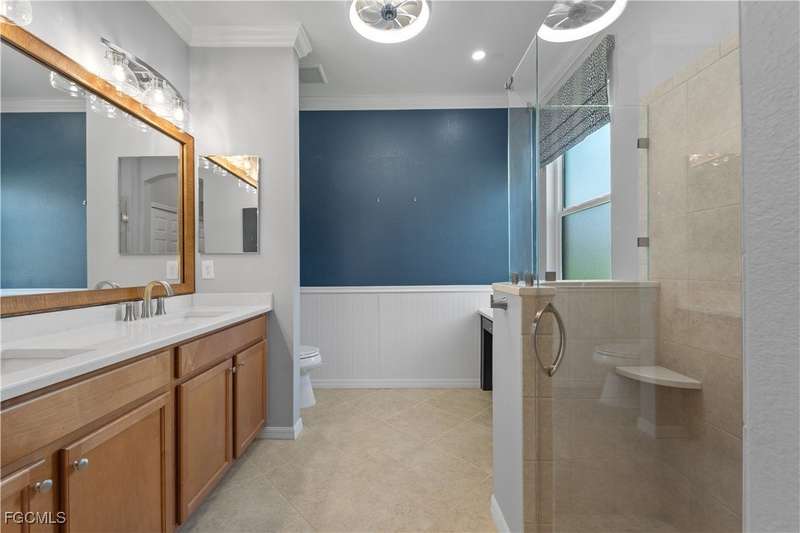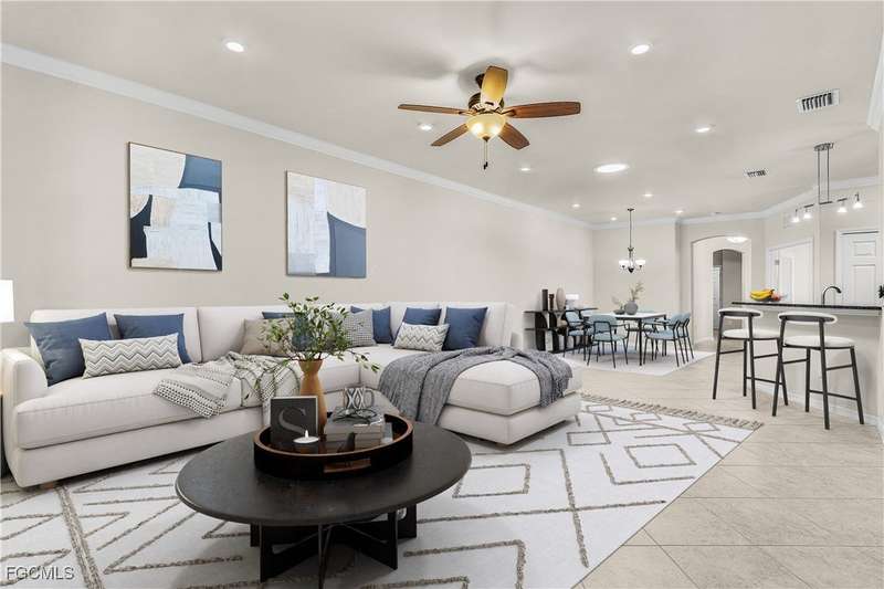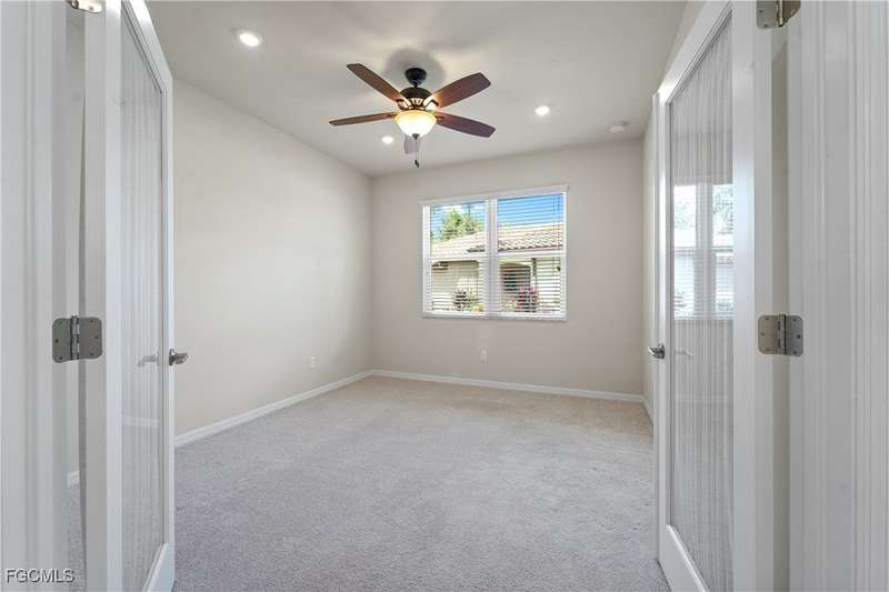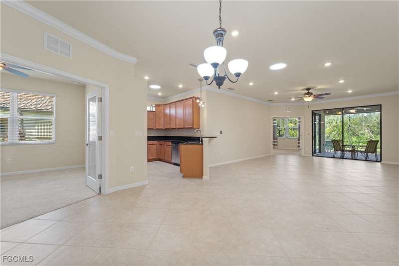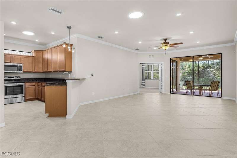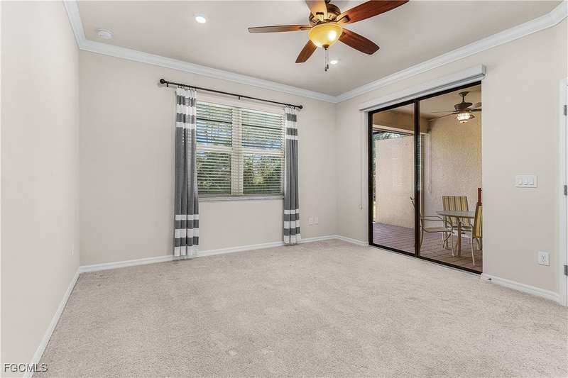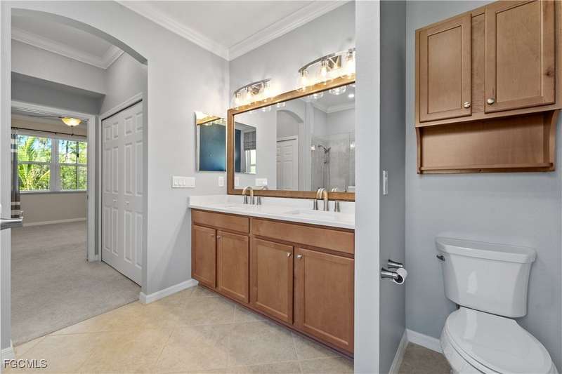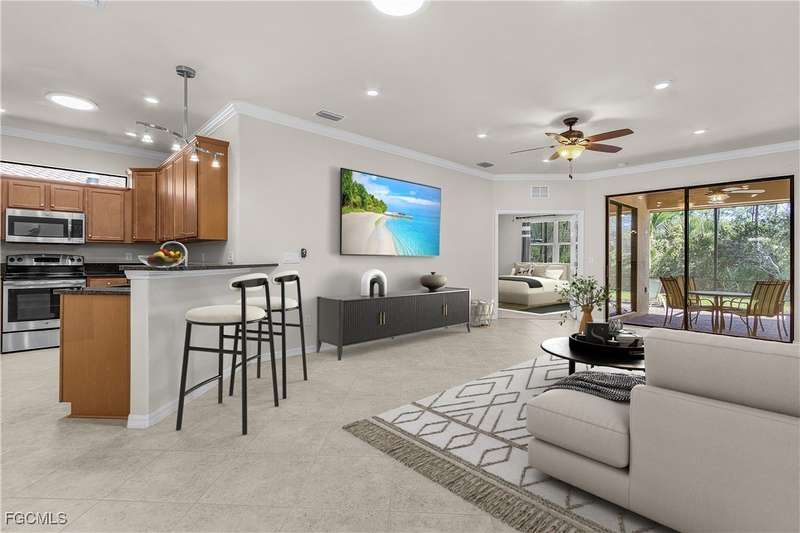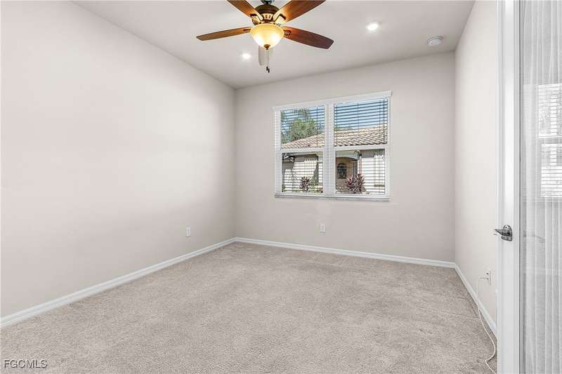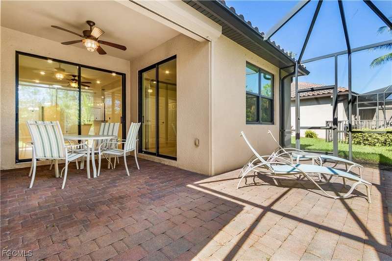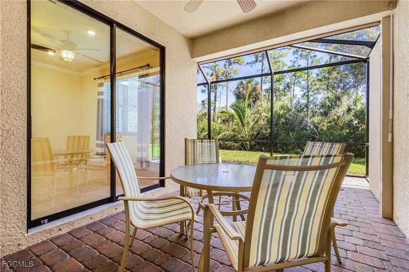 Welcome to 9095 Water Tupelo Rd, an upgraded villa in the desirable gated community of Reflection Isles in Fort Myers. From the beveled-glass front door and lush landscaping to the refined interior details, this home exudes pride of ownership and modern comfort. (Agents! See notes on elevation levels - big plus!) The home features diagonal tile throughout, solar tubes that fill the space with natural light, and soft neutral tones complemented by crown molding, upgraded lighting, and premium rocker switches. The kitchen offers granite countertops, stainless-steel appliances, and a breakfast bar ideal for entertaining, while both bathrooms showcase quartz counters, custom framed mirrors, Moen fixtures, comfort-height toilets, and a seamless glass shower in the primary suite with the garden tub removed for an updated look. Thoughtful extras include upper laundry cabinetry, an overhead garage storage rack, a full-house water-filtration system, a garage screen with walk-through door, a 2024 water heater, a newer A/C, and energy-efficient high-impact windows providing both safety and savings. Step out to the screened lanai with electric storm shade and enjoy private preserve views-the perfect place to unwind or entertain with peace of mind. Reflection Isles offers resort-style living with a community pool and spa, fitness center, clubhouse, tennis and pickleball courts, basketball, playground, and organized activities for an active social atmosphere. Ideally located near I-75, Gulf Coast Town Center, Bell Tower Shops, FGCU, and the Southwest Florida International Airport, you'll also be just minutes from spring-training ballparks for the Red Sox and Twins, countless dining options, and white-sand Gulf beaches. Combining quality craftsmanship, low-maintenance living, and a prime location, this home delivers the Florida lifestyle at its best-move-in ready, beautifully maintained, and waiting for you to call it home.