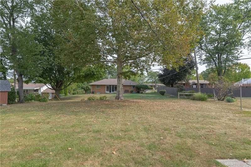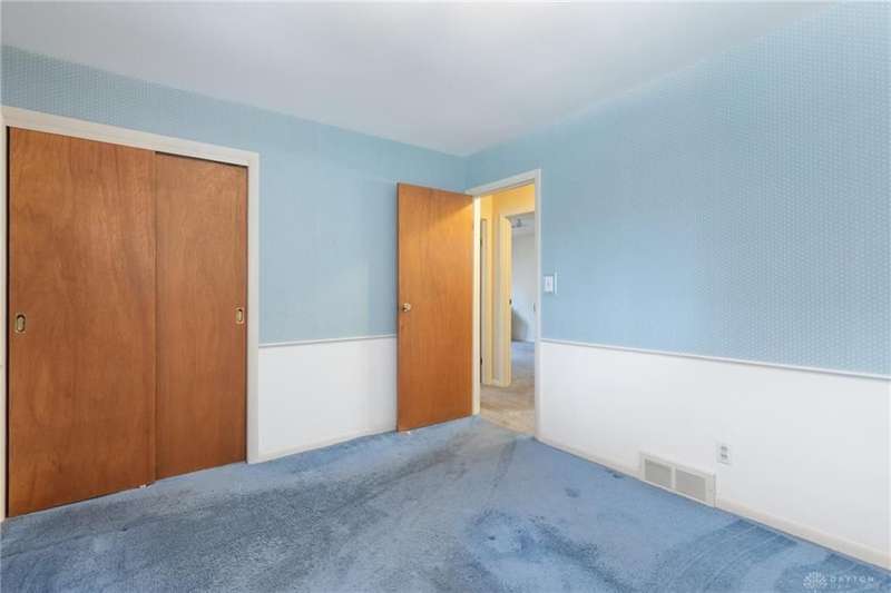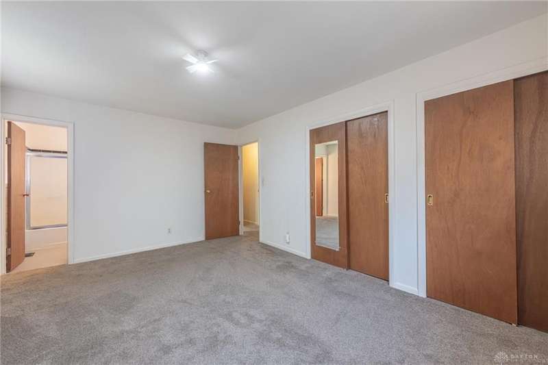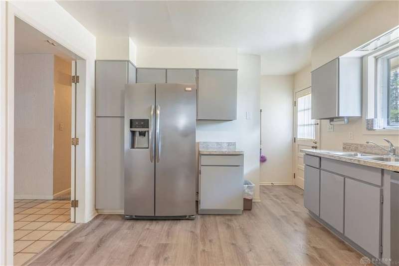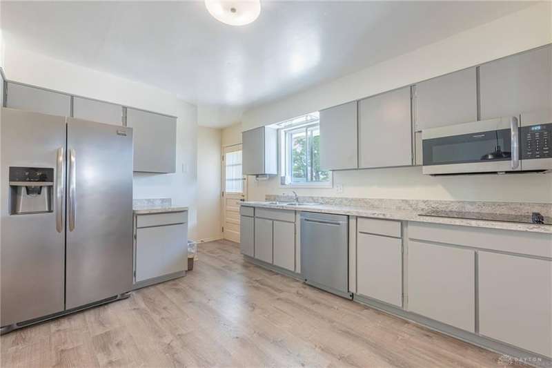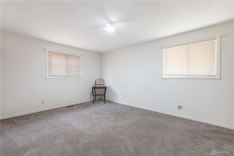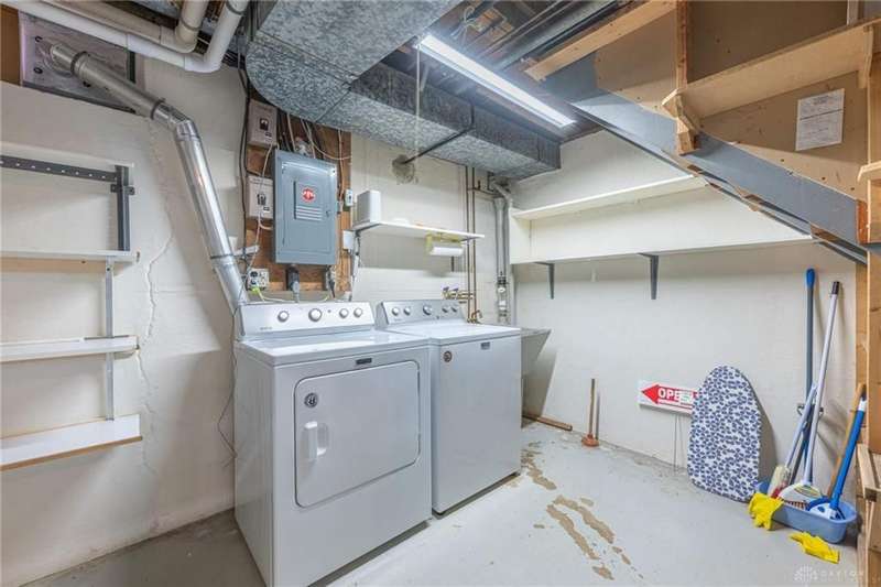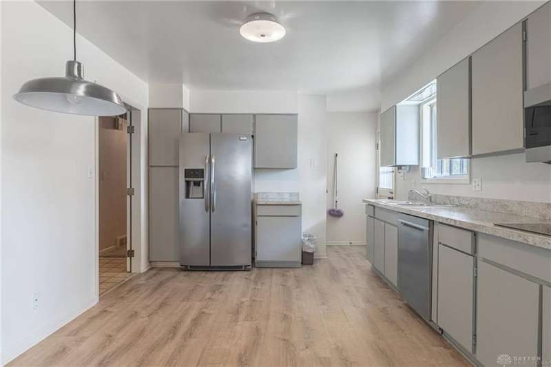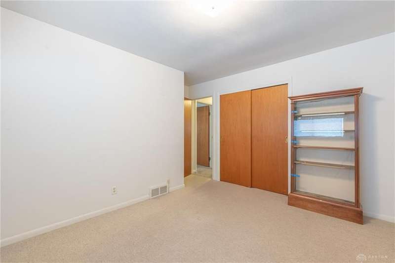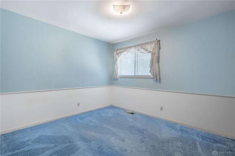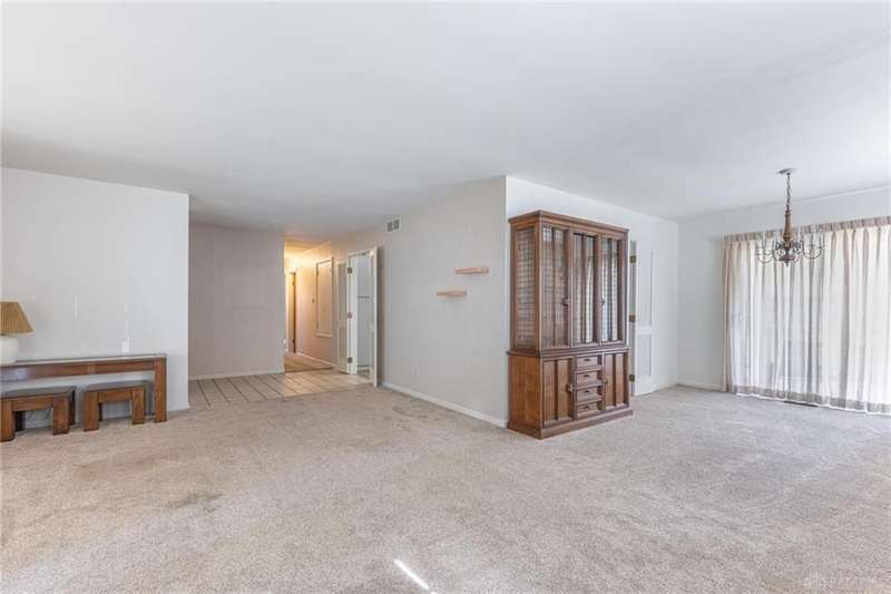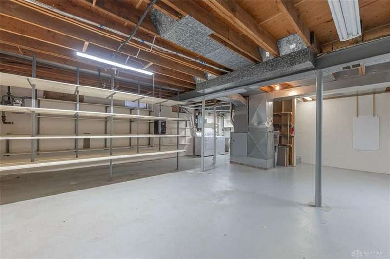 Step into this beautifully maintained ranch offering an abundance of natural light throughout. The spacious living room features three elegant bay windows with classic shutters, creating a warm and inviting atmosphere. The dining room opens through sliding glass doors to a lovely patio area—perfect for outdoor dining and entertaining. Enjoy a beautifully landscaped backyard adorned with established perennials, plus the convenience of attached storage sheds for all your gardening and outdoor needs. The eat-in kitchen showcases modern gray cabinetry, stainless steel appliances, and stylish open display shelving—ideal for both cooking and entertaining. Curb appeal abounds with attractive canvas awnings highlighting the home's welcoming front, complemented by a newly installed sidewalk leading to the front door. The garage includes built-in shelving and a workbench, perfect for projects and extra storage. Downstairs, the expansive basement offers ample shelving and a flexible open layout—ideal for a game room, home theater, or entertainment space. Recent Updates for Peace of Mind: New furnace installed in November 2022. Hot water heater replaced in February 2021. Roof replaced in April 2012. Located in a sought-after neighborhood in Kettering close to shopping, dining, and everyday conveniences, this move-in ready home is a must-see!