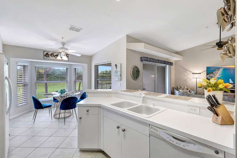 Full Golf and Amenity Membership available for renters! Come and spend your time at this professionally-decorated golf course condo in Cypress Woods. This second-floor condo is fully equipped for your stay and is available for 30-day minimum rentals: December 2024, January 2025, February 2025, March 2025, April 2025, May 2025, June 2025, July 2025, August 2025, September 2025, October 2025, November 2025, December 2025. Cypress Woods Golf and Country Club boasts an 18-hole Gordon Lewis-designed golf course, practice facility and putting green, 8 pickleball courts, bocce court, fitness center w/ group exercise classes, lap pool, resort pool and spa, bar and grill room, full service restaurant, outdoor dining, club events and more!