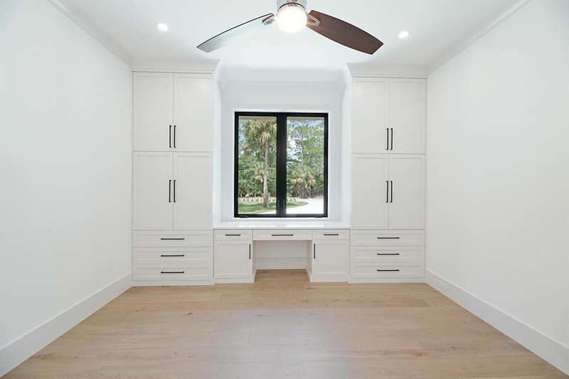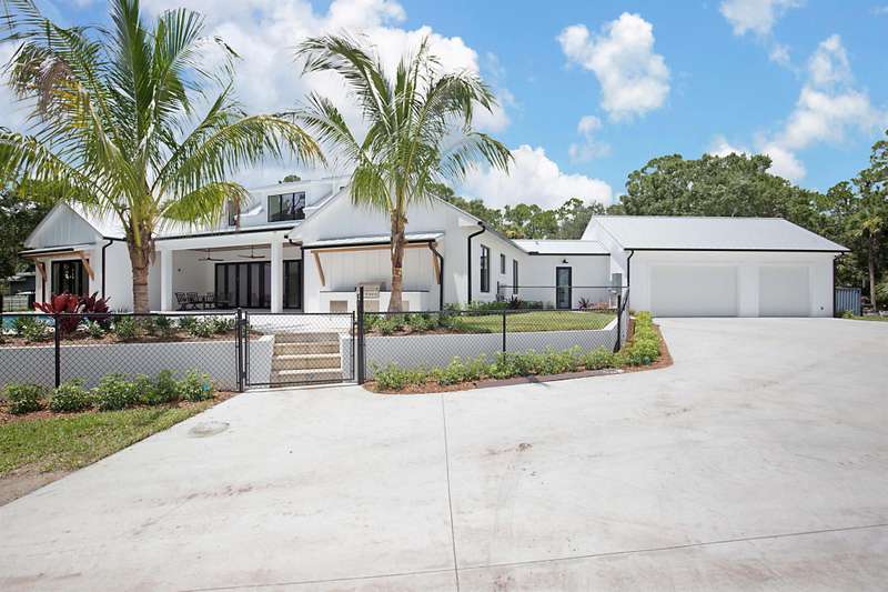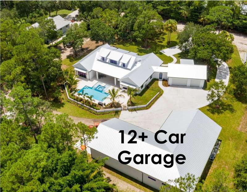 Crafted as the personal residence of a renowned custom builder, this exceptional one-story Coastal Farmhouse blends timeless design with modern functionality on a breathtaking 2-acre lot, surrounded by majestic old-growth oaks and palms on the north side of Indiantown Road.Spanning 3,500 square feet of living space, this 4-bedroom, 4.1-bathroom and a spacious 3 car garage home offers soaring 22-foot ceilings with designer beams, an expansive open-concept layout, and a seamless flow between indoor and outdoor living. In addition, the property includes a separate, air-conditioned ''man cave'' garage--an impressive structure with soaring 20-foot ceilings, capable of accommodating more than 20 vehicles. Designed with functionality and flexibility in mind, it features four oversized