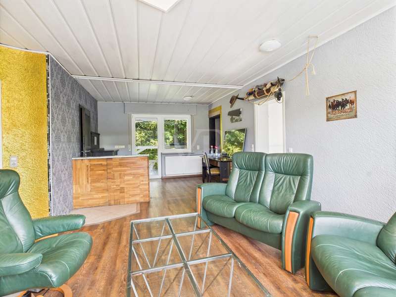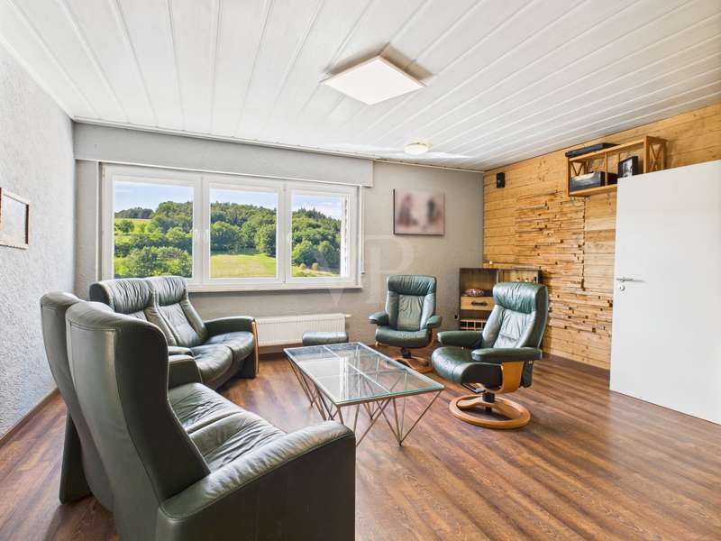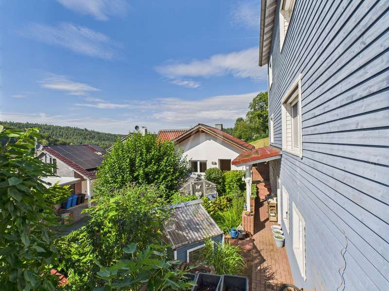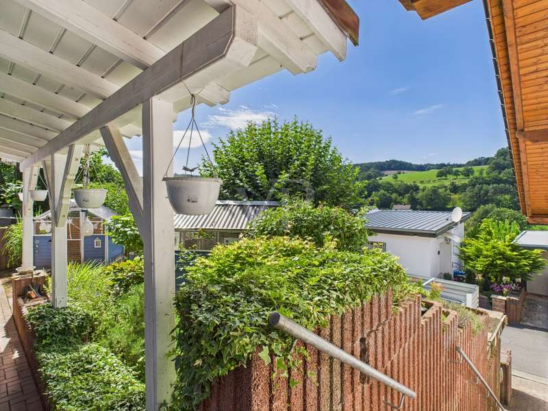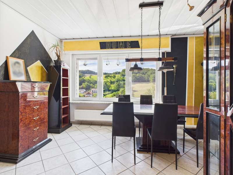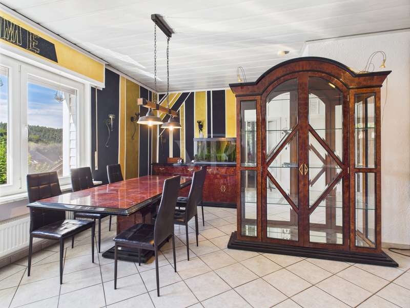 This well-kept detached house in a quiet and natural residential area is modern and friendly. The generously proportioned and light-flooded rooms offer enough space for a young family on a living area of approx. 175 sqm. The property is located in a quiet residential area on the outskirts of the village and offers spectacular views of the natural surroundings. The house has a well thought-out room layout and boasts numerous modernizations that have been carried out over the past two decades. A comprehensive core renovation was carried out around 20 years ago. The electrics, water pipes, roof, room doors, radiators and floor coverings were renewed - an important step for the current condition of the house. Further renovations have also been carried out over the years, such as the replacement of all windows and a new bathroom on the ground floor and second floor. In 2012, high-quality external insulation with rock wool was installed and the façade was re-clad and repainted. The boiler was replaced in 2017. The first floor welcomes you with a bright hallway and offers a modern bathroom with bathtub and separate shower. Another room is suitable as a children's or guest room. The open kitchen is directly adjacent to the spacious living/dining area. A very spacious living room with a fantastic view of the Odenwald awaits you on the upper floor. The master bedroom and another children's room are bright and friendly. The view from each of these windows is breathtaking - here you will find restful sleep and wake up to nature in the morning! A utility room and a modern bathroom with a bathtub complete this level. The outdoor area is very idyllic and lovingly laid out and offers a variety of uses. The three large terraces create ideal conditions for relaxing hours outdoors. One highlight is the pool with modern salt water technology and heat pump, which was installed in 2022 and provides cooling, especially on warm days. The house is heated by central heating. There is a wood gasifier in the basement, whose water-bearing system supplies the entire house with heat via two buffer tanks. There is also the option of replacing the wood boiler with a pellet boiler. There are also connections for fireplaces or pellet stoves on both floors, offering additional flexibility and convenience. Another highlight is the light-flooded studio, which was added in 2009. Excellent space to combine living and working directly. In the lower area of the extension there are 2 spacious garages and a small workshop. The two garages, a carport and 2 outdoor parking spaces are available for your vehicles. Are you interested in finding out more about this promising investment with lots of potential and charm? The von Poll Team Aschaffenburg looks forward to hearing from you!