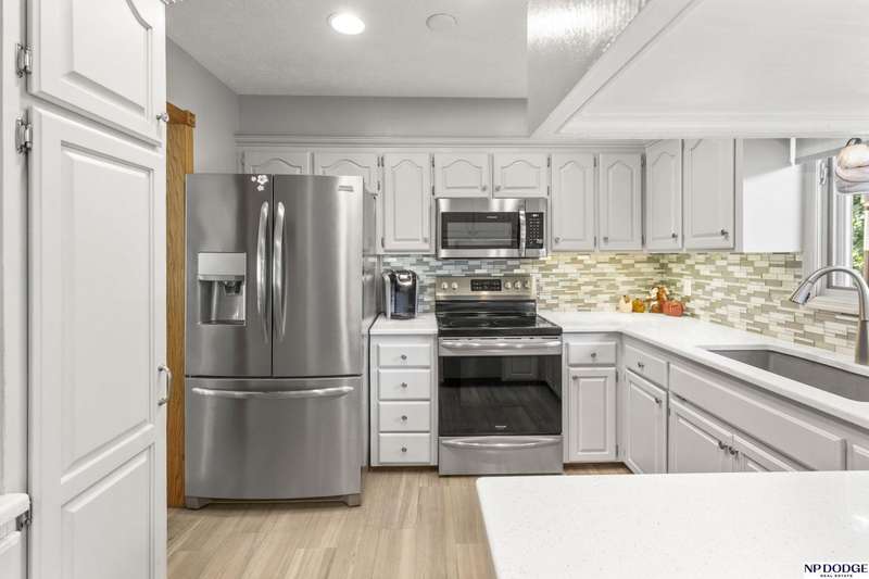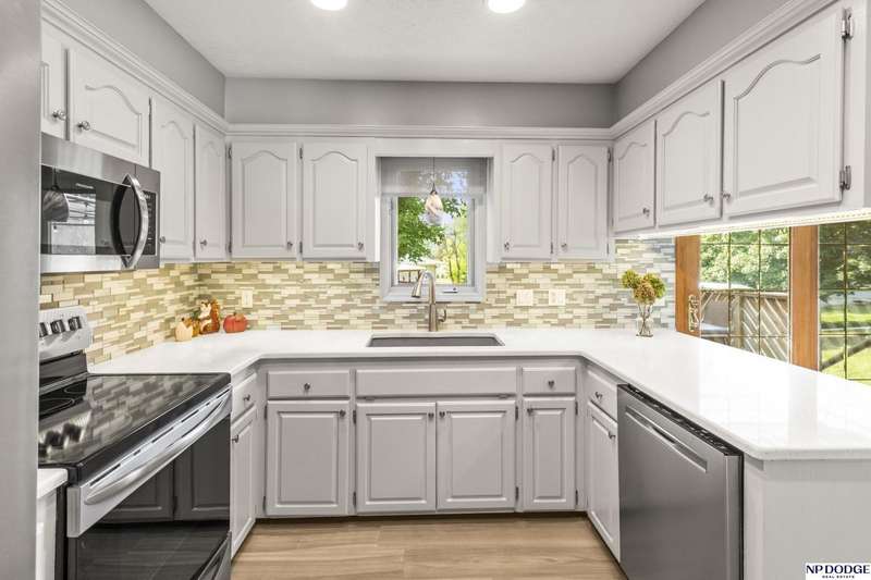 Contract Pending. Fantastic Updated 3 BR 2.5 BA Home with a 2 car garage. This home boasts a beautifully updated eat-in kitchen with quartz counters, tiled backsplash, SS range, dishwasher & microwave & abundant white cabinetry. Newer LVP Flooring in the Kitchen, Living Room & main floor baths. Inviting LR with a bow window that lets in lots of natural light. This home had an addition which created a spacious primary suite with a huge walk-in closet. It also has a 3/4 Primary Bath. Main Floor also includes 2 additional bedrooms & full main bath with a shower. The nicely finished lower level is perfect for entertaining with a cozy family room complete with a gas fireplace, bar area & built-in cabinets & shelving. There is a half bath in the laundry area & additional space for an office & more storage. Relax on the wooden deck overlooking a fenced back yard & a 12 x 12 Storage Shed. Additional updates include new roof, gutters & downspouts in 2024. Newer driveway. AMA