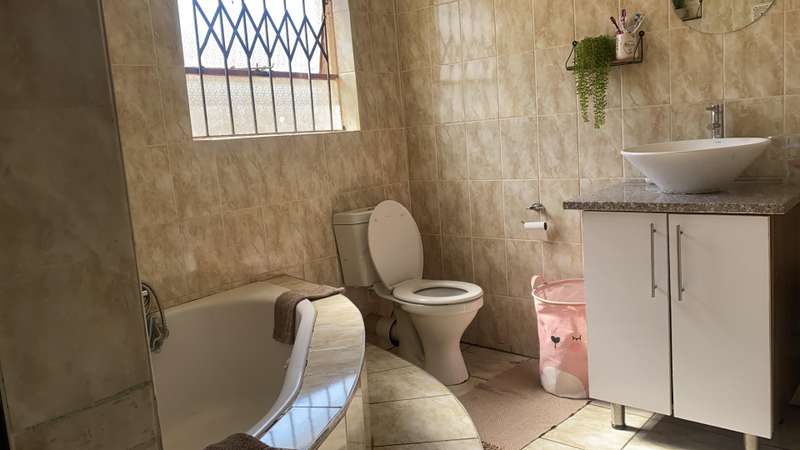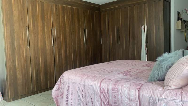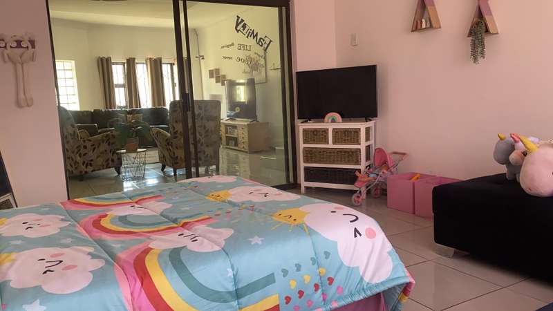 This is a 3-bedroom house with 3 garages. It has a big furnished kitchen that comes with a stove and has a study room. There's also a sliding door providing access to the living room. The Master bedroom comes with its own bathroom that has a toilet and a bathtub.