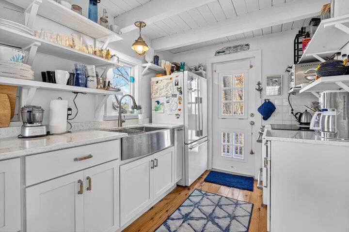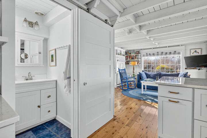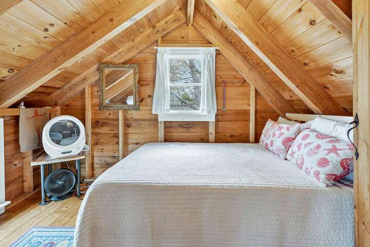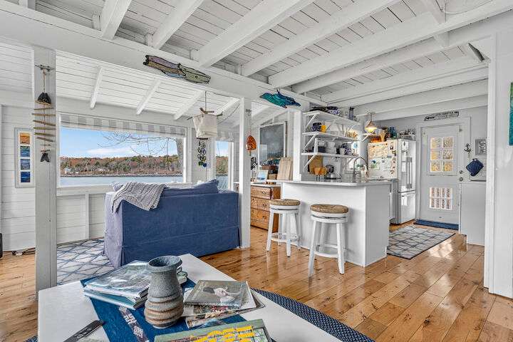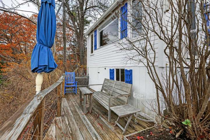 BLUE SHUTTER A cottage with personality plus. Formerly an ice cream store this island Landmark was transformed into a small but very functional living space. Renovated in the early 2000's it has just gotten better with each successive owner. Featuring an open floor design with galley kitchen and breakfast counter, dining area, living room, bath and 2 bedrooms upstairs. Surrounded by beautiful gardens and a fenced-in yard. Enjoy your family and friends while lounging in the side yard watching the shore birds and boats slip thru the passage. Better yet, a stairwell to the beach. Spend the day playing on the beach, taking a dip, going out for a paddle or simply sitting in your beach chair reading a book or taking a snooze. This waterfront gem has breathtaking water views of the Diamond Islands, Diamond Passage, Casco Bay and the Portland skyline with stunning sunsets setting over the harbor. The TEIA sailing/tennis club is just down the shore and you are also close to all island services. It really does not get any better than this. A rare opportunity to be the caretaker of Blue Shutter.