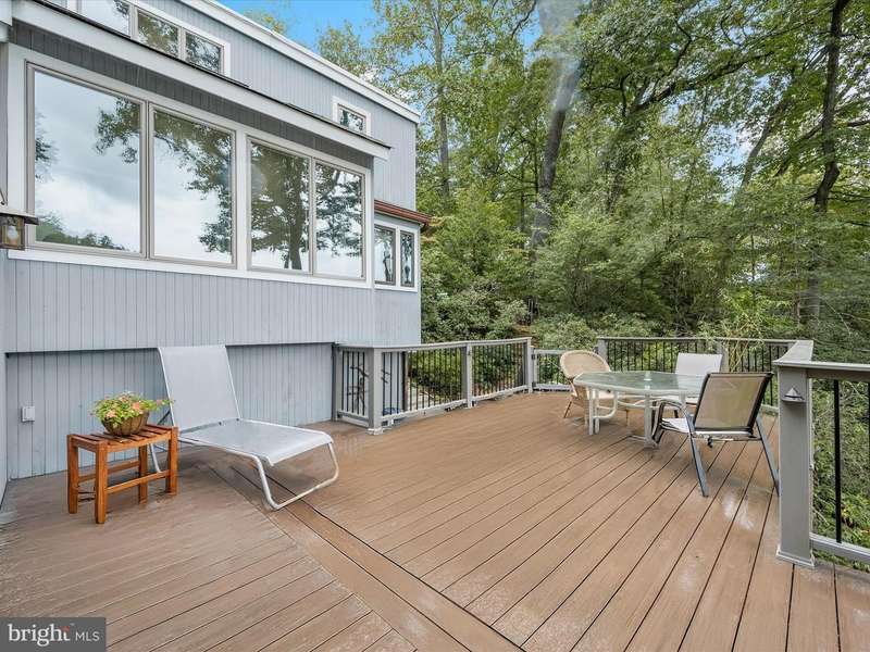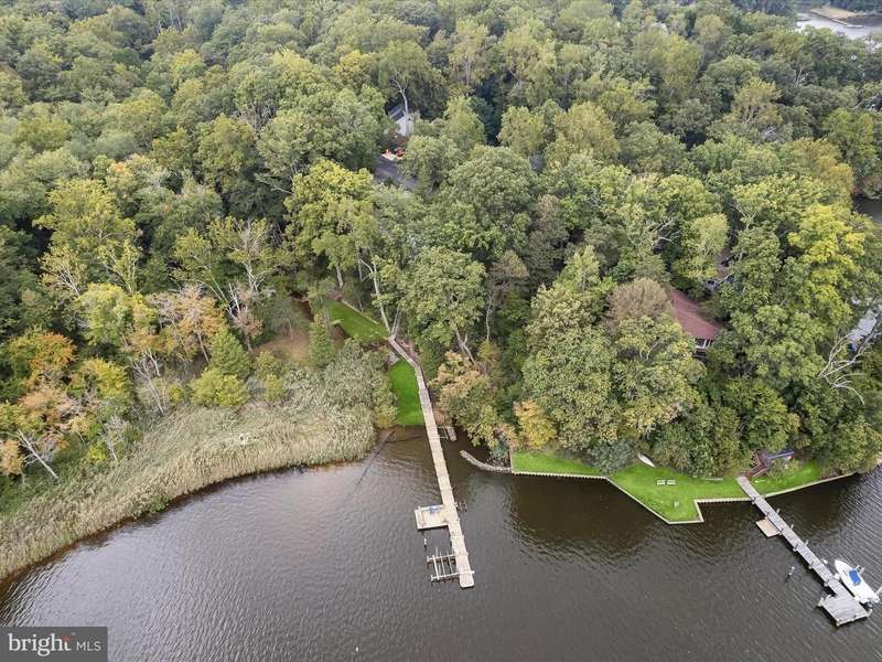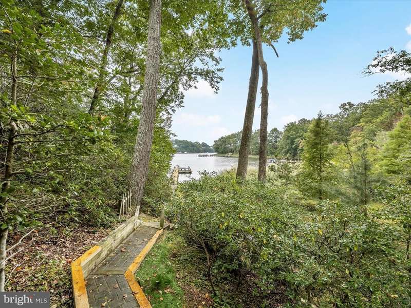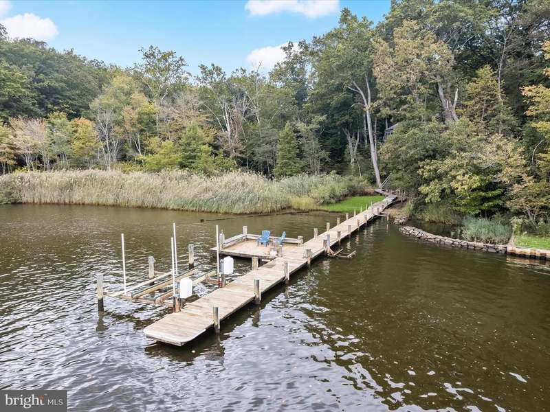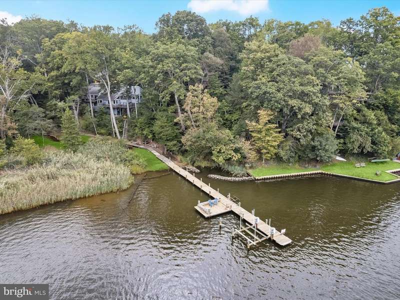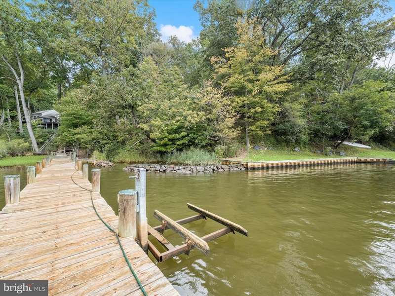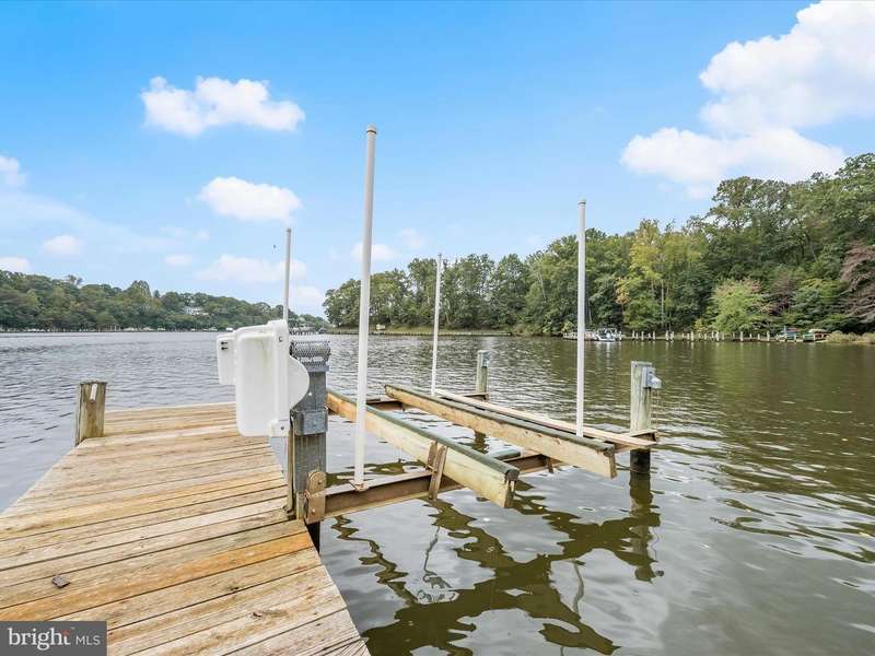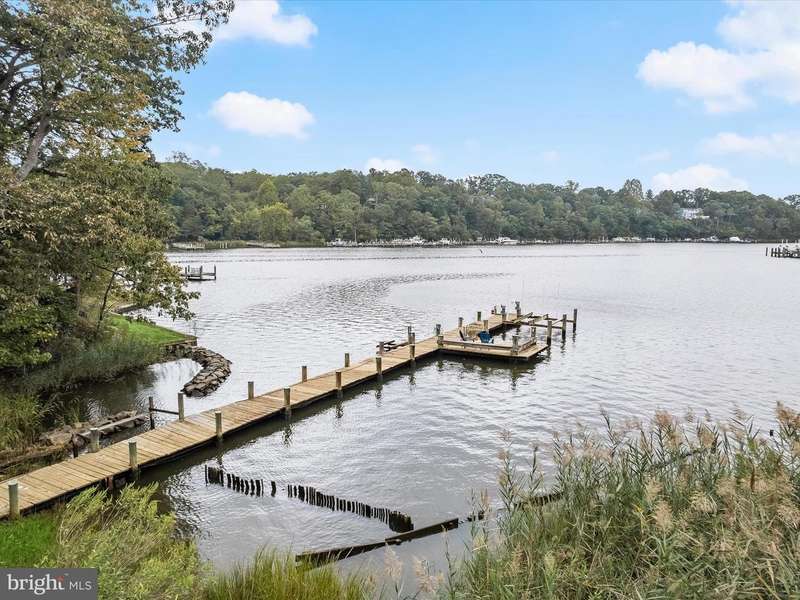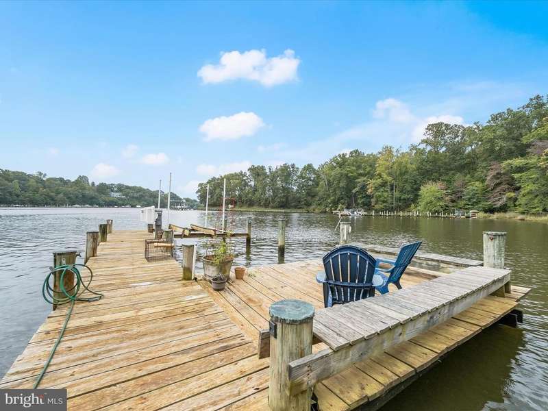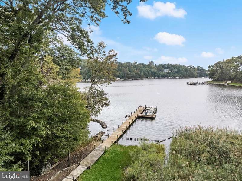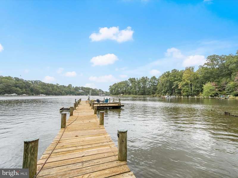Waterfront living reaches a new level of sophistication in this contemporary split-level home gracefully set on Broad Creek off South River. Bathed in natural light from soaring vaulted ceilings and walls of expansive windows, the residence effortlessly combines architectural elegance with thoughtful design, offering an atmosphere that is both warm and inspiring. Every space flows seamlessly, inviting you to linger and enjoy the serene surroundings. The property's private pier and dock provide direct South River access with a lounge area perfect for soaking in sunsets or watching boats drift along the water. With 5 ft mean low water, it's ideal for boating, paddling, or simply relaxing in a quiet, scenic retreat. Nestled on 1.08 acres at the end of a peaceful cul-de-sac, the home enjoys unmatched privacy across two combined lots. Wooded surroundings, stone hardscaping, a gently meandering stream, and two charming footbridges create a secluded sanctuary where bird songs accompany daily life. Despite the tranquility, the location remains convenient for commuters. Inside, the kitchen and dining addition is a showstopping centerpiece, crowned with a cathedral ceiling, angled clerestory windows, and skylights that flood the space with sunlight. A sliding glass door opens to the deck with expansive water views, extending the living space outdoors. The chef's kitchen features granite counters, premium stainless steel appliances, and a central island with a five-burner GE Monogram gas cooktop and a downdraft fan. The adjoining dining area, lined with windows, creates an inviting setting for gatherings or family meals, while an overlook to the living room below maintains an open, connected flow. On the entry level, the primary suite occupies its own wing, a serene retreat featuring a sunroom with three walls of windows framing the peaceful waterfront setting, a study with built-in bookcases, and a walk-in closet with custom built-ins. The en-suite bath harmonizes luxury and nature, a deep soaking tub, and a bath with tile throughout, capturing a serene, nature-inspired aesthetic. A powder room and a well-placed laundry area complete this level. Just a few steps down from the foyer, the expansive living room unfolds beneath a vaulted, wood-planked ceiling, anchored by a cozy wood-burning stove. Windows along multiple walls frame glimpses of the surrounding scenery, while a sliding glass door opens to the Trex deck, where serene views of the meandering stream, sparkling Broad Creek, and surrounding woods create a captivating backdrop for gatherings both intimate and grand. The first lower level offers a bedroom with a shimmering water view, a full bath, and a versatile home office leading to a workshop with a workbench and exterior access. A few steps further down, a second lower-level suite provides privacy and comfort, complete with a sitting area with built-ins, an attached full bath, and an additional bedroom, perfect for guests or extended family stays. Outdoors, the home continues to impress with multiple decks, a patio tucked beneath the main deck, and built-in storage sheds. A double loop circular driveway provides ample parking, while mature landscaping enhances beauty and privacy. Thoughtful updates ensure modern comfort and peace of mind, including zoned HVAC, a roof replaced in 2016, new front entry and stairs in 2024, and recent replacements of the air conditioning in the kitchen wing, washer, dryer, and dishwasher. Blending architectural brilliance, luxurious amenities, and a breathtaking waterfront setting, this South River home offers a lifestyle defined by elegance, serenity, and unparalleled natural beauty, a rare retreat that is at once private, inspiring, and timeless.
