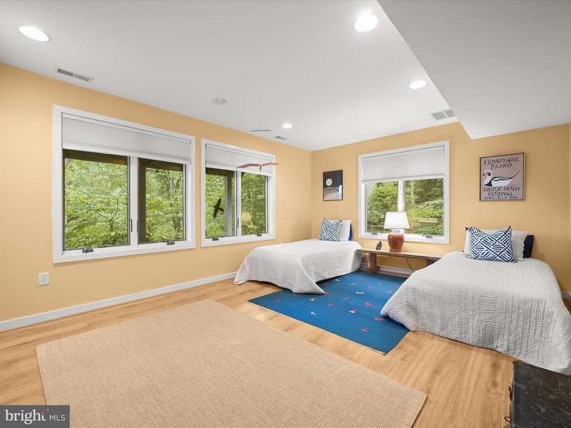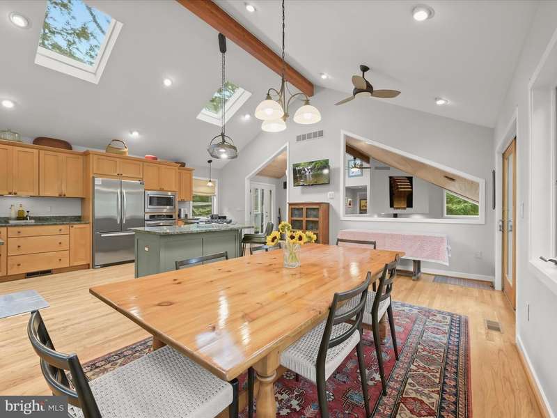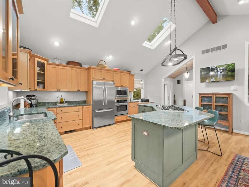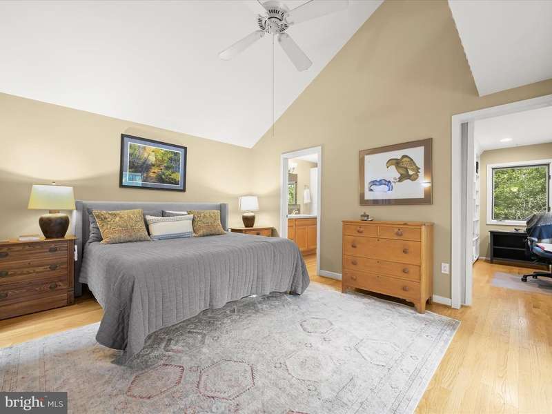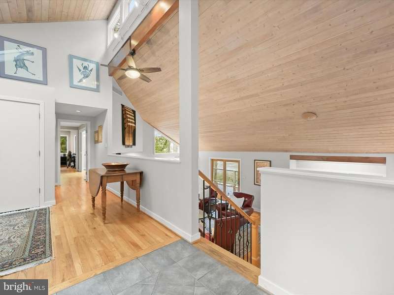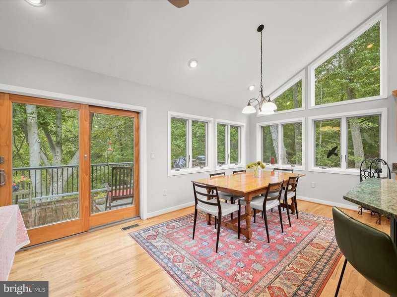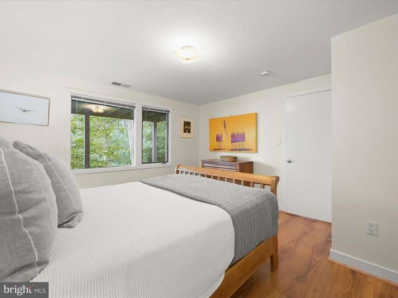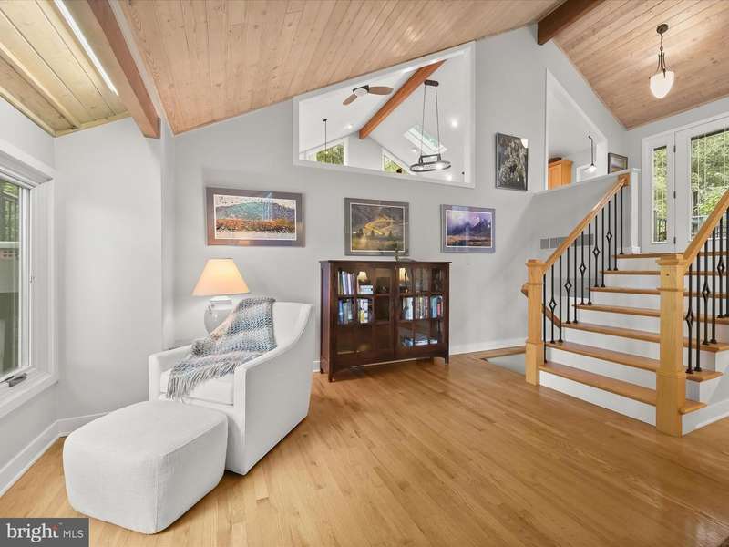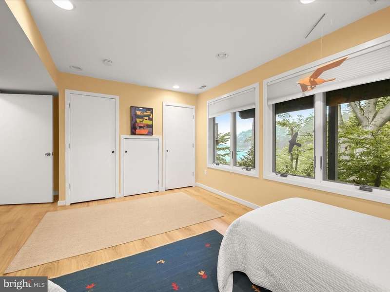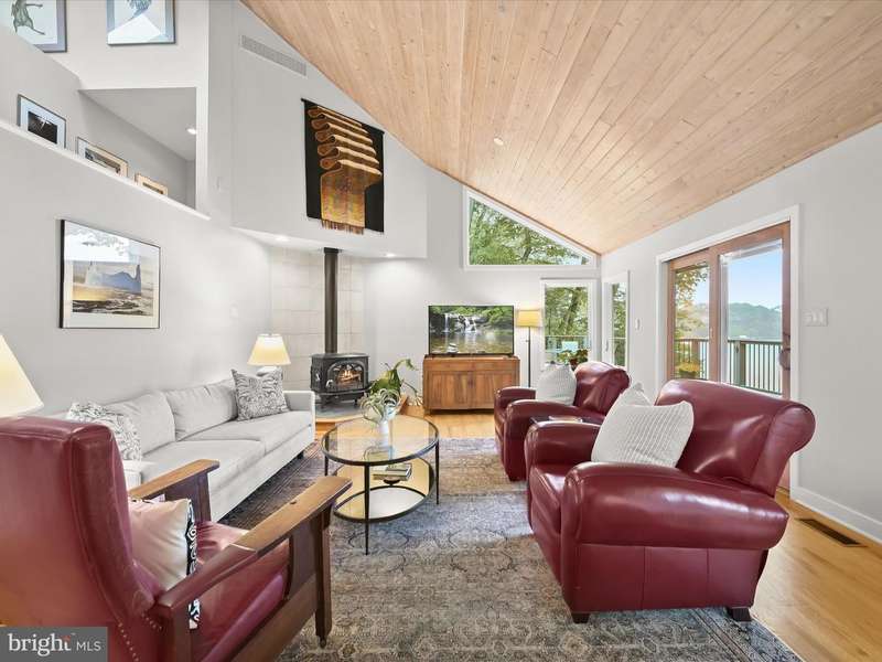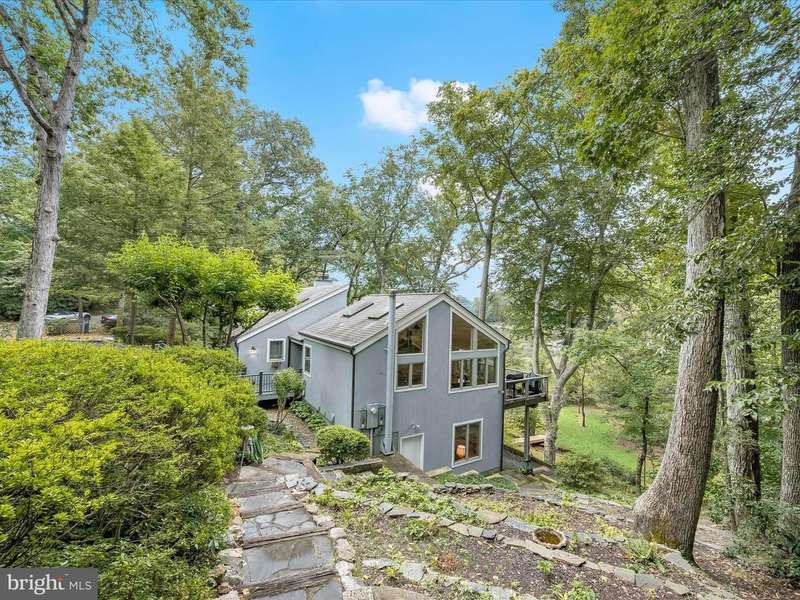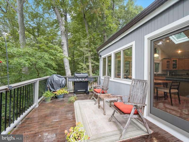 Waterfront living reaches a new level of sophistication in this contemporary split-level home gracefully set on Broad Creek off South River. Bathed in natural light from soaring vaulted ceilings and walls of expansive windows, the residence effortlessly combines architectural elegance with thoughtful design, offering an atmosphere that is both warm and inspiring. Every space flows seamlessly, inviting you to linger and enjoy the serene surroundings. The property's private pier and dock provide direct South River access with a lounge area perfect for soaking in sunsets or watching boats drift along the water. With 5 ft mean low water, it's ideal for boating, paddling, or simply relaxing in a quiet, scenic retreat. Nestled on 1.08 acres at the end of a peaceful cul-de-sac, the home enjoys unmatched privacy across two combined lots. Wooded surroundings, stone hardscaping, a gently meandering stream, and two charming footbridges create a secluded sanctuary where bird songs accompany daily life. Despite the tranquility, the location remains convenient for commuters. Inside, the kitchen and dining addition is a showstopping centerpiece, crowned with a cathedral ceiling, angled clerestory windows, and skylights that flood the space with sunlight. A sliding glass door opens to the deck with expansive water views, extending the living space outdoors. The chef's kitchen features granite counters, premium stainless steel appliances, and a central island with a five-burner GE Monogram gas cooktop and a downdraft fan. The adjoining dining area, lined with windows, creates an inviting setting for gatherings or family meals, while an overlook to the living room below maintains an open, connected flow. On the entry level, the primary suite occupies its own wing, a serene retreat featuring a sunroom with three walls of windows framing the peaceful waterfront setting, a study with built-in bookcases, and a walk-in closet with custom built-ins. The en-suite bath harmonizes luxury and nature, a deep soaking tub, and a bath with tile throughout, capturing a serene, nature-inspired aesthetic. A powder room and a well-placed laundry area complete this level. Just a few steps down from the foyer, the expansive living room unfolds beneath a vaulted, wood-planked ceiling, anchored by a cozy wood-burning stove. Windows along multiple walls frame glimpses of the surrounding scenery, while a sliding glass door opens to the Trex deck, where serene views of the meandering stream, sparkling Broad Creek, and surrounding woods create a captivating backdrop for gatherings both intimate and grand. The first lower level offers a bedroom with a shimmering water view, a full bath, and a versatile home office leading to a workshop with a workbench and exterior access. A few steps further down, a second lower-level suite provides privacy and comfort, complete with a sitting area with built-ins, an attached full bath, and an additional bedroom, perfect for guests or extended family stays. Outdoors, the home continues to impress with multiple decks, a patio tucked beneath the main deck, and built-in storage sheds. A double loop circular driveway provides ample parking, while mature landscaping enhances beauty and privacy. Thoughtful updates ensure modern comfort and peace of mind, including zoned HVAC, a roof replaced in 2016, new front entry and stairs in 2024, and recent replacements of the air conditioning in the kitchen wing, washer, dryer, and dishwasher. Blending architectural brilliance, luxurious amenities, and a breathtaking waterfront setting, this South River home offers a lifestyle defined by elegance, serenity, and unparalleled natural beauty, a rare retreat that is at once private, inspiring, and timeless.