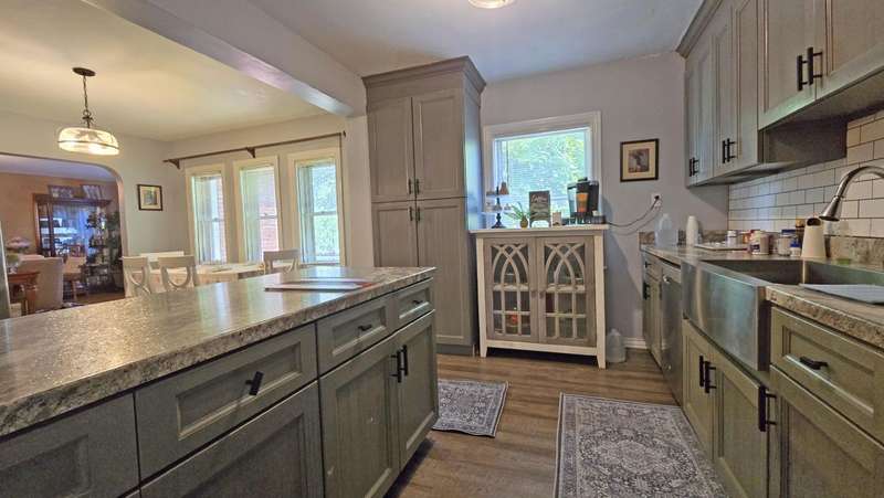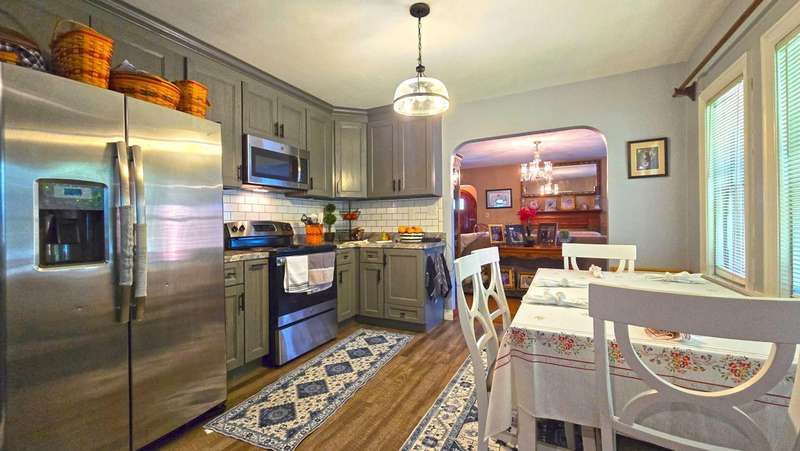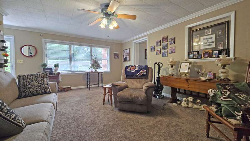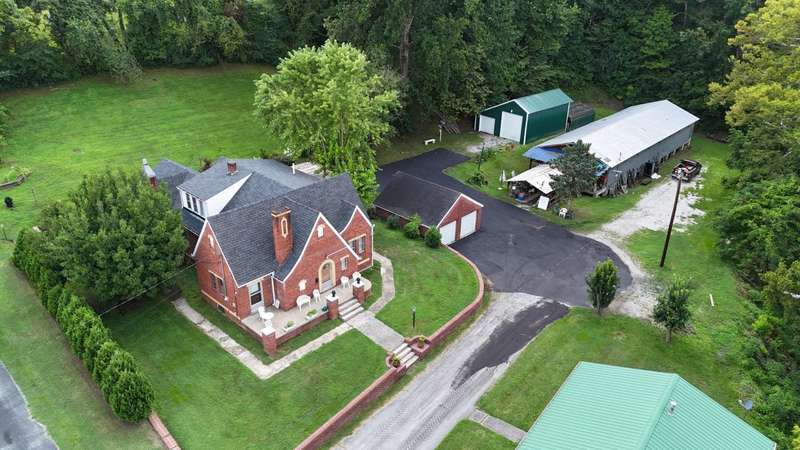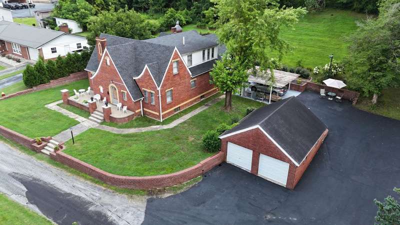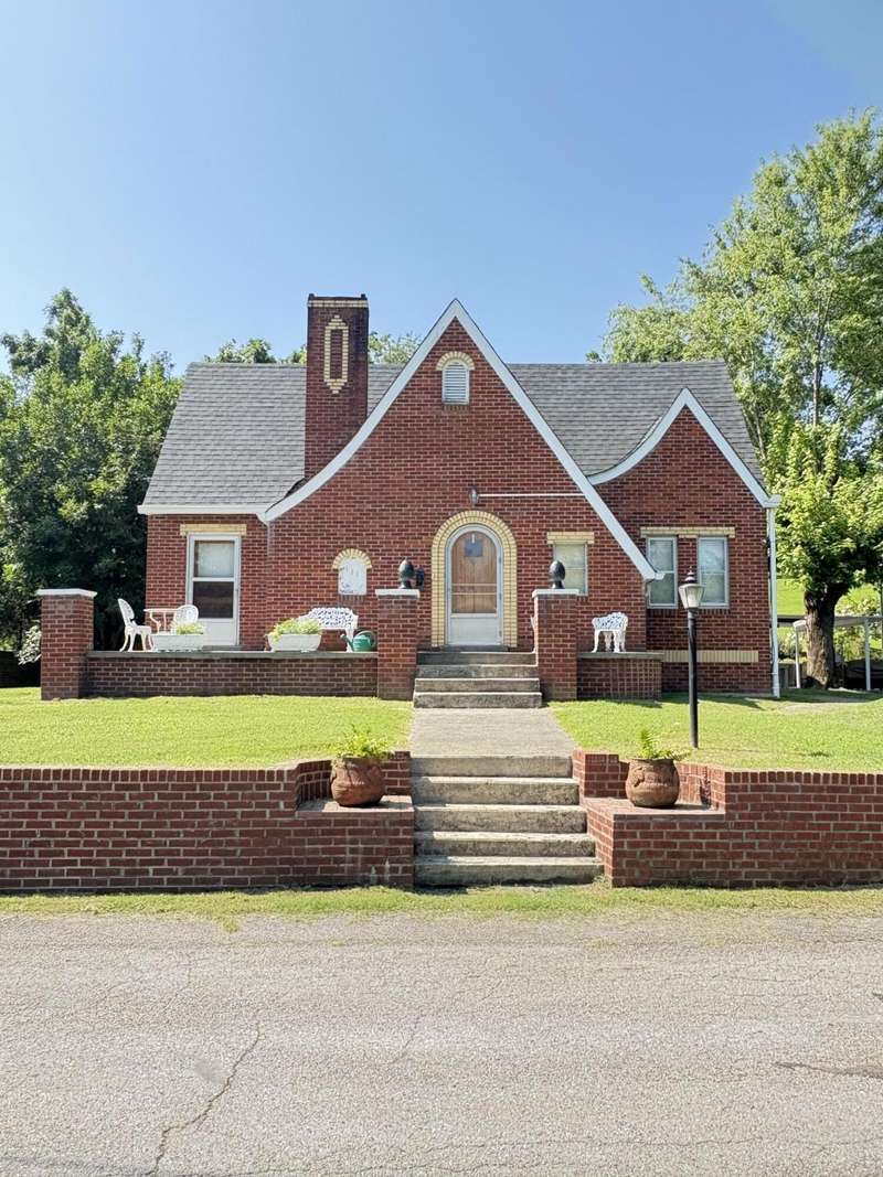 This brick Tudor style home sits quietly at the end of House Avenue, in the city limits of Manchester. Adorned by beautiful landscaping and arched doorway, this home offers a traditional air of days gone by. The main floor boasts a large living area with a cozy fireplace and a spacious family room. An elegantly designed and updated eat-in kitchen with all the modern amenities is the cooks dream! A French door just off the family room leads to a space perfect for an office or perhaps even a sunroom. On this first floor, you'll also find 2 bedrooms, one full bath and an extra-large laundry area. Upstairs you'll find three other spacious bedrooms and a full bath. One of the bedrooms is currently used as a den. A full unfinished attic offers plenty of space for storage and could be easily converted to an additional room. A full, unfinished basement provides storage, safety and the option of additional living space. This home exudes charm with its mostly all original doors, arched doorways. and some existing hardwood flooring. A two-car detached garage sits just to the side front of the home with another large garage at the back side of the house, perfect for campers or boats.. Large front patio and covered side detached carport. An additional large building which is currently used as an antique and used furniture store is also included on the property. The building could serve a multitude of purposes, whether you're looking to start a small business of your own or just need a place to work on a hobby. Convenient to all the amenities town has to offer. One minute from Advent Health ,5 minutes from Manchester FCI and walking distance to the city park. Don't miss the opportunity to own such a rare find in Manchester!