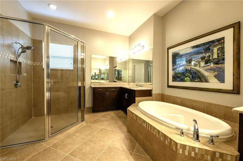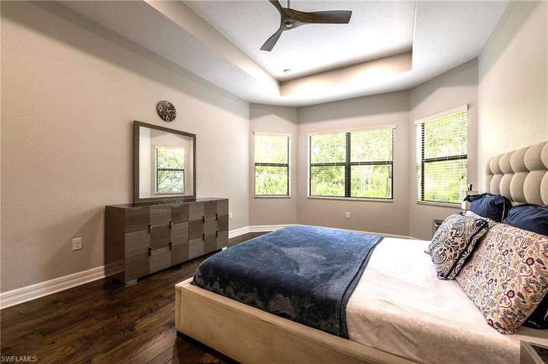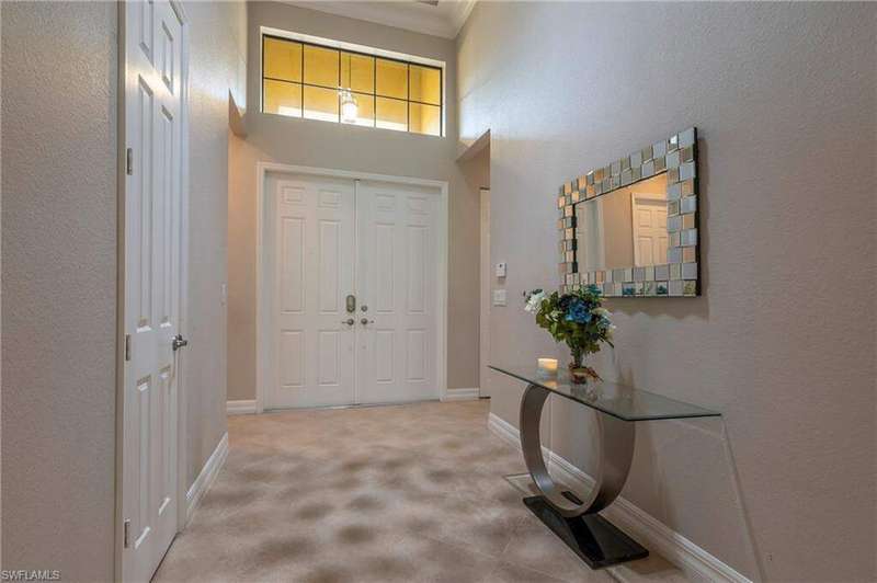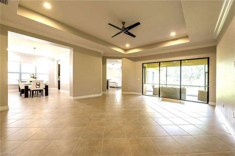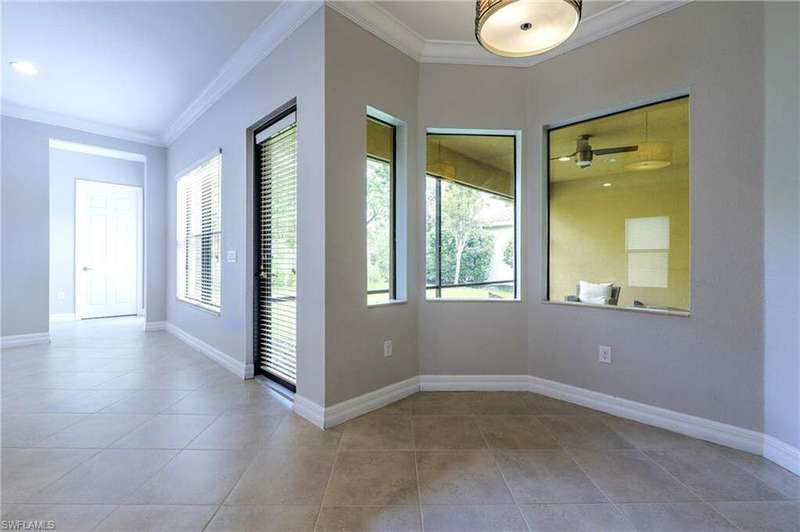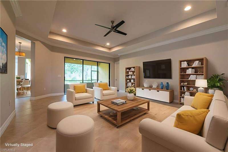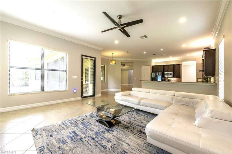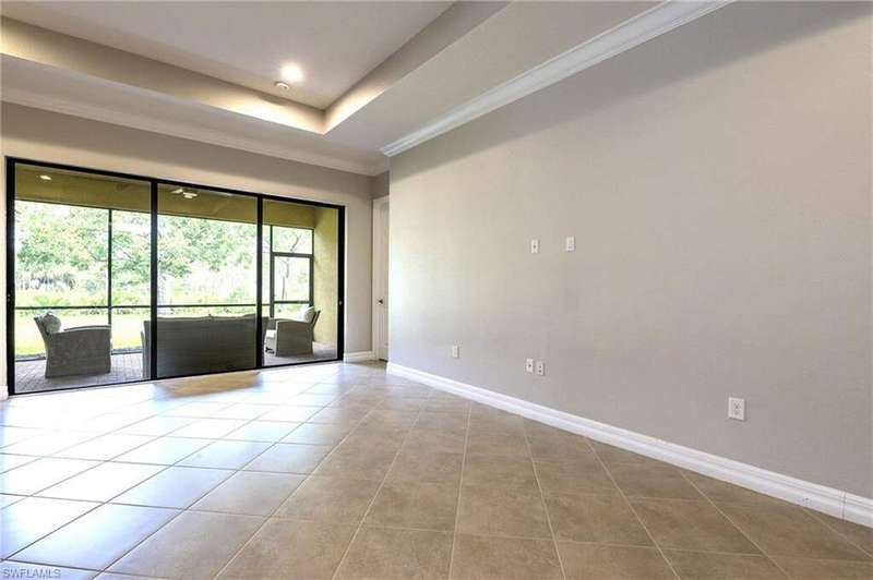 Tranquil Luxury in Riverstone, Naples, where nature meets neighborhood charm. Tucked away in the sought-after Riverstone community of North Naples, this exquisite Drake model, 4-bedroom + den, 4-bath home offers 3,376 square feet of thoughtfully designed living space. From the moment you arrive, the elegant facade and three-car garage-featuring a single bay and double bay-set the tone for a residence that balances sophistication with everyday comfort. Step inside to soaring ceilings, sunlit rooms, and a versatile den perfect for a home office, library, or creative retreat. The open-concept layout invites connection, while the private bedroom suites offer peaceful sanctuary for everyone. Beyond the living room, glass doors open to a tranquil preserve where wild birds and native wildlife create a living canvas of Florida's natural beauty. There is ample room for a pool, should you desire. Whether sipping morning coffee or hosting sunset gatherings, this view is yours to savor-every day. Located in Flood Zone X. Storm protection with impact windows and manual shutters. Resort-Style Living, Just Steps Away. Located within walking distance to Riverstone's vibrant clubhouse, this home offers unparalleled access to world-class amenities tennis, pickleball, and basketball courts, lap pool and resort pool, full-service spa and state-of-the-art fitness center, indoor studio for yoga, dance, and wellness classes, elegant clubhouse for social events and private celebrations. Prime North Naples location, just minutes from upscale dining, boutique shopping, and more, this home is perfectly positioned for both convenience and community.