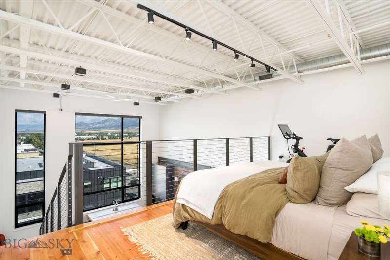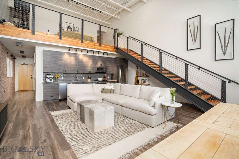 Big Bridger views, upgraded finishes, and a central Bozeman address define this newer 2BD/2BA condo just off N 7th Avenue, steps to restaurants, breweries, coffee, the fairgrounds, concert venue, and bike park. A sunlit, open living/dining/kitchen showcases an exposed brick wall, an upgraded appliance package, and a stunning custom gas fireplace, the only unit in the building to feature one; a striking wood-and-steel staircase leads to the lofted primary suite with a well-appointed bath, in-unit laundry, and a generous walk-in closet. The lower level offers a second bedroom and a 3/4 bath. Enjoy the rooftop deck, fabulous for entertaining and taking in mountain vistas. Several units in this building have proven mid-term rental history. Buyer to verify rental eligibility, permitting, and HOA rules.