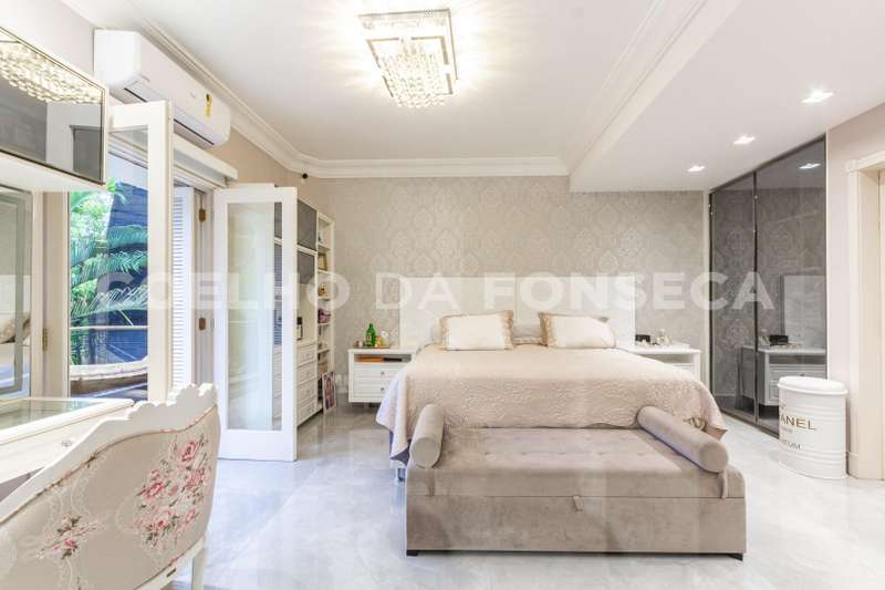 Casa em Condomínio no bairro Brooklin com 632m² área construída, 4 dormitório(s), 4 suíte(s), 6 vaga(s), 4 banheiro(s), piscina, escritório, depósito, ar condicionado, dep. de empregados, reformado (a), varanda.